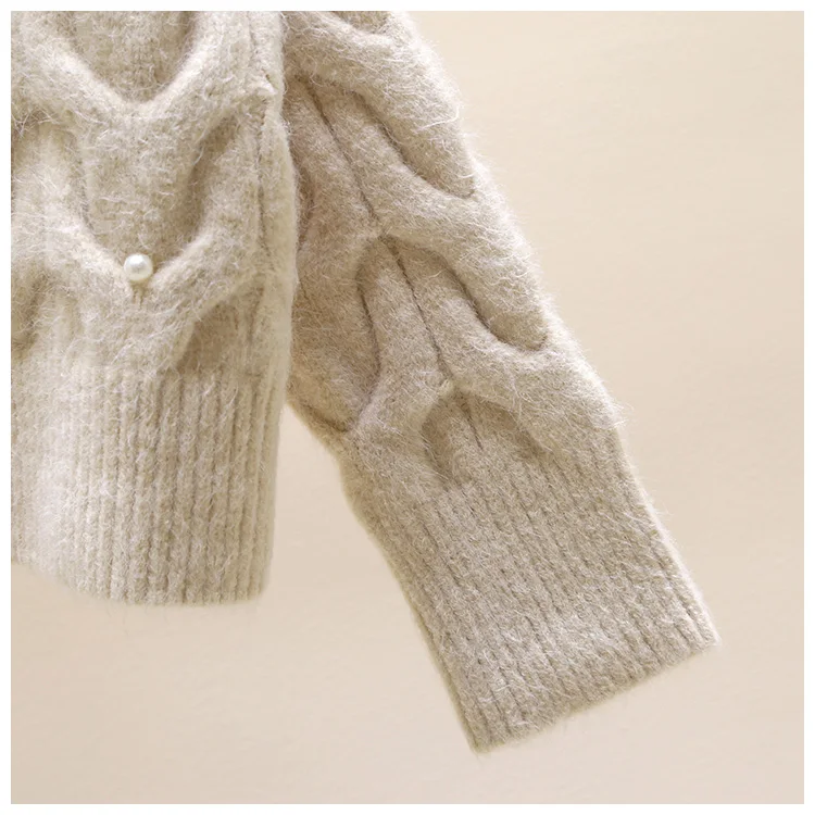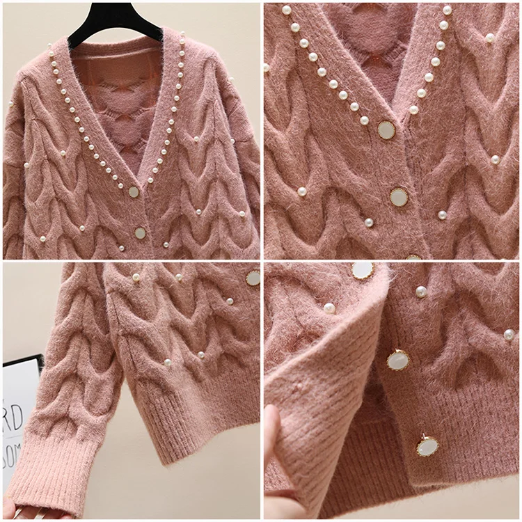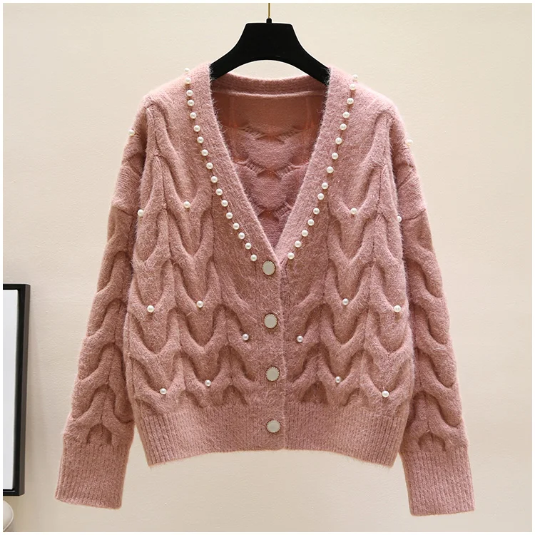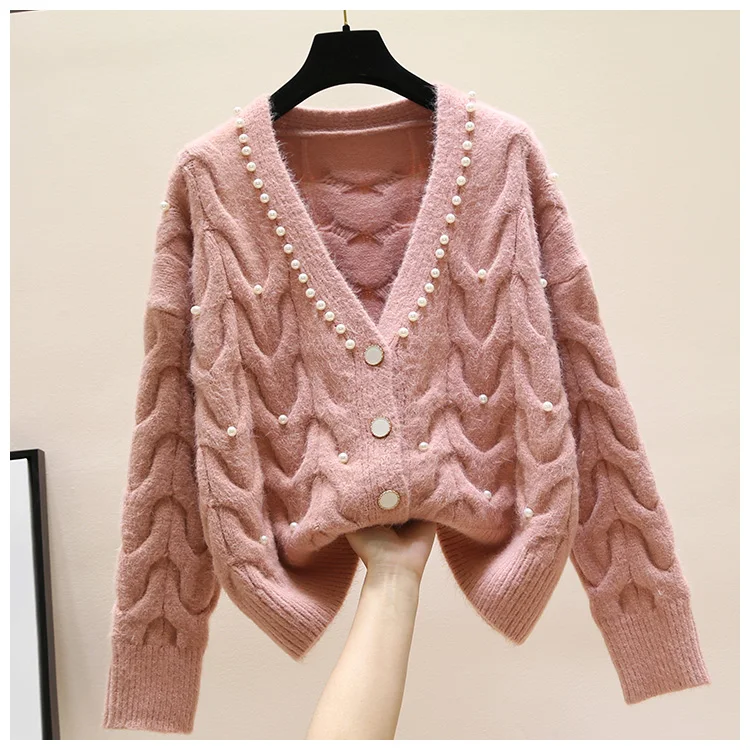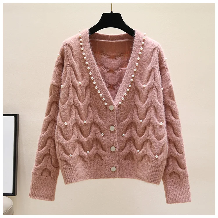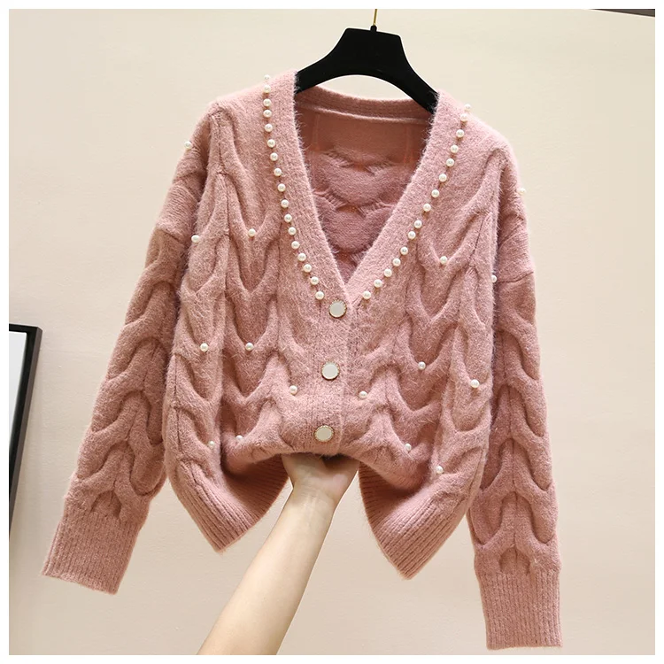 Znbbw new fashion all-match knitted outer wear sweater Sweet beaded V-neck knitted cardigan women's spring