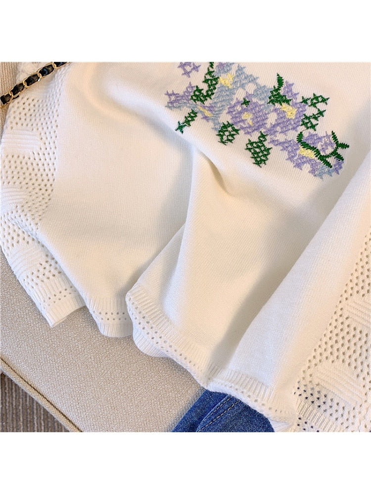 znbbw New Fashion Embroidery Cropped Knitwears Sleeveless Cardigan 2023 Summer Casual Simply Style O Neck Female Sweater Vest