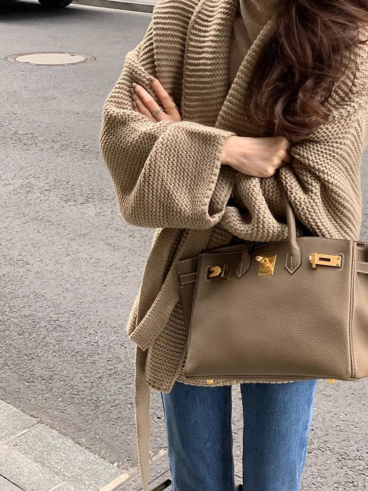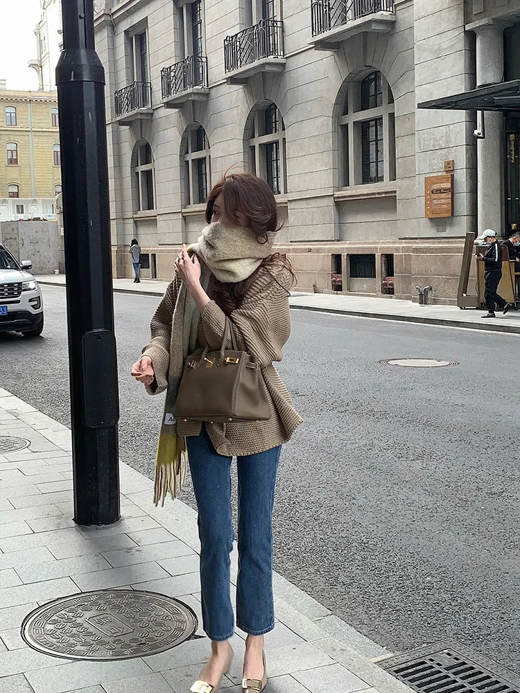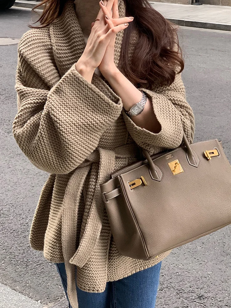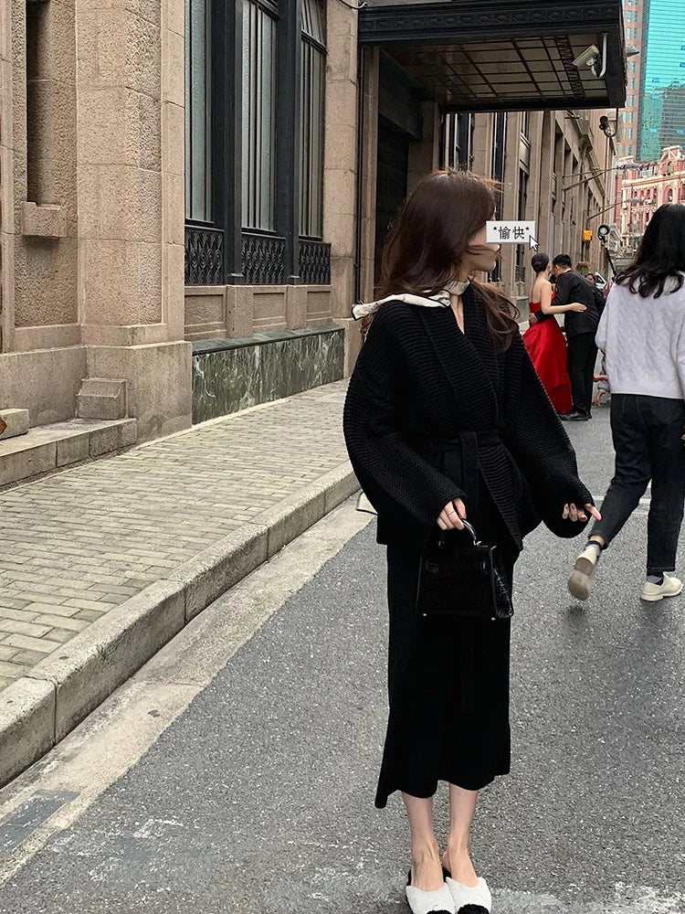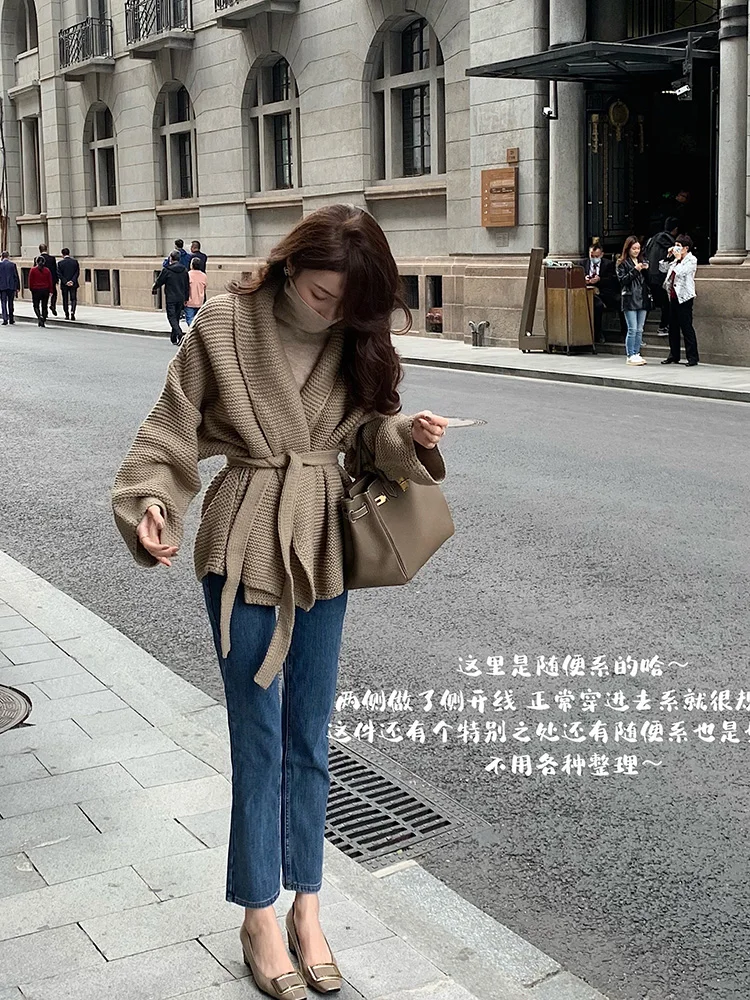 Znbbw New Lazy Knitted Jacket High-end Sense of Niche Temperament Was Thin Soft Waxy Lace-up Sweater Cardigan Top Women D1438