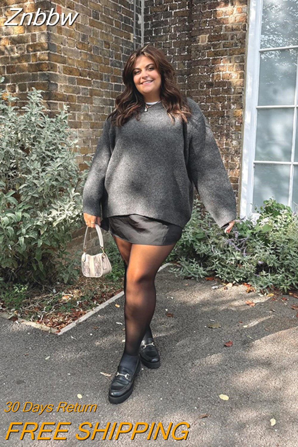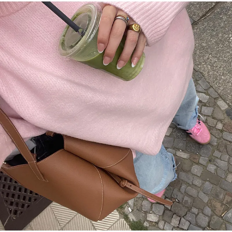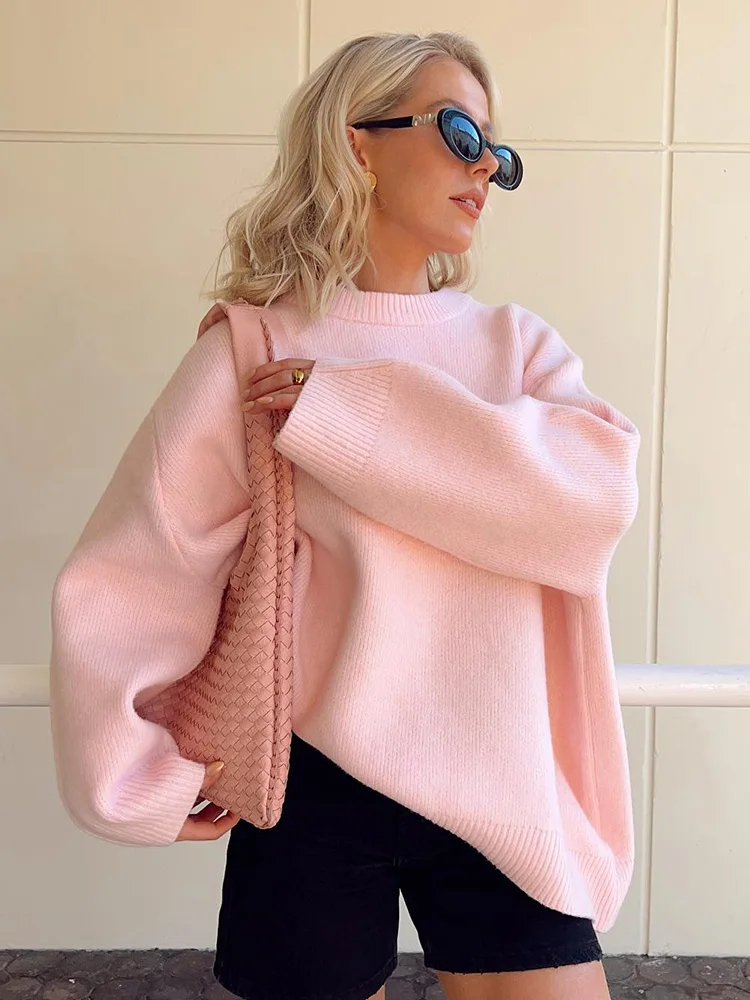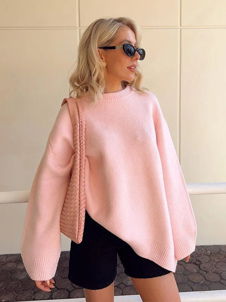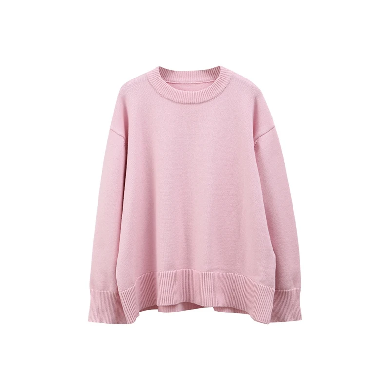Znbbw New Solid Loose Sweater For Women Elegant Round Neck Long Sleeve Knitted Pullover Autumn Warm All-match Female Tops Jumpers