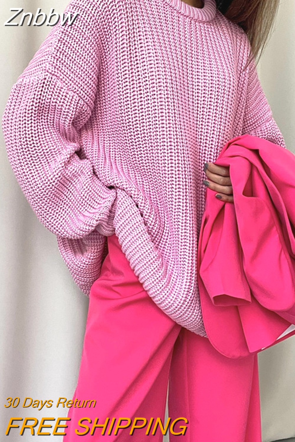 Znbbw O Neck Sweater Women 2023 Autumn Winter Warm Casual Loose Solid Pullovers Basic Soft Elegant Knitwear Jumper Sweaters