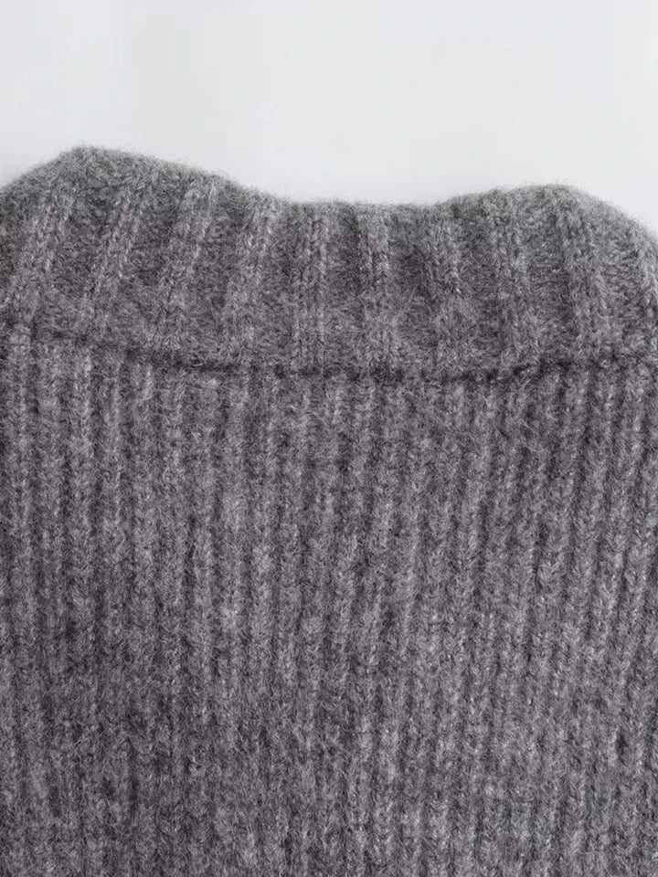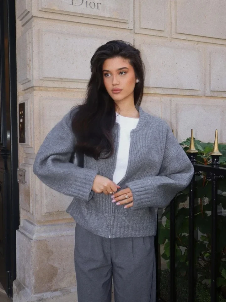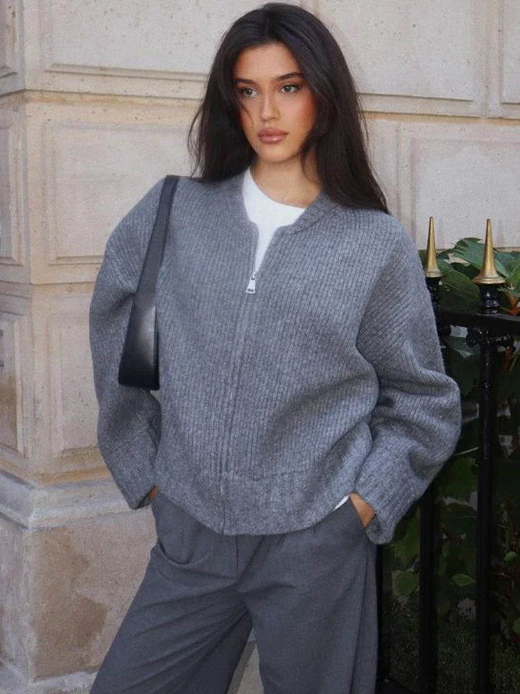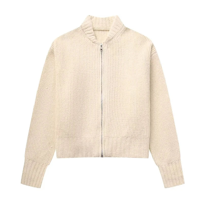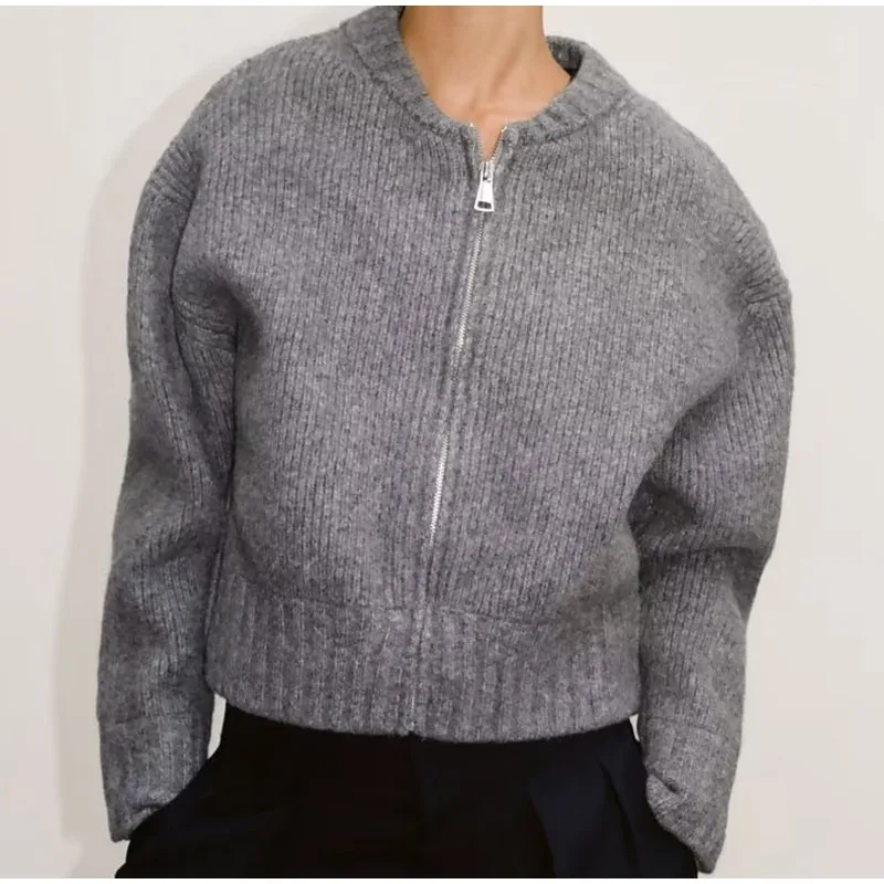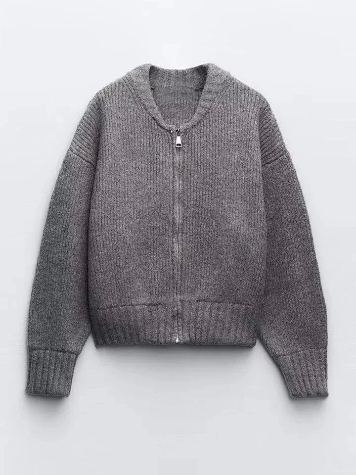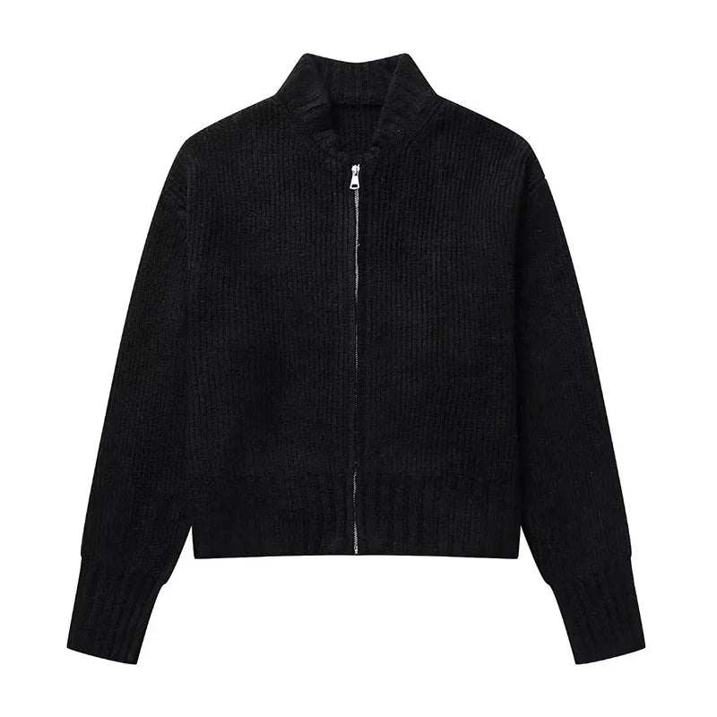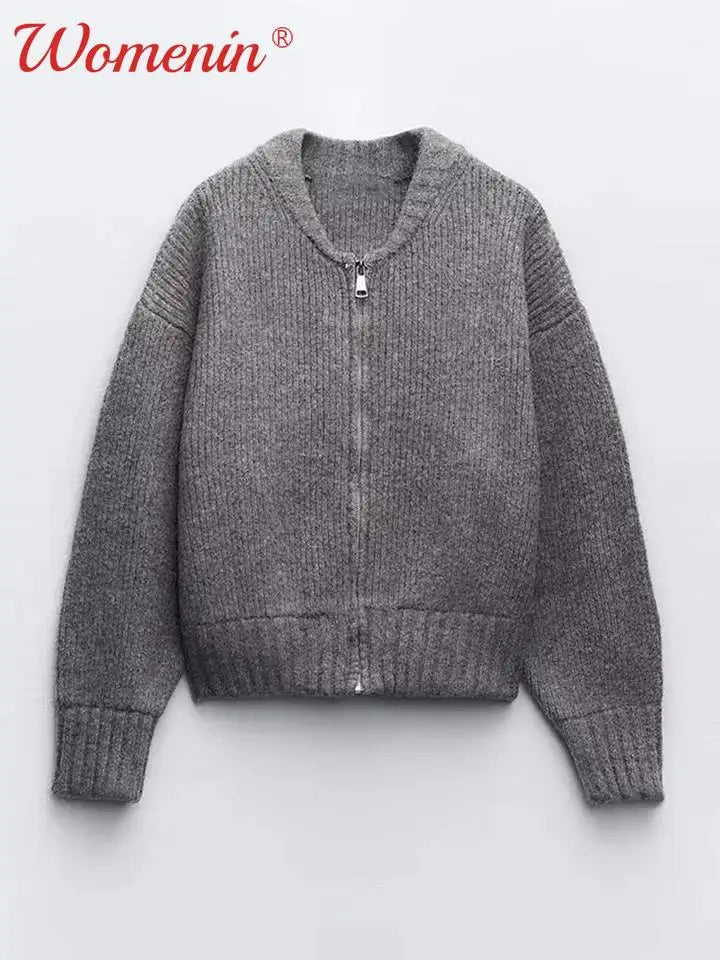 Znbbw O-neck Women Short Cardigan Retro Zipper Long Sleeve Knitted Sweater Female 2024 Casual Loose Solid Patchwork Sweaters