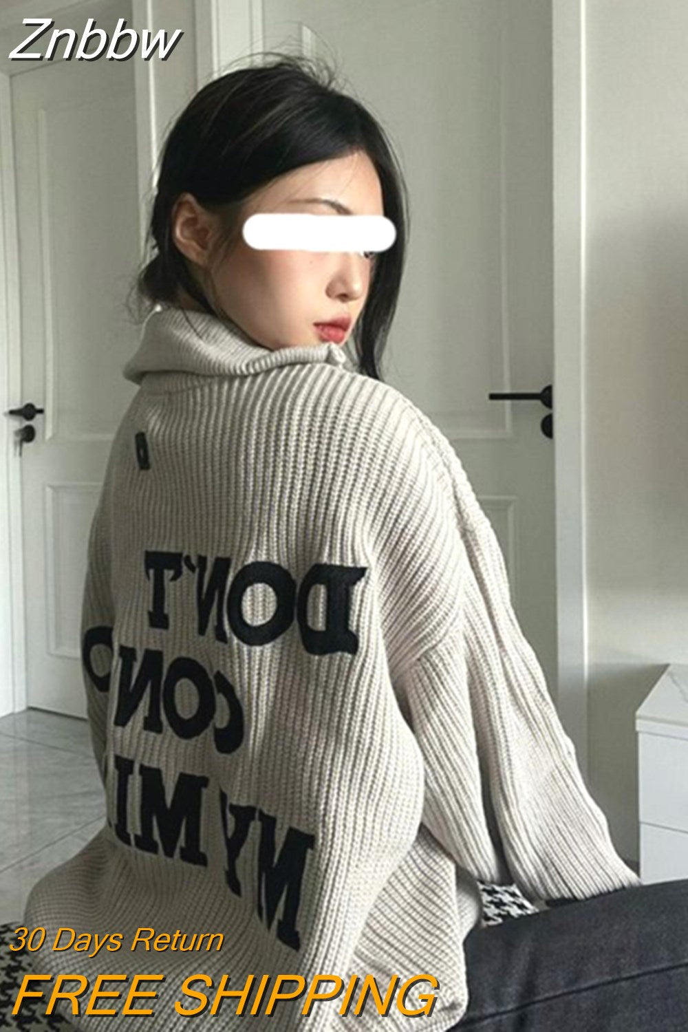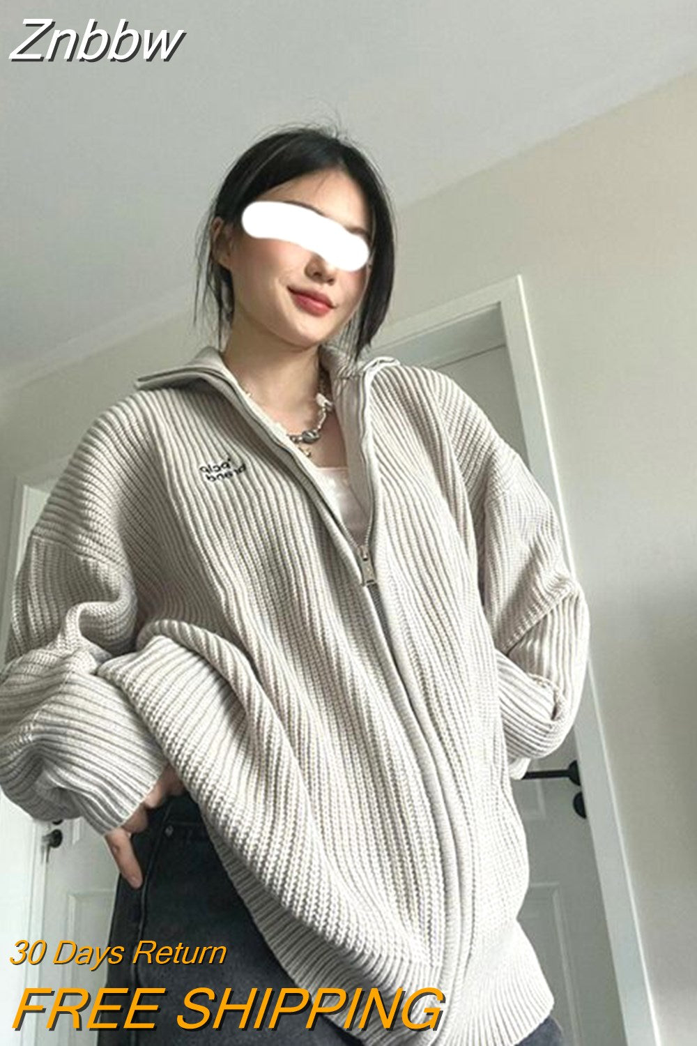 Znbbw Retro Streetwear Zip Up Knitted Cardigan Women Harajuku Hippie Embroidery Oversized Sweater Long Sleeve Tops Jacket Y2K