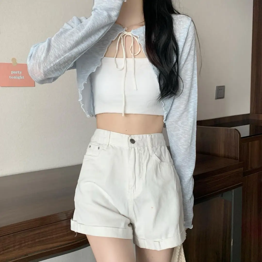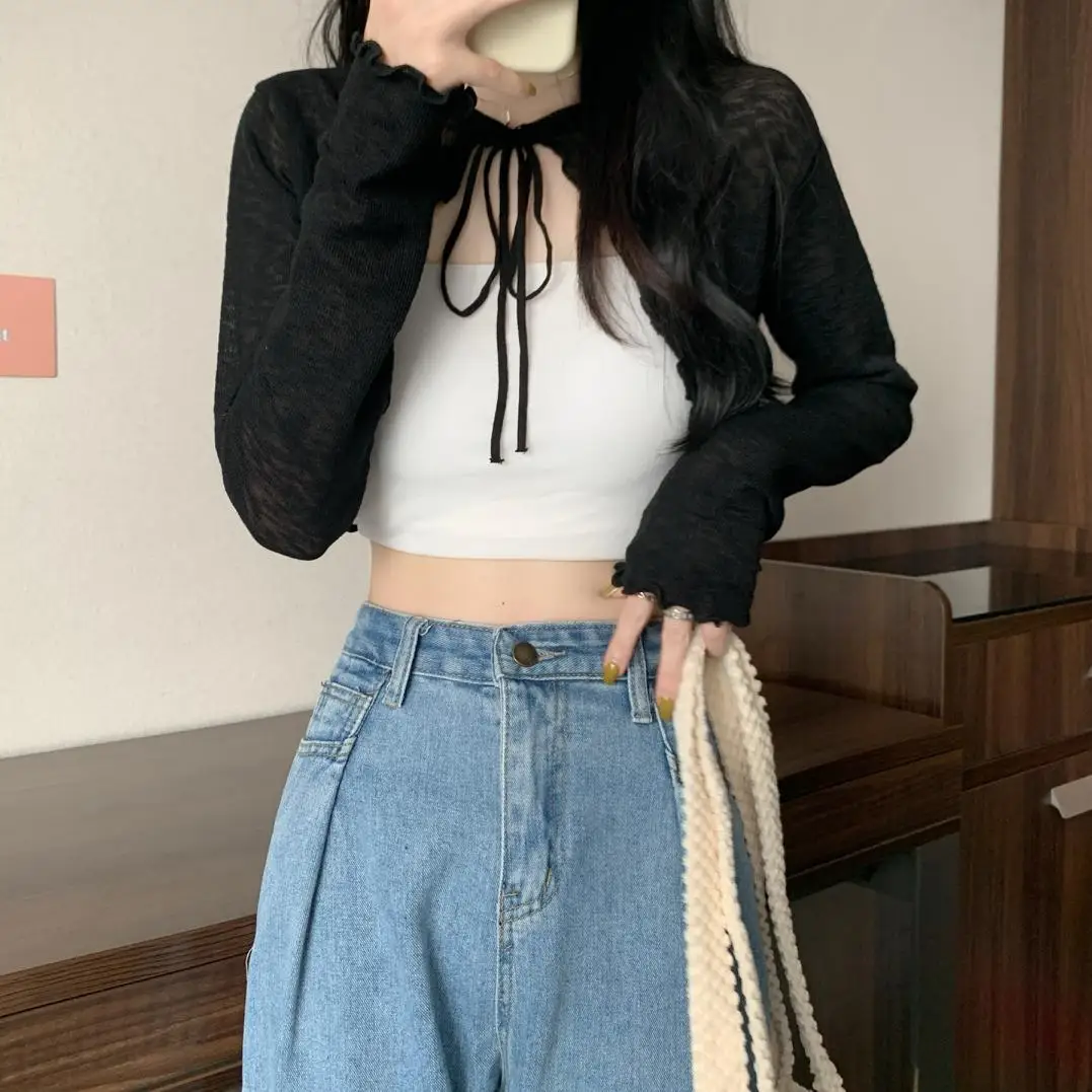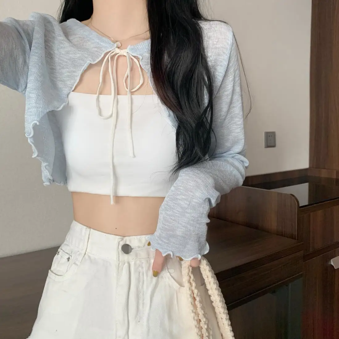 Znbbw Short Cardigan Women Long Sleeve Thin Open Stitch Knitted Sweater Shirts Female Solid Shawl