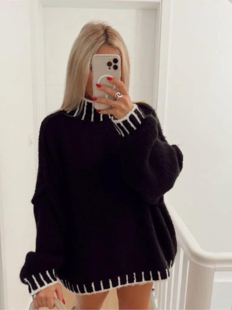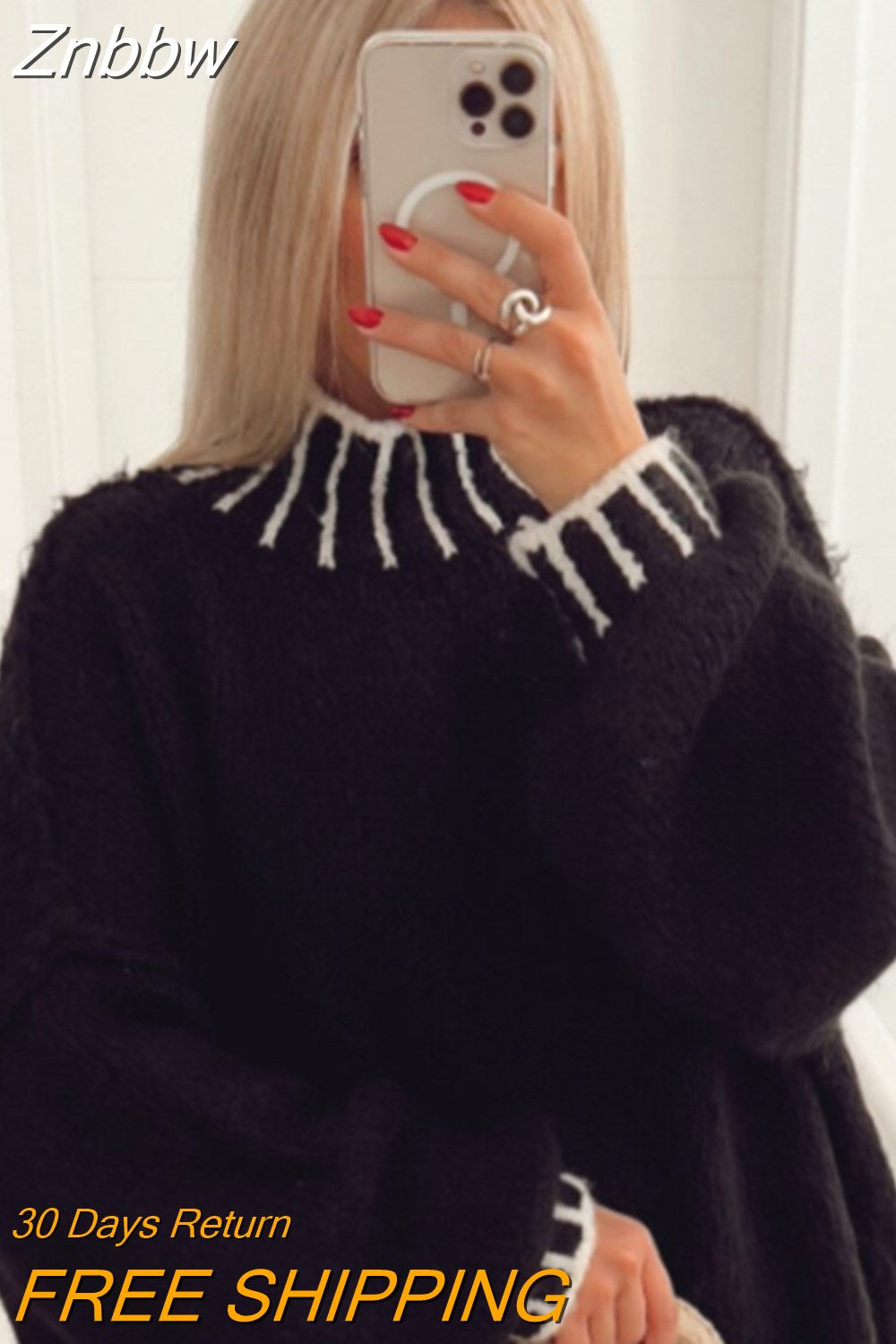 Znbbw Solid Patchwork Knit Sweater Women Fashion Loose Long Sleeves Pullover 2023 Autumn Office Ladies Commute Streetwear