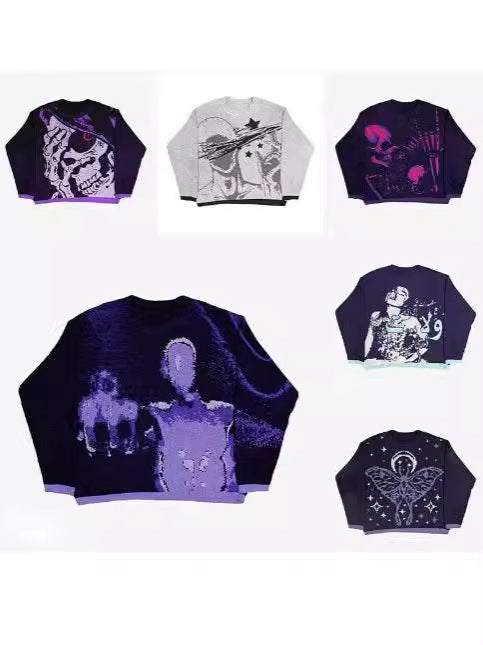 Znbbw Street Y2k Coat Sports Street Hip-Hop Leisure Color Impact Style Knitted Couple Sweaters Wear Fashion