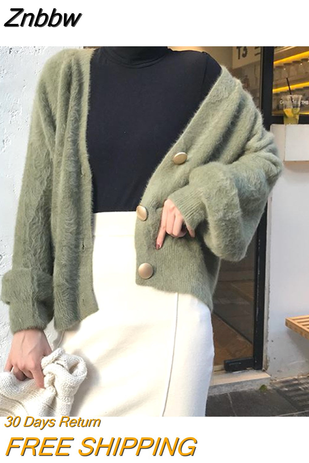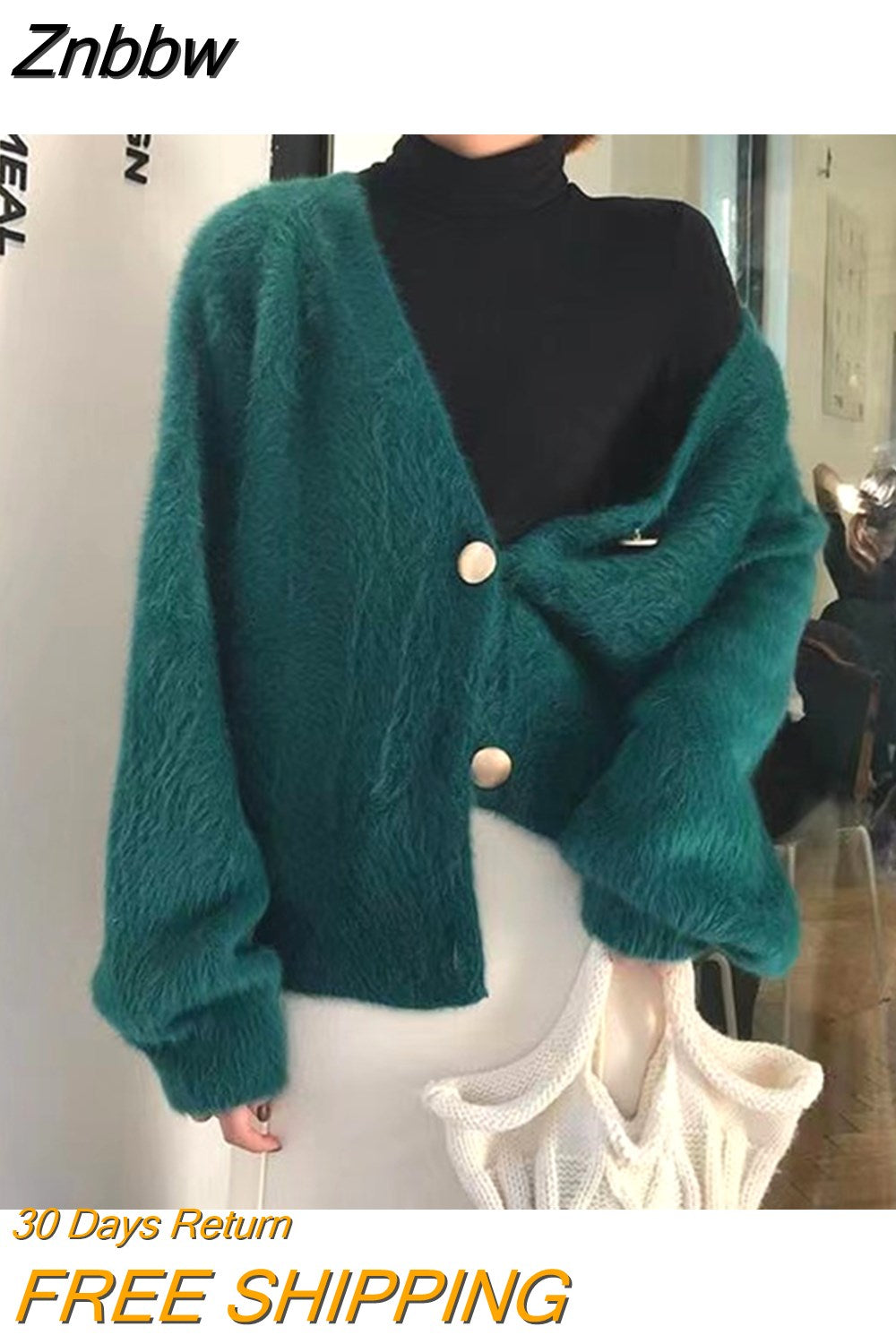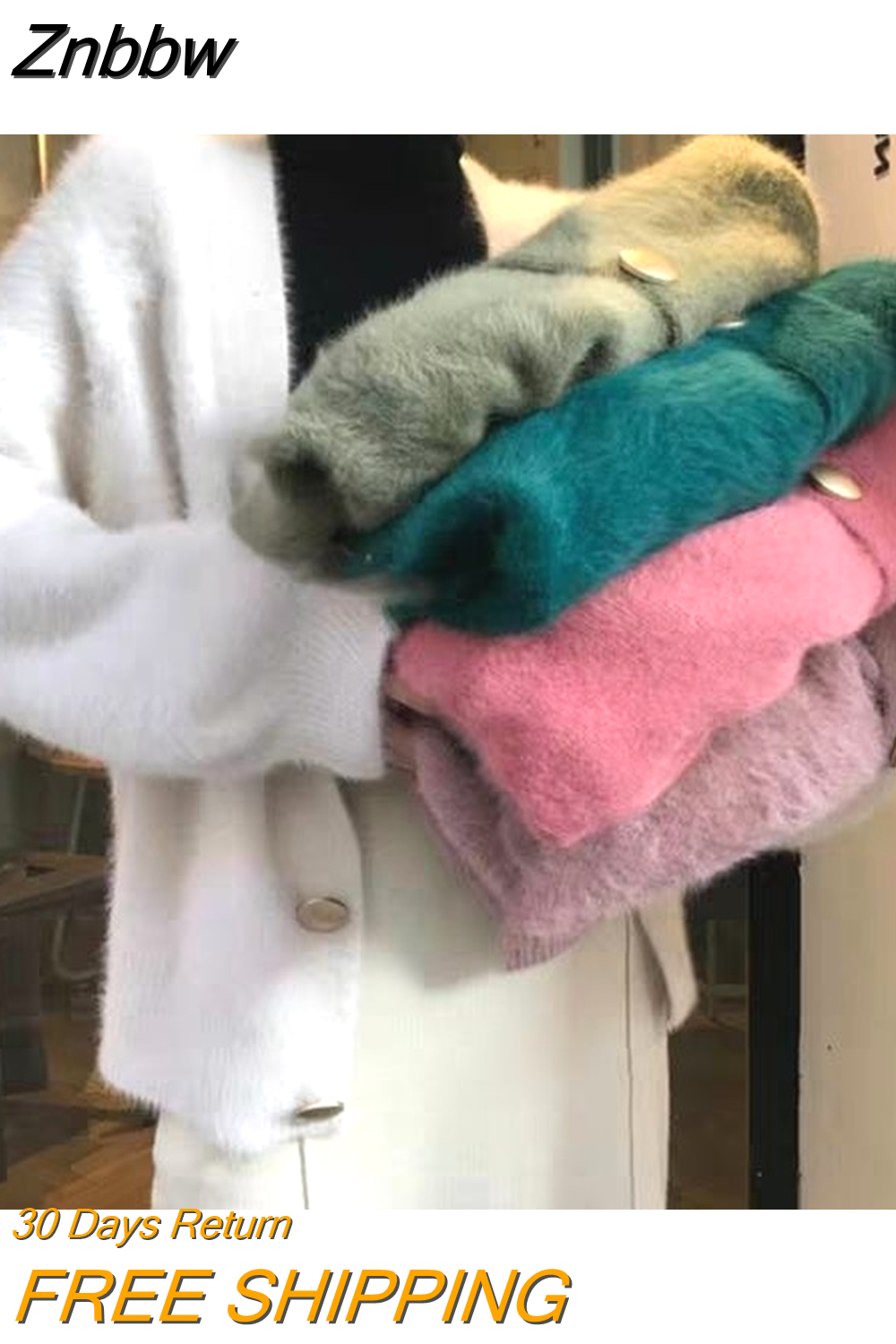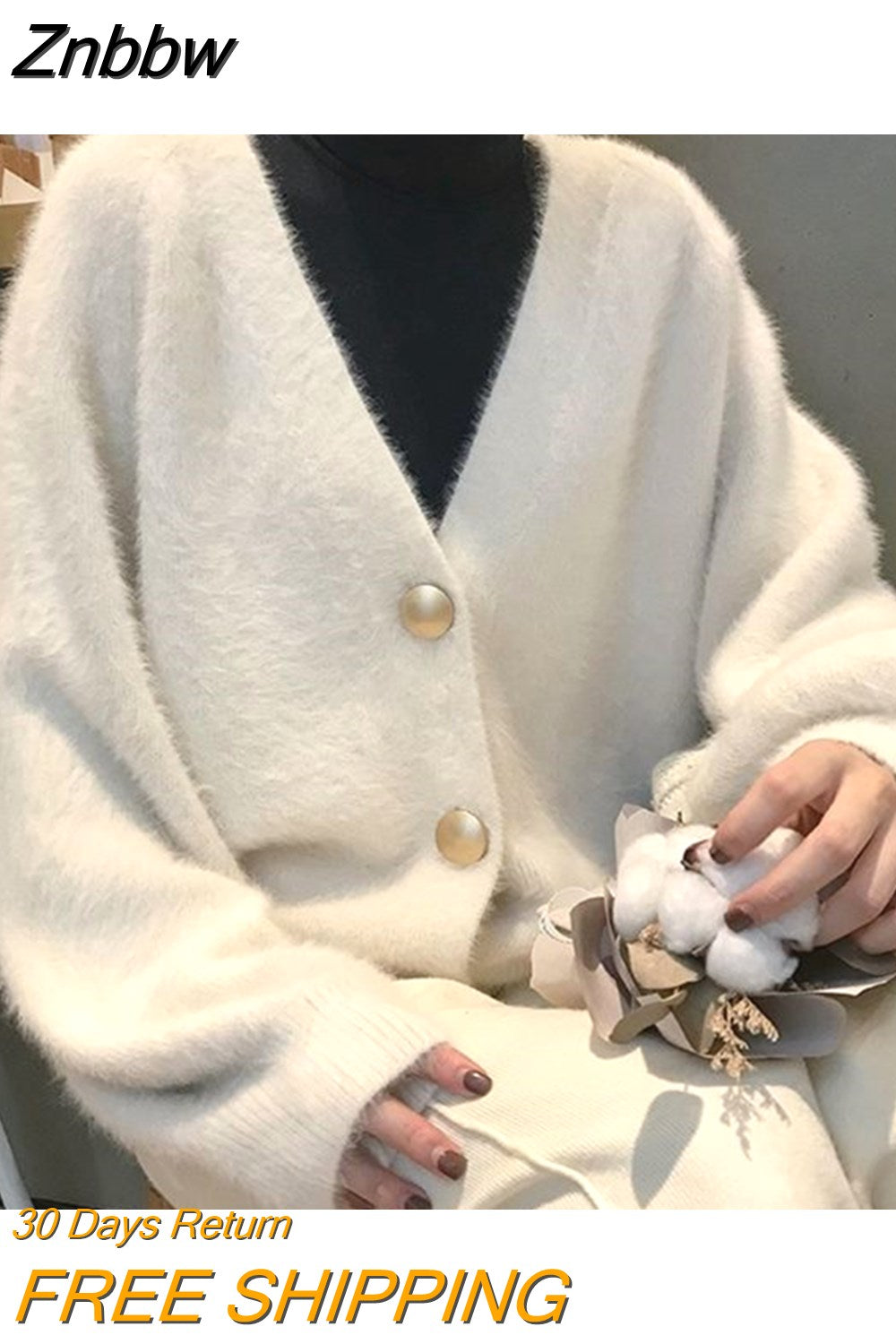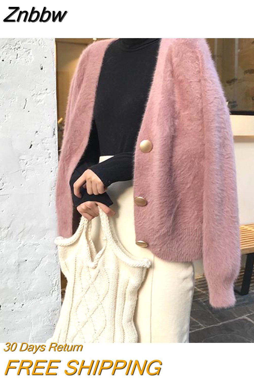 Znbbw sweater women 2023 autumn and winter new Korean version of the lazy V-neck knitted jacket imitation mink loose sweater