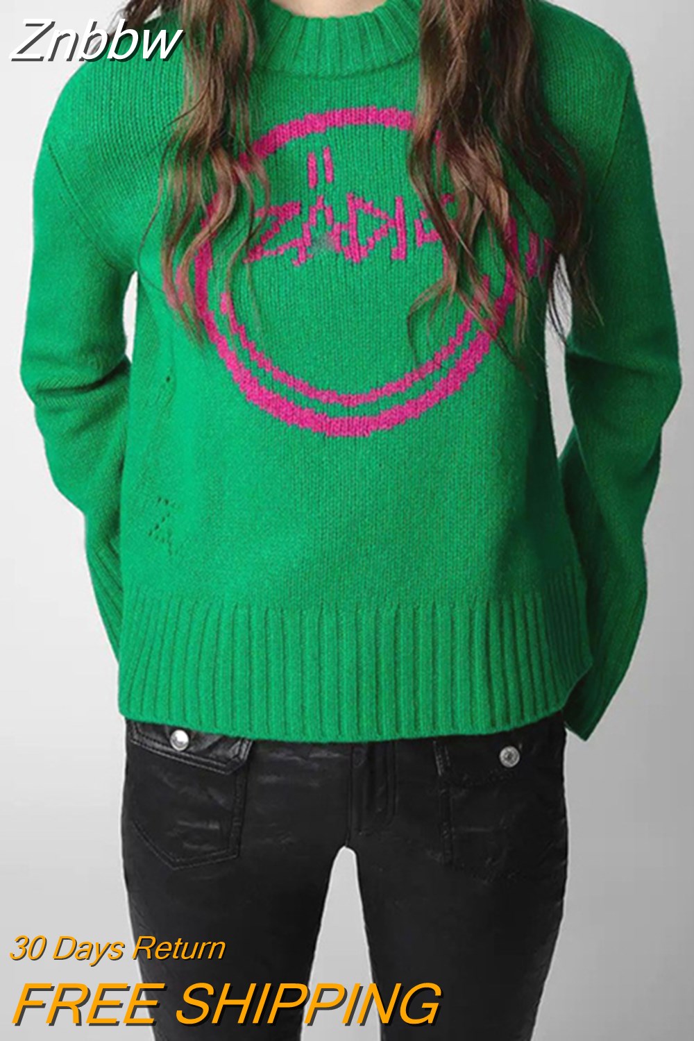 Znbbw Sweater Women 2023 Autumn Winter Pockets Round Neck Wool Cosy Pullover Casual Vintage Classic Sweaters Jumpers