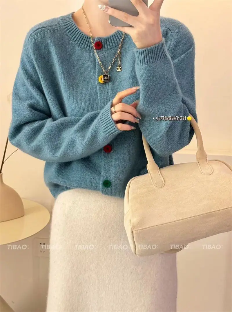 Znbbw Sweet and Fresh Round Neck Colorful Button Knitwear Coat Academy Style Western Versatile Sweater Women's Cardigan