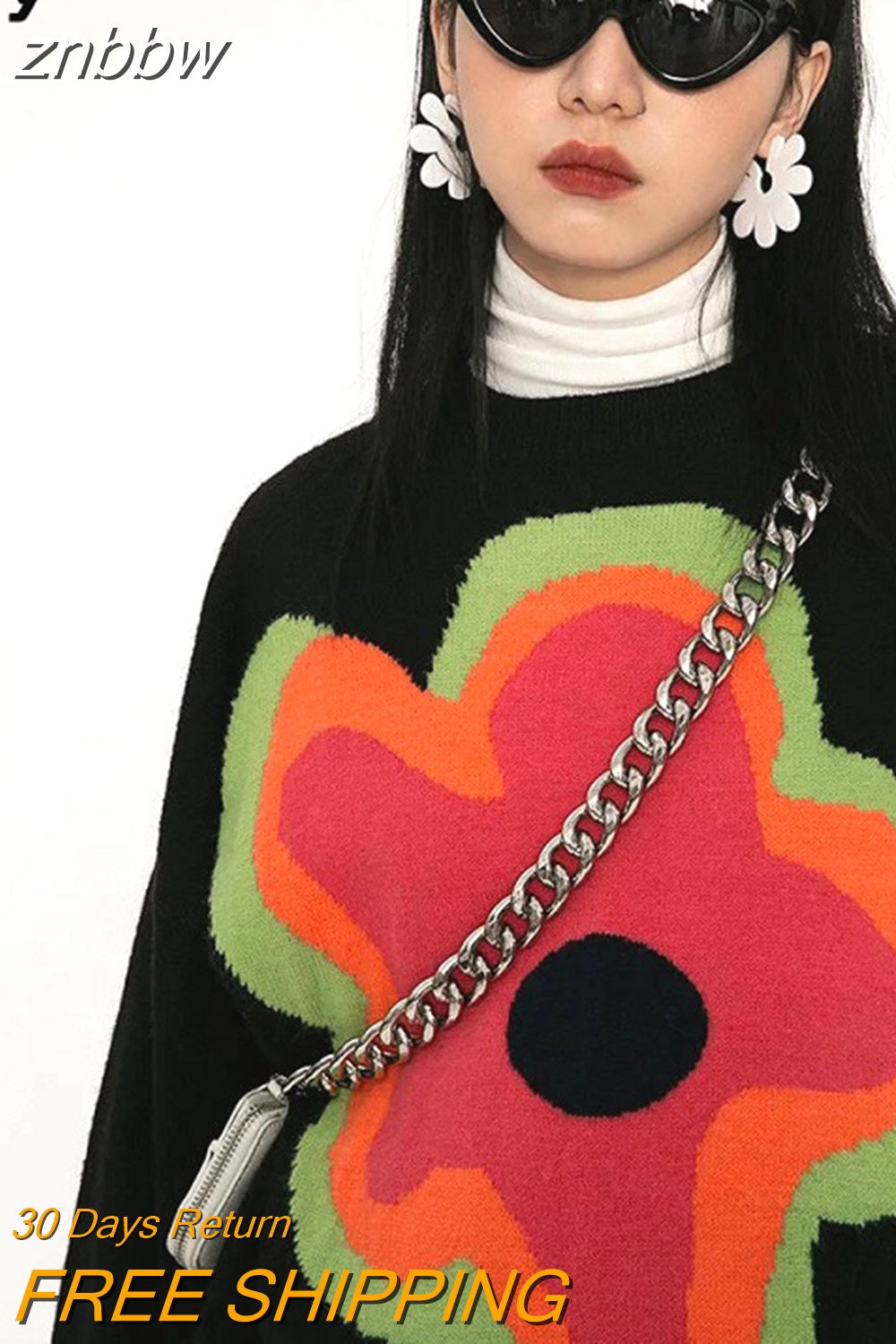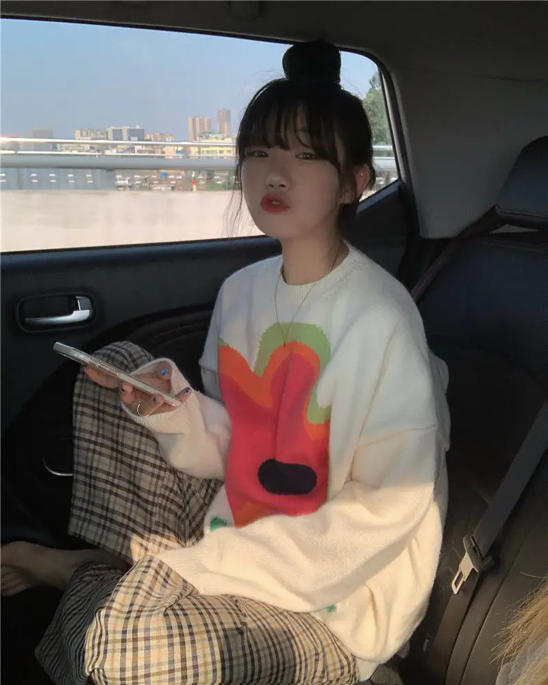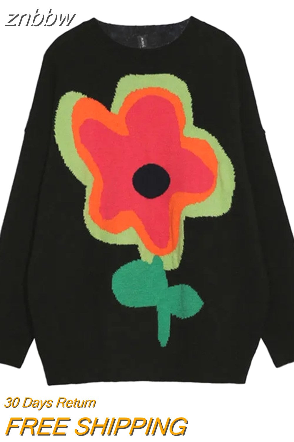 znbbw Winter Street Style Y2K Floral Embroidery Women Warm Sweater Oversize Long Sleeve Knit Ladies Pullover Female Clothing Tops