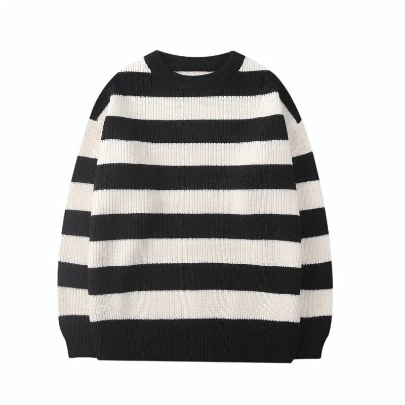Znbbw Winter Striped Knitted Sweater Women Casual Oversized Pullover Sweaters Couple Harajuku Streetwear Loose Warm Jumper