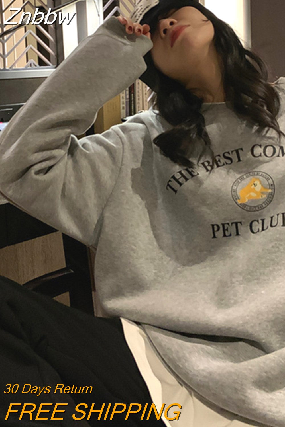 Znbbw Women gray lettering pullover sweater Autumn/Winter 2023 trend loose oversized long sleeve youth style round neck top