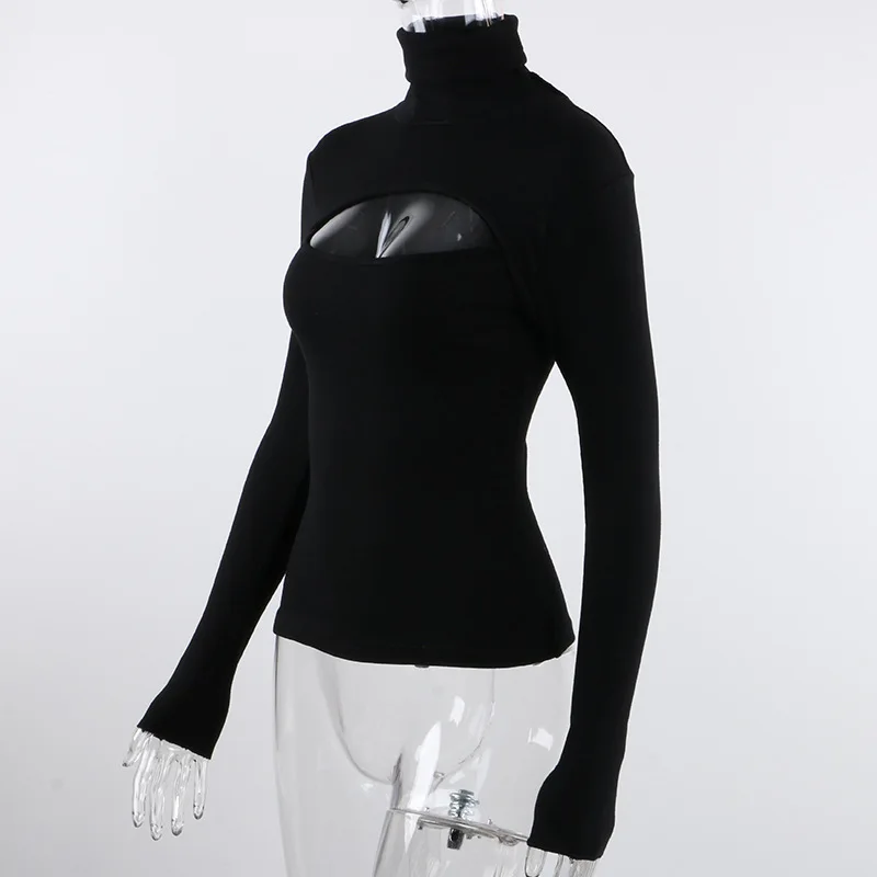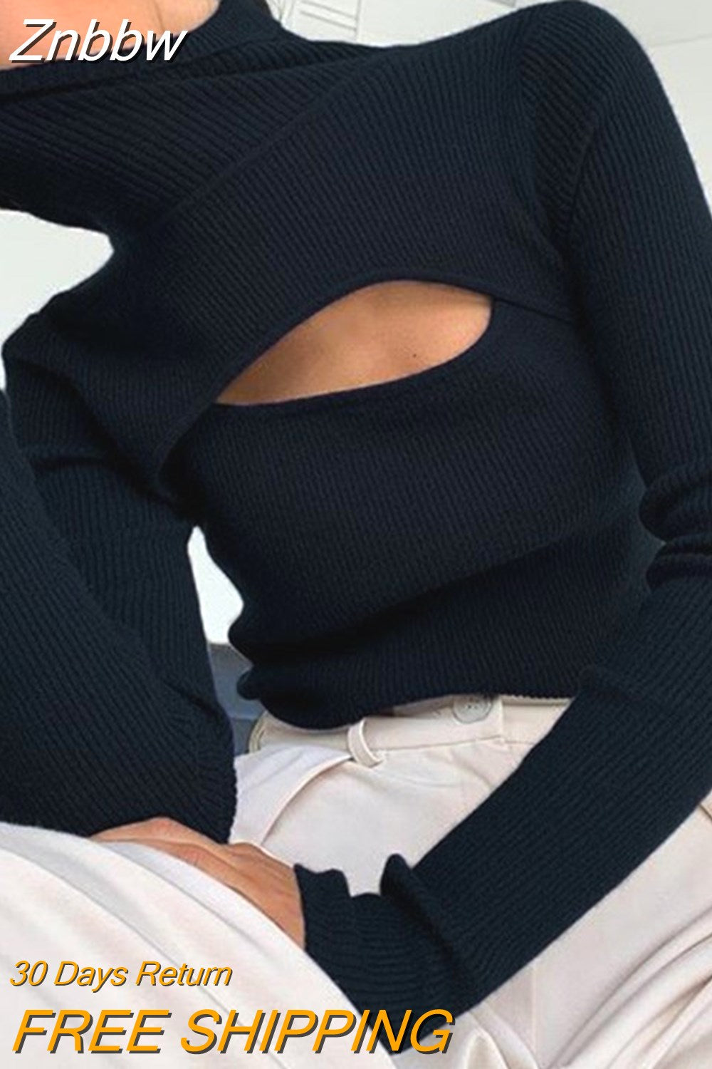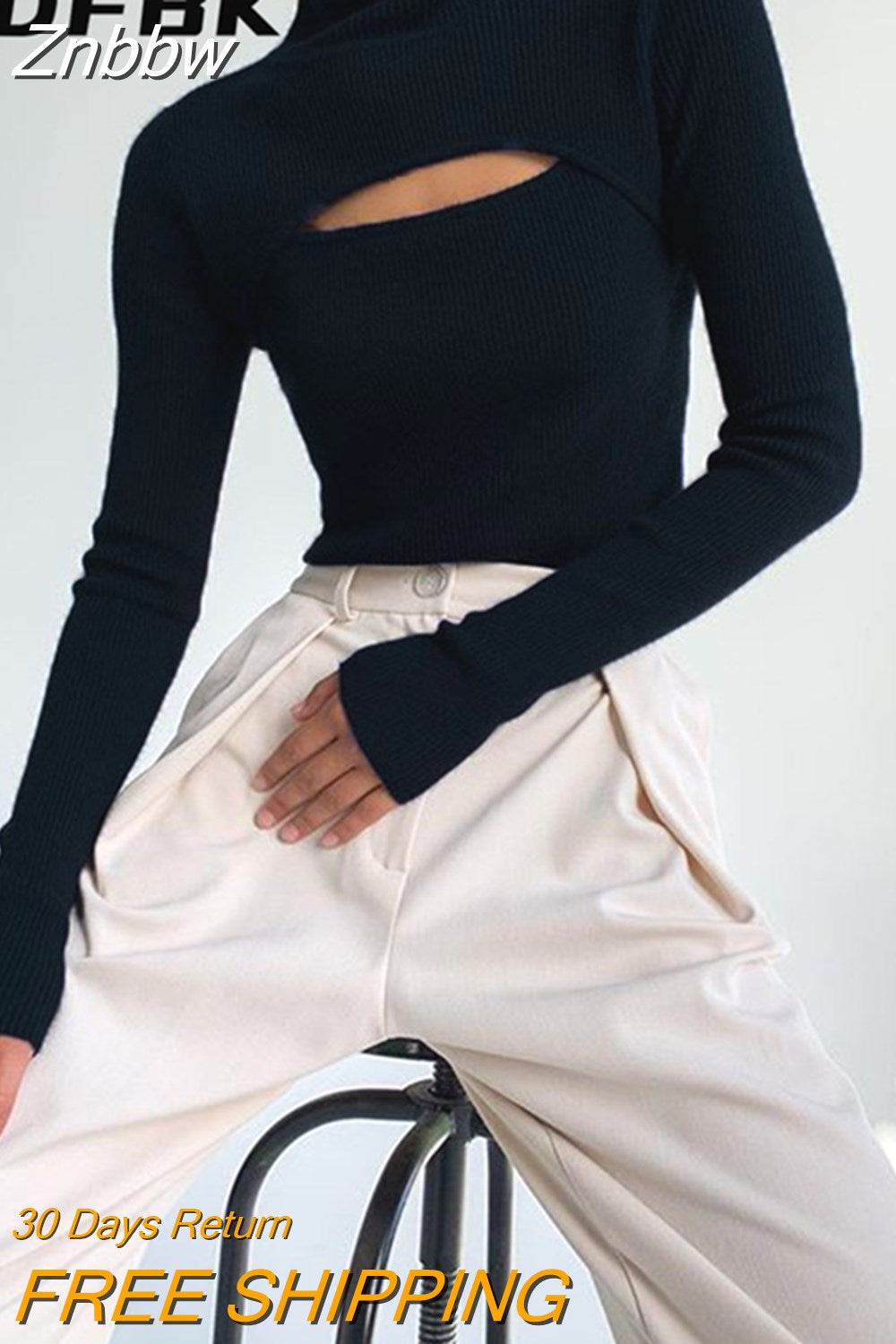Znbbw Women Knitted Turtleneck Sweaters Sexy 2023 Autumn Winter Slim Pullover Casual Soft Warm Long Sleeve Hollow Pullover Knit Top