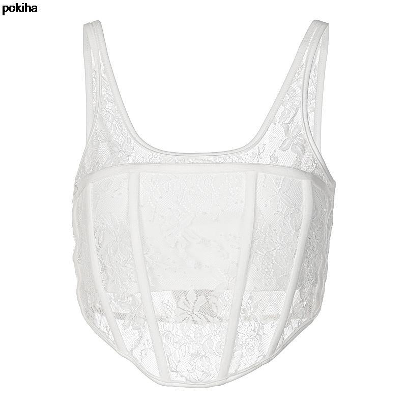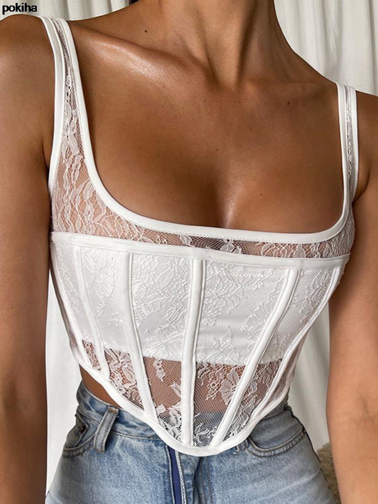 znbbw Lace Sheer Sexy Corset Crop Top For Women 2023 Fashion Summer Sleeveless Backless Tank Tops Slim Club Streetwear Clothes