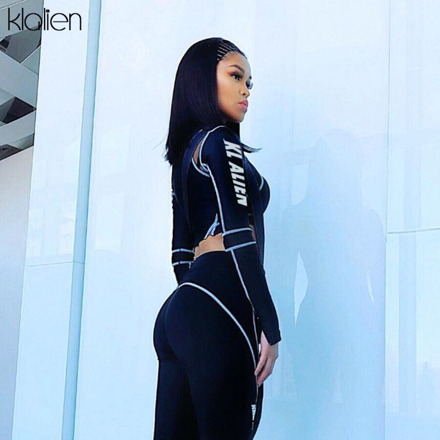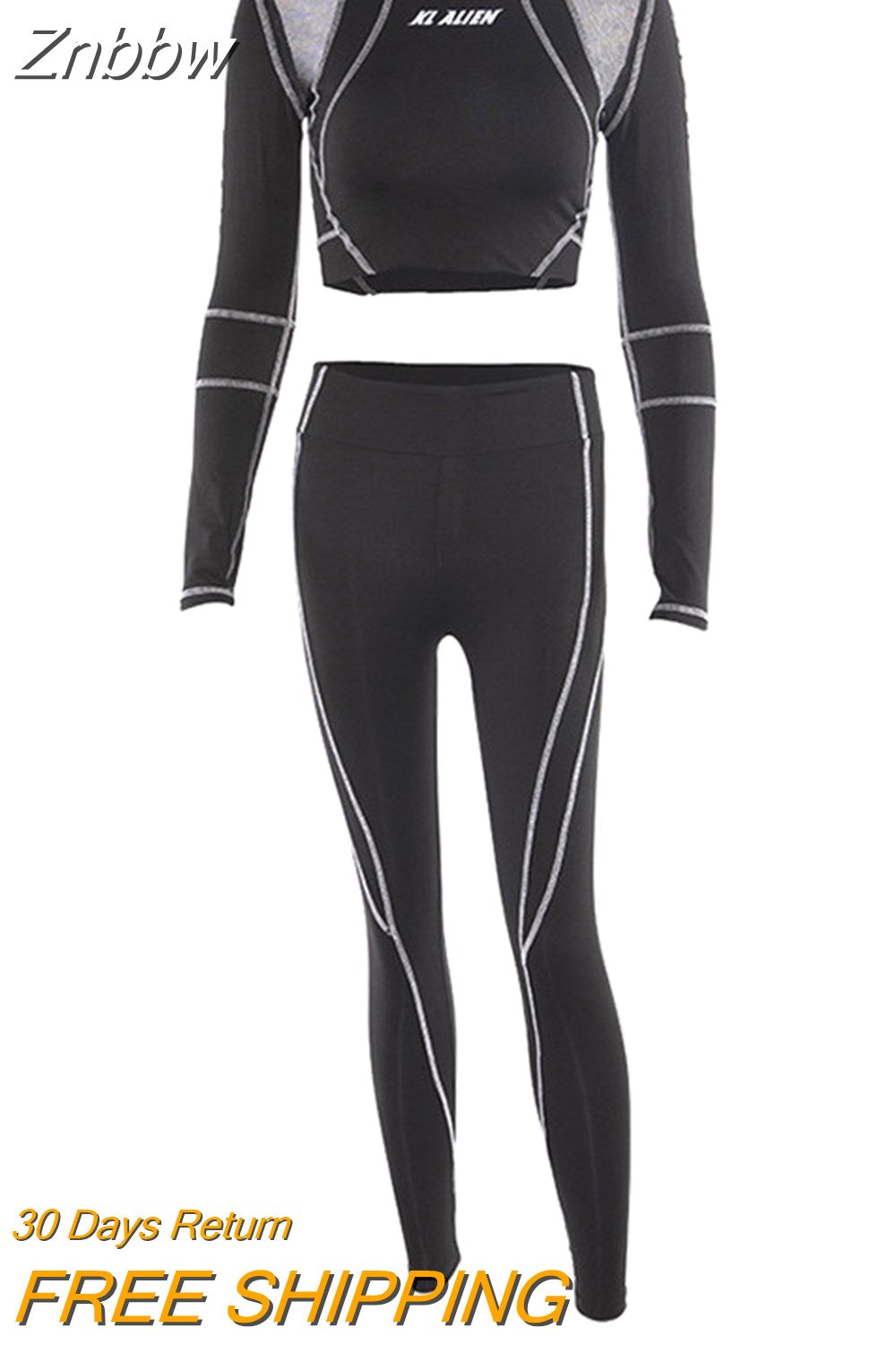 Znbbw Letter Print Turtleneck Top + Leggings Striped Patchwork Fashion Casual Women Fitness Sport Two Pieces Set Tracksuits