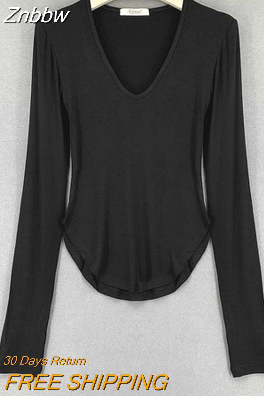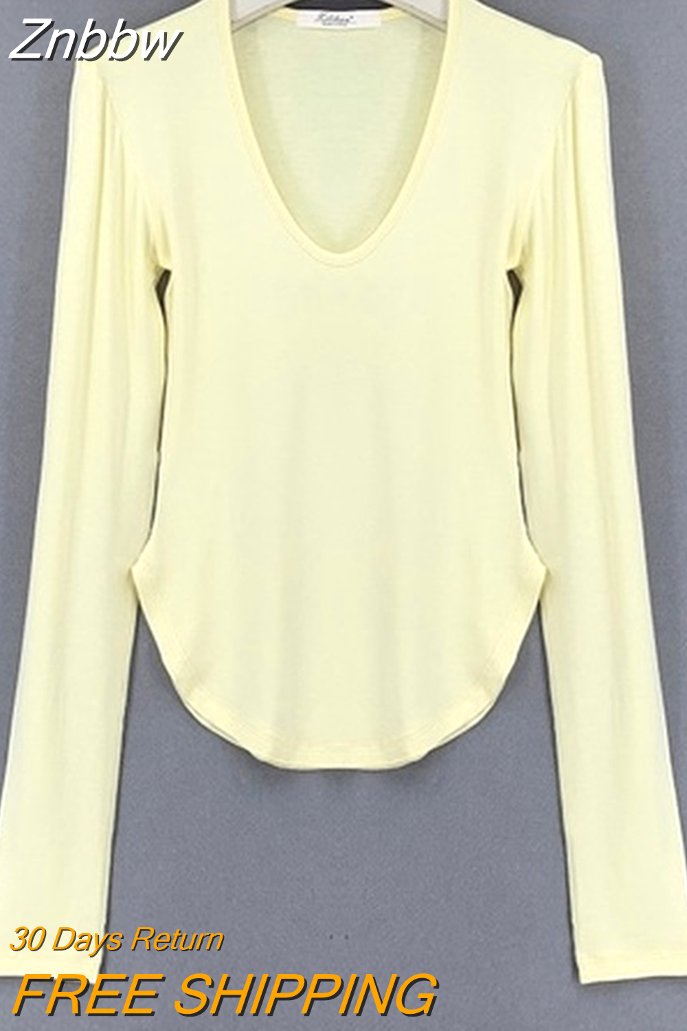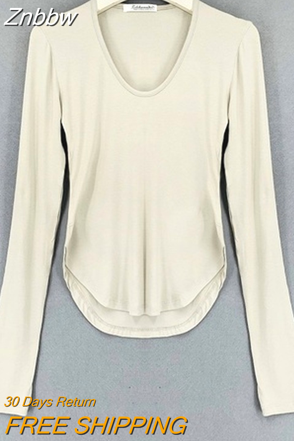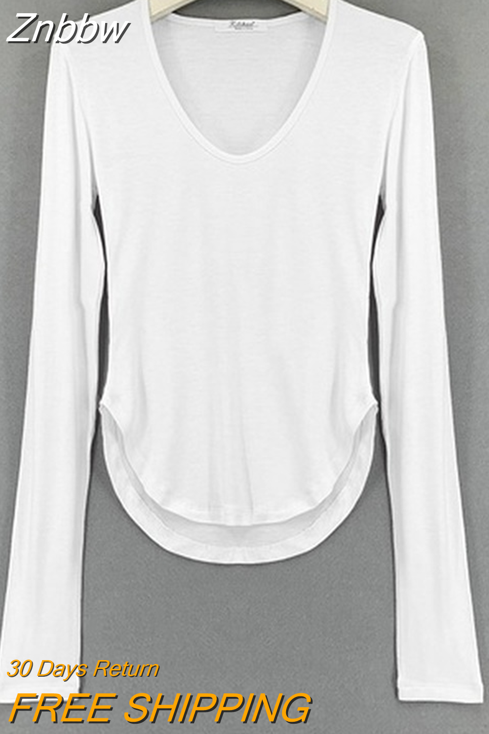 Znbbw Long Sleeve Tshirt Women 2023 Fashion Slim White Woman Tshirts Tops High Elasticity Thin Skinny Tee Shirt Blusas 16075