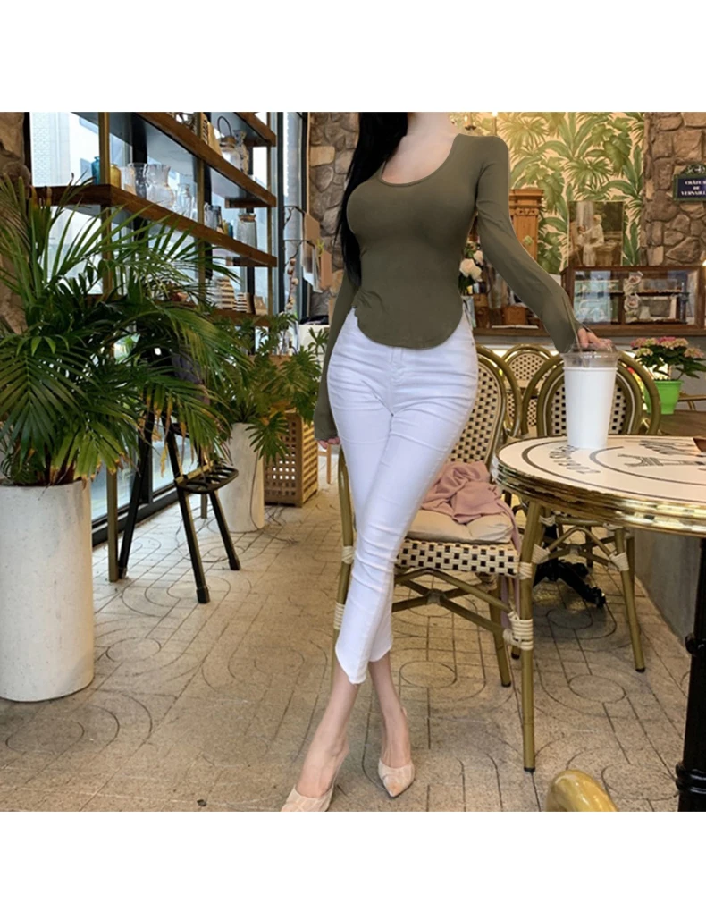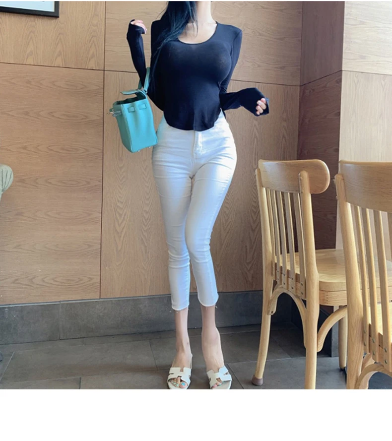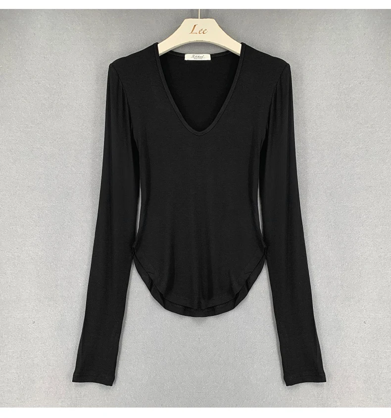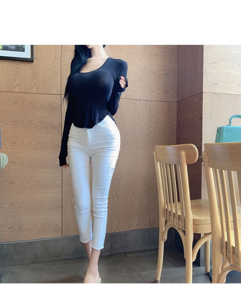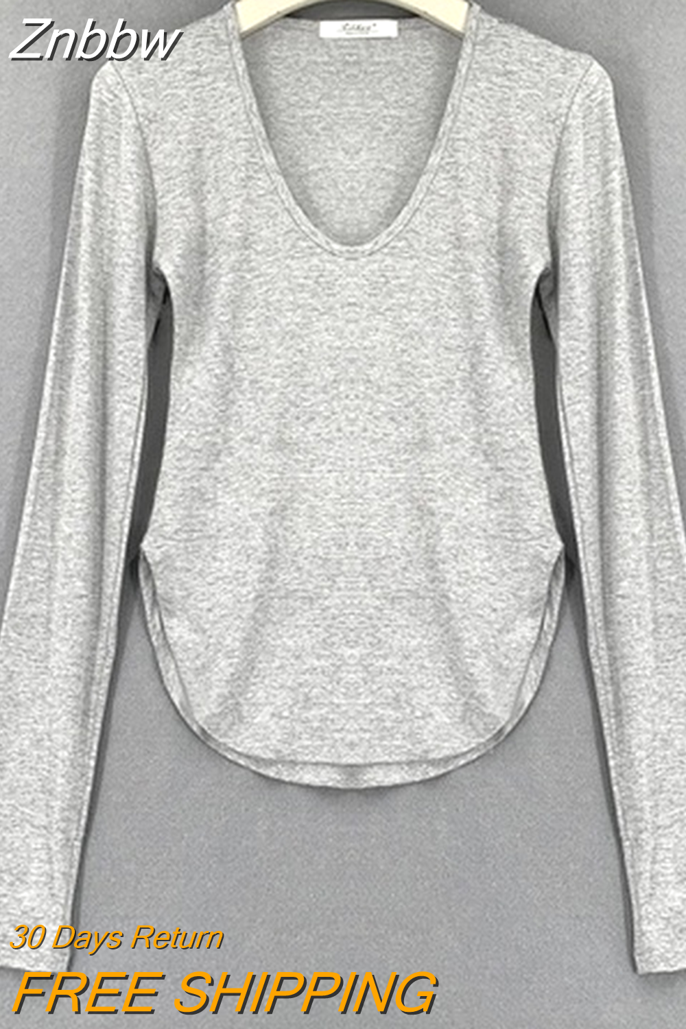 Znbbw Long Sleeve Tshirt Women 2023 Fashion Slim White Woman Tshirts Tops High Elasticity Thin Skinny Tee Shirt Blusas 16075