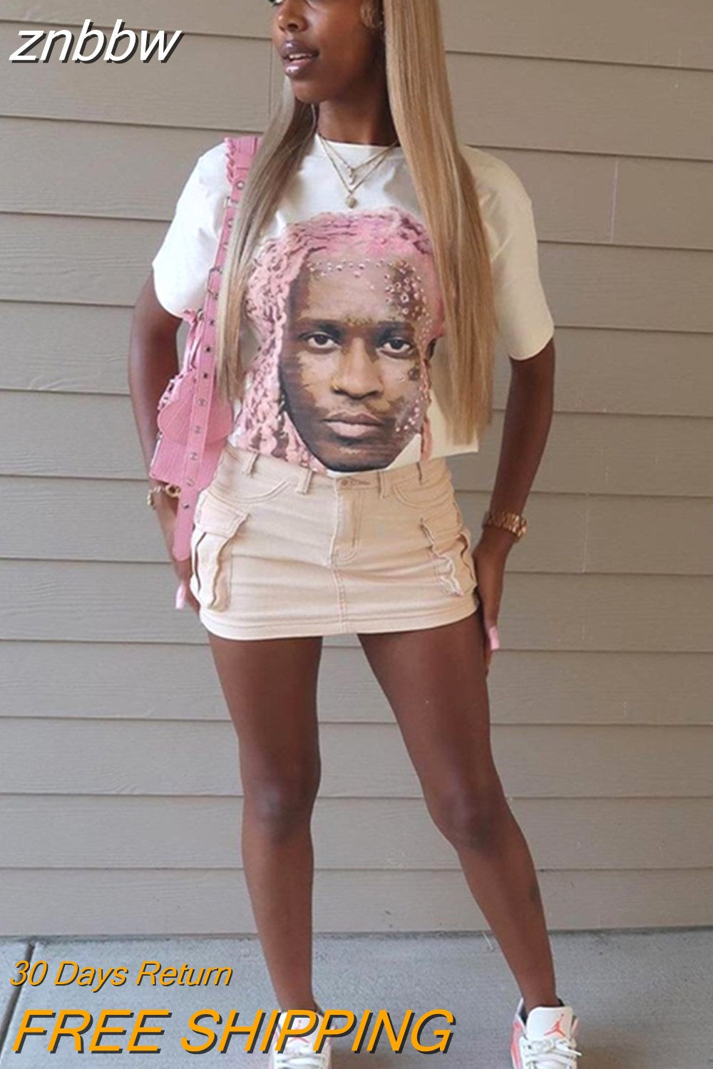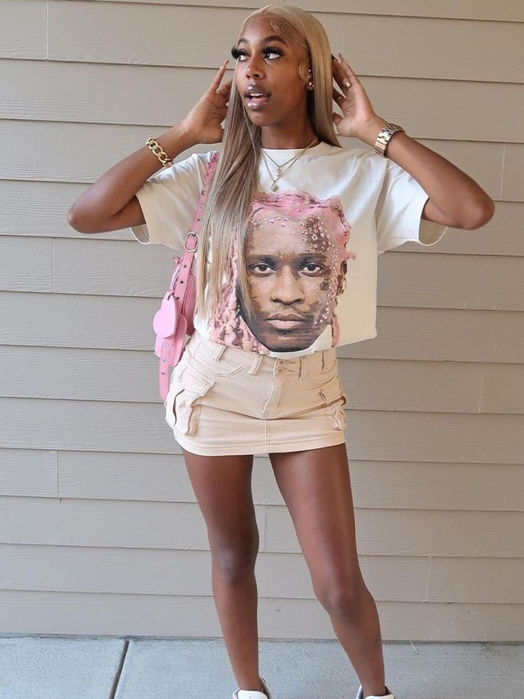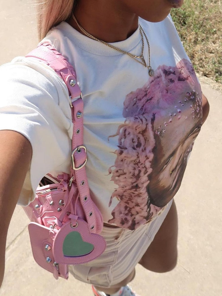 znbbw Spring Sexy White Loose Graphic T Shirts Summer Club Outfit For Women 2023 Short Sleeve O Neck Tees Top Casual Tee Shirt