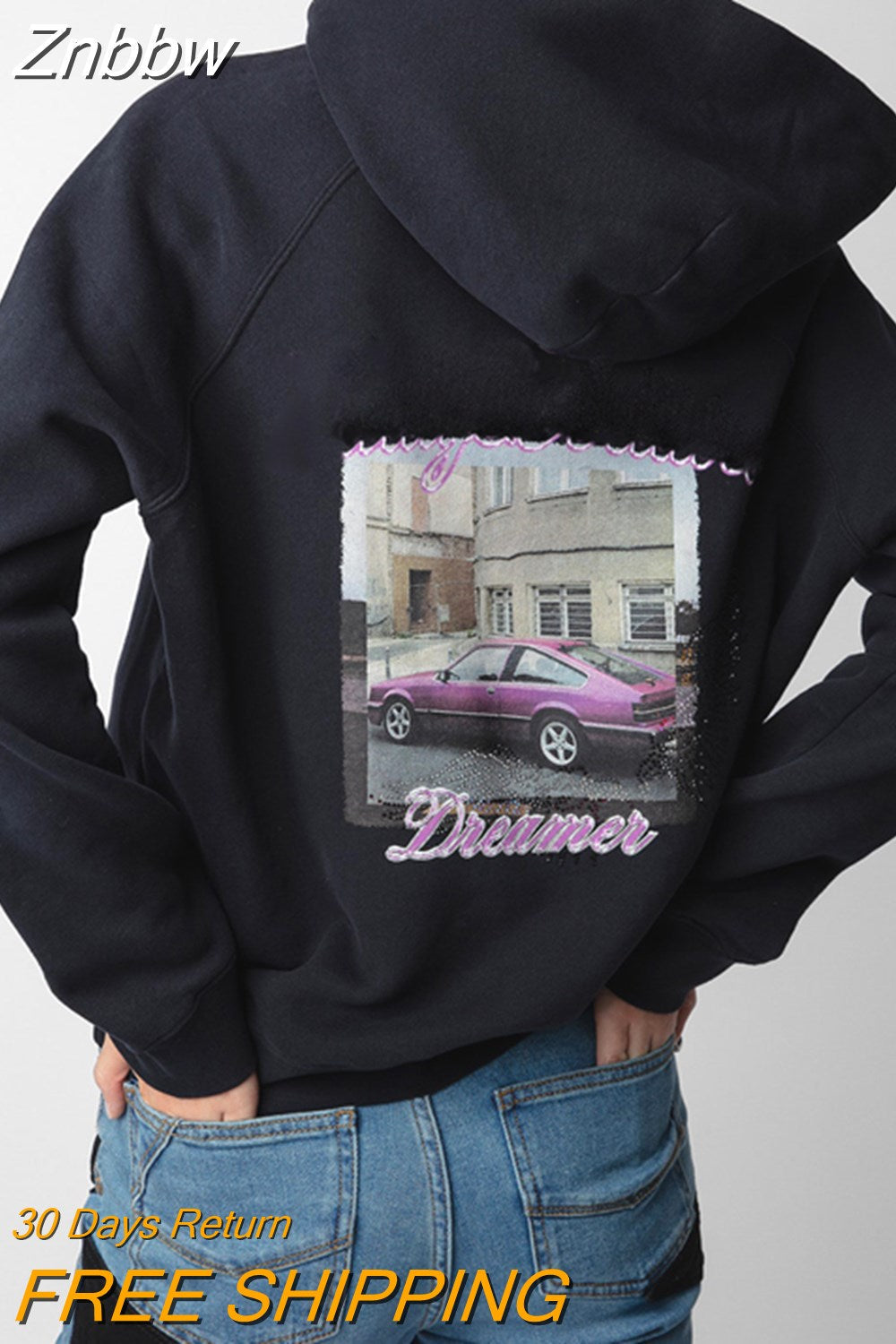 Znbbw Strass Hoodies for Women Autumn Winter Clothes 2023 Graphic Oversized Pullovers Female Fashion Hooded Sweatshirt Tops