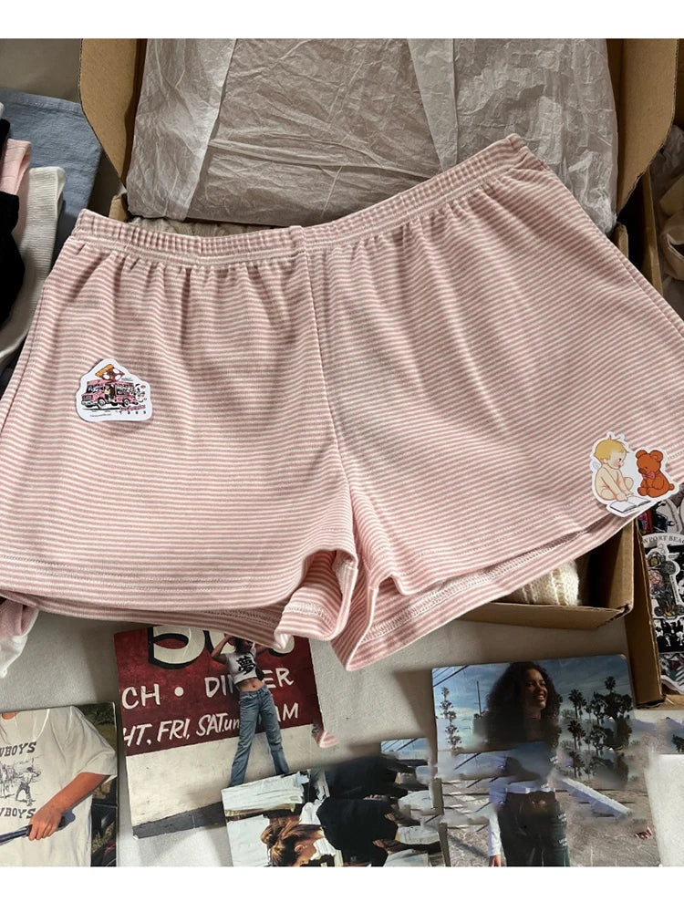 Znbbw Striped Cotton Vest Shorts 2 Pieces Set Women Bow Slim Tank Tops With Elastic High Waist Straight Short Pants Sweet Sets