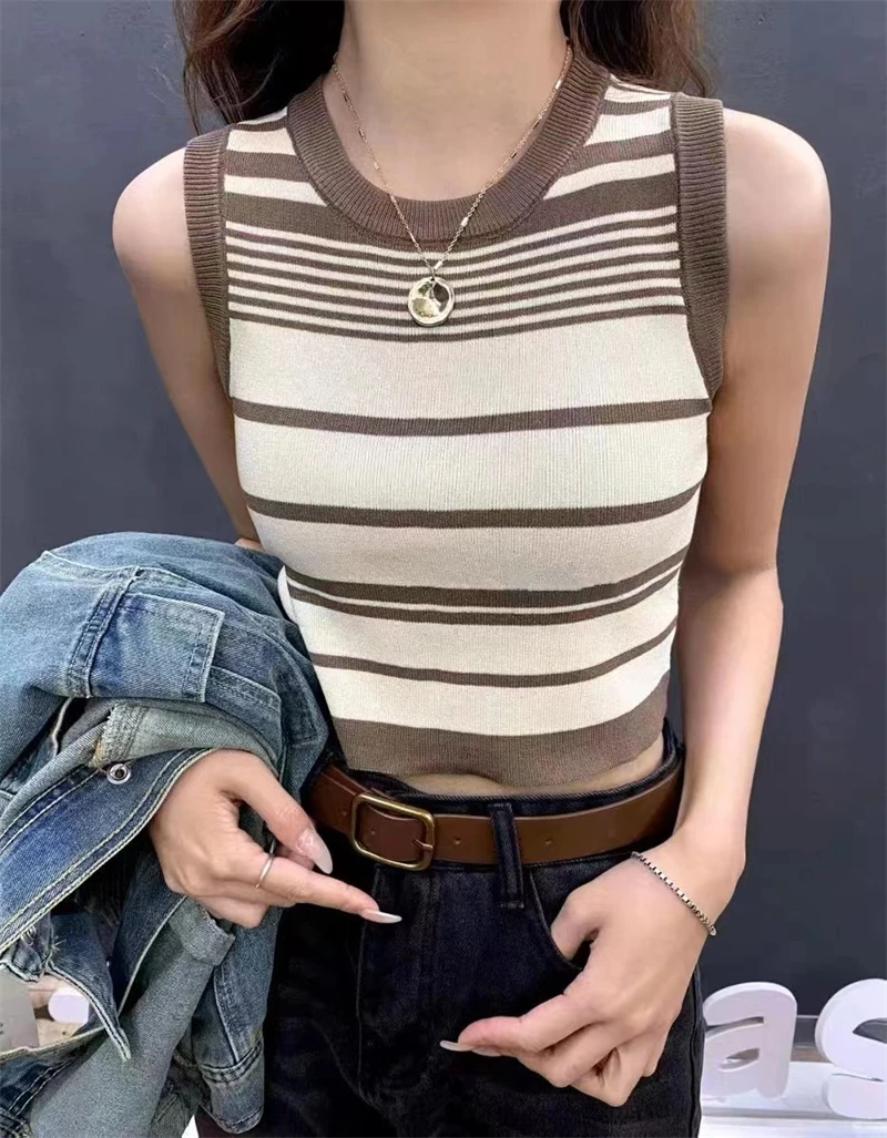 Znbbw Striped Tank Women Slim Knitting Camisole Crop Tops Female Bodycon Knitted Tanks Sleeveless Short Tee shirts