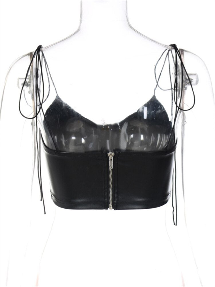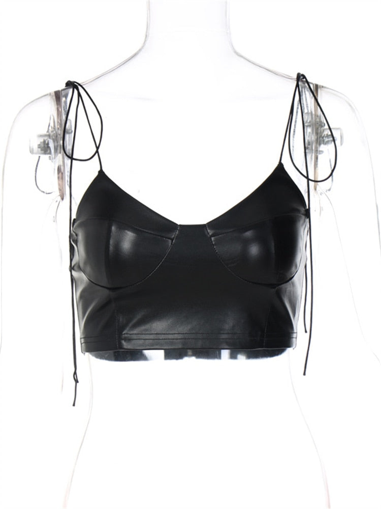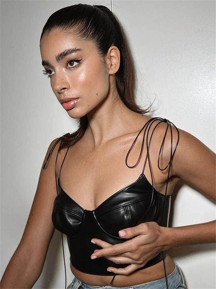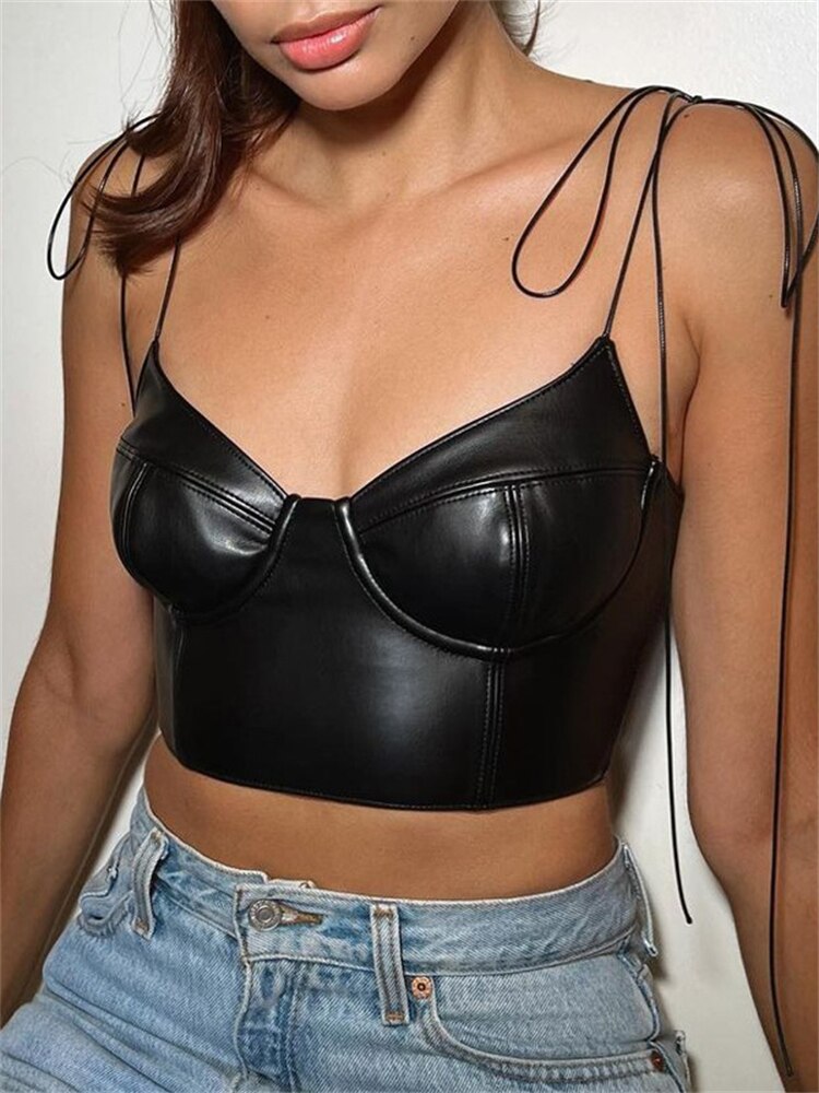 znbbw Summer Sexy Camis Backless Camisole Club Outfit For Women 2023 Faux Leather Crop Top Female Black Casual Tank Top