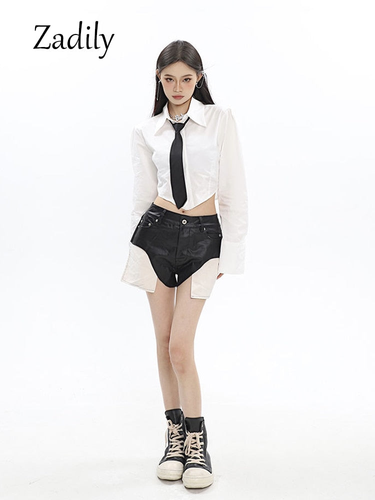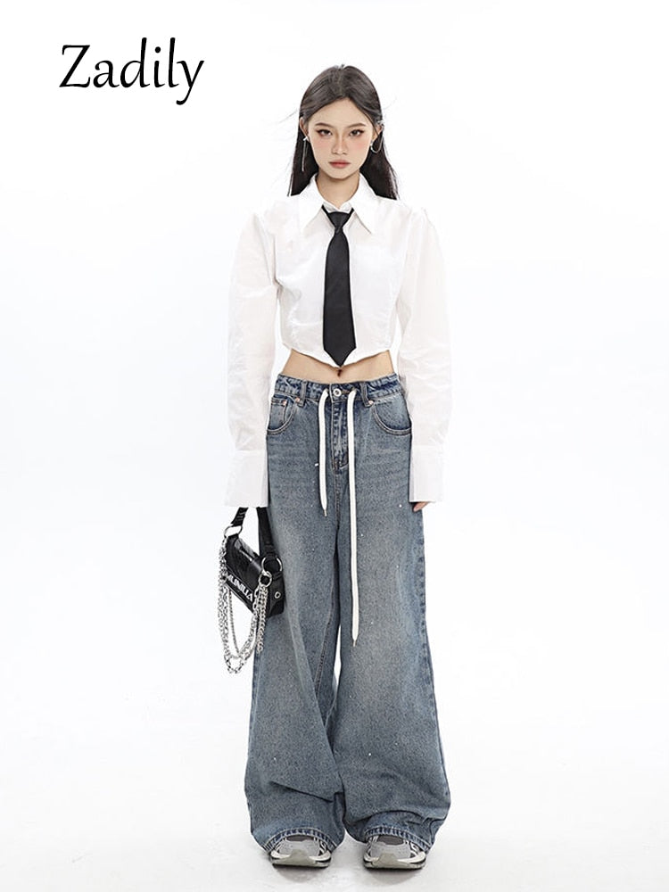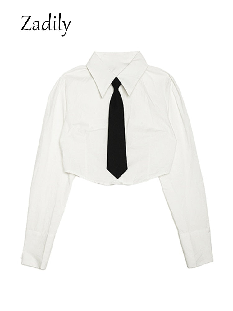 znbbw Summer Streetwear Long Sleeve Button White Shirt Women Korea Style top with ties Ladies Crop Tops Blouse New In Clothing