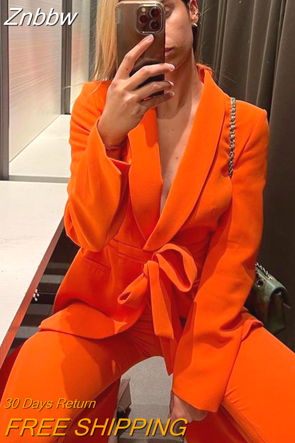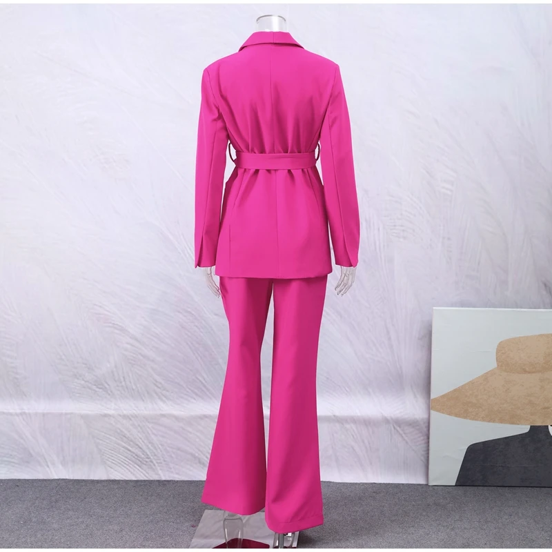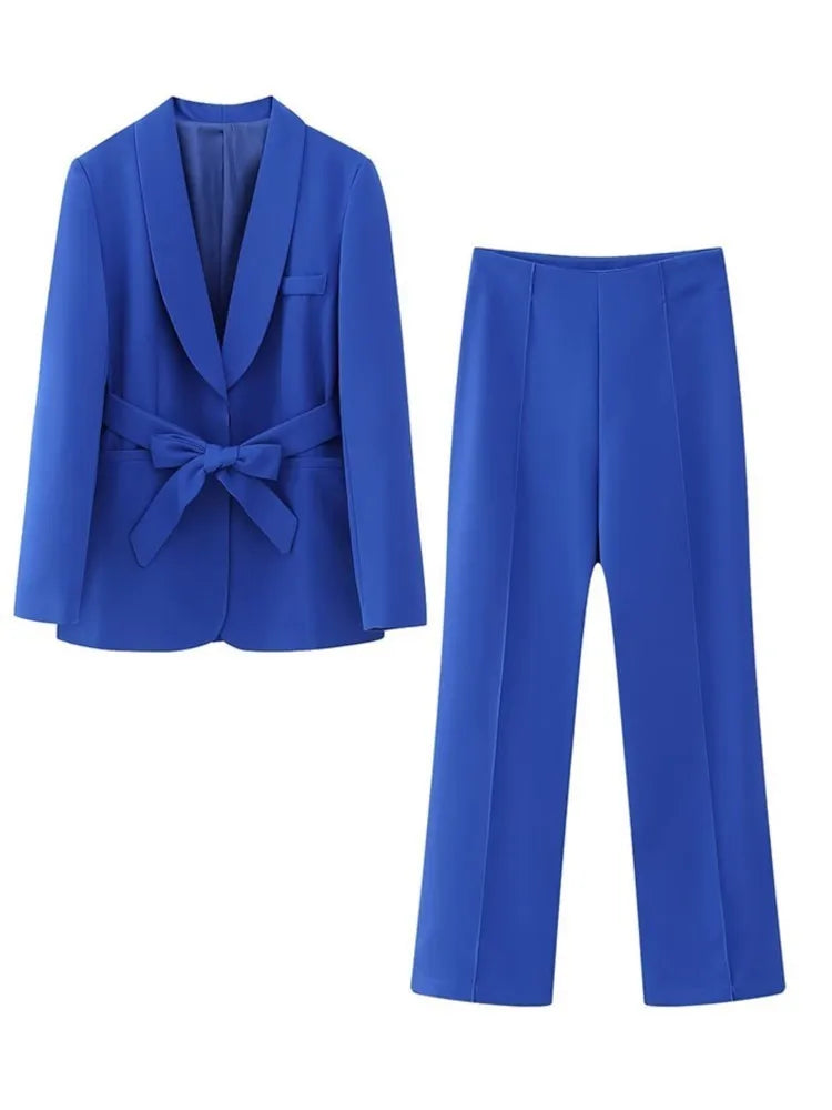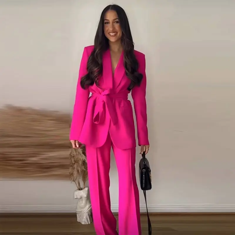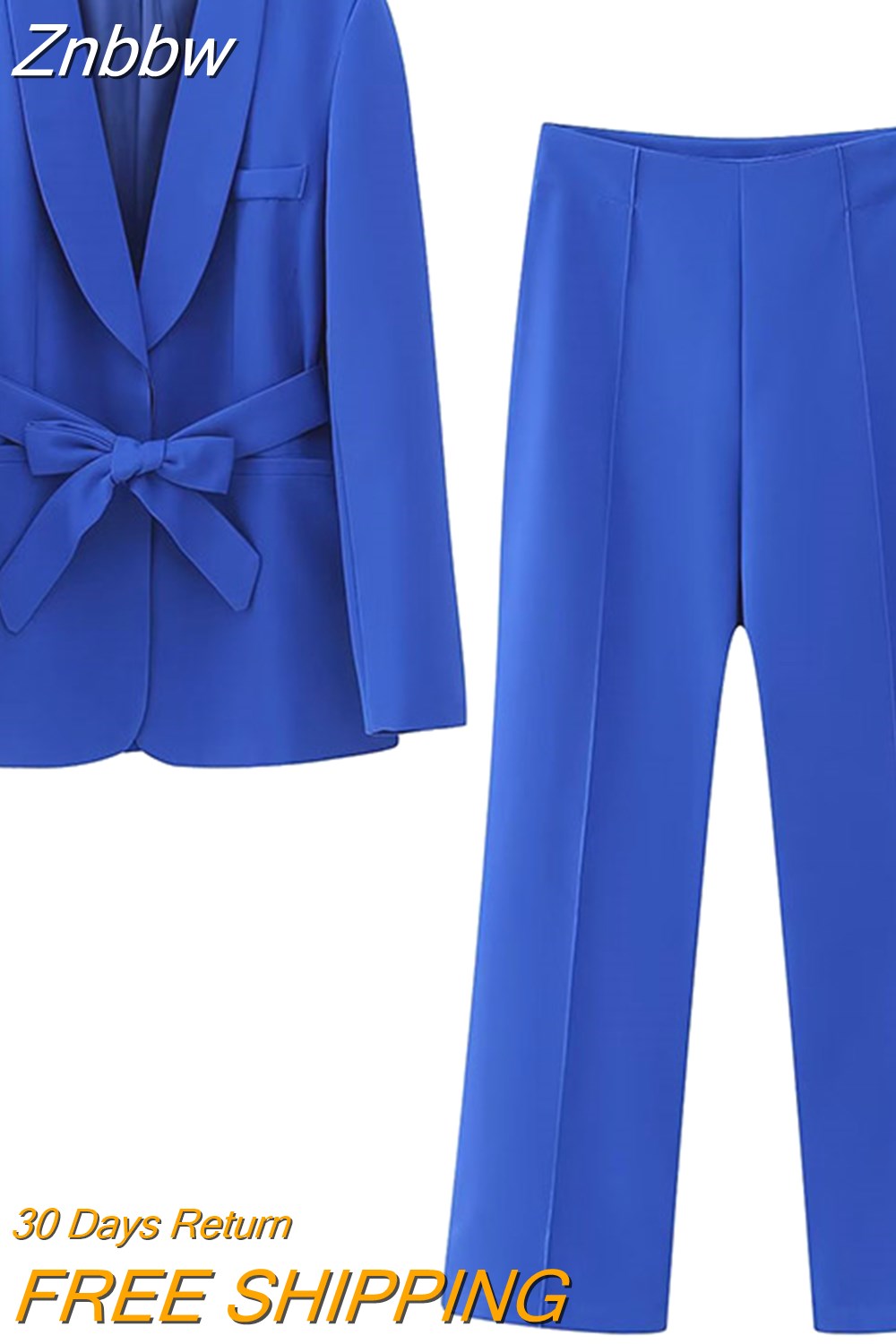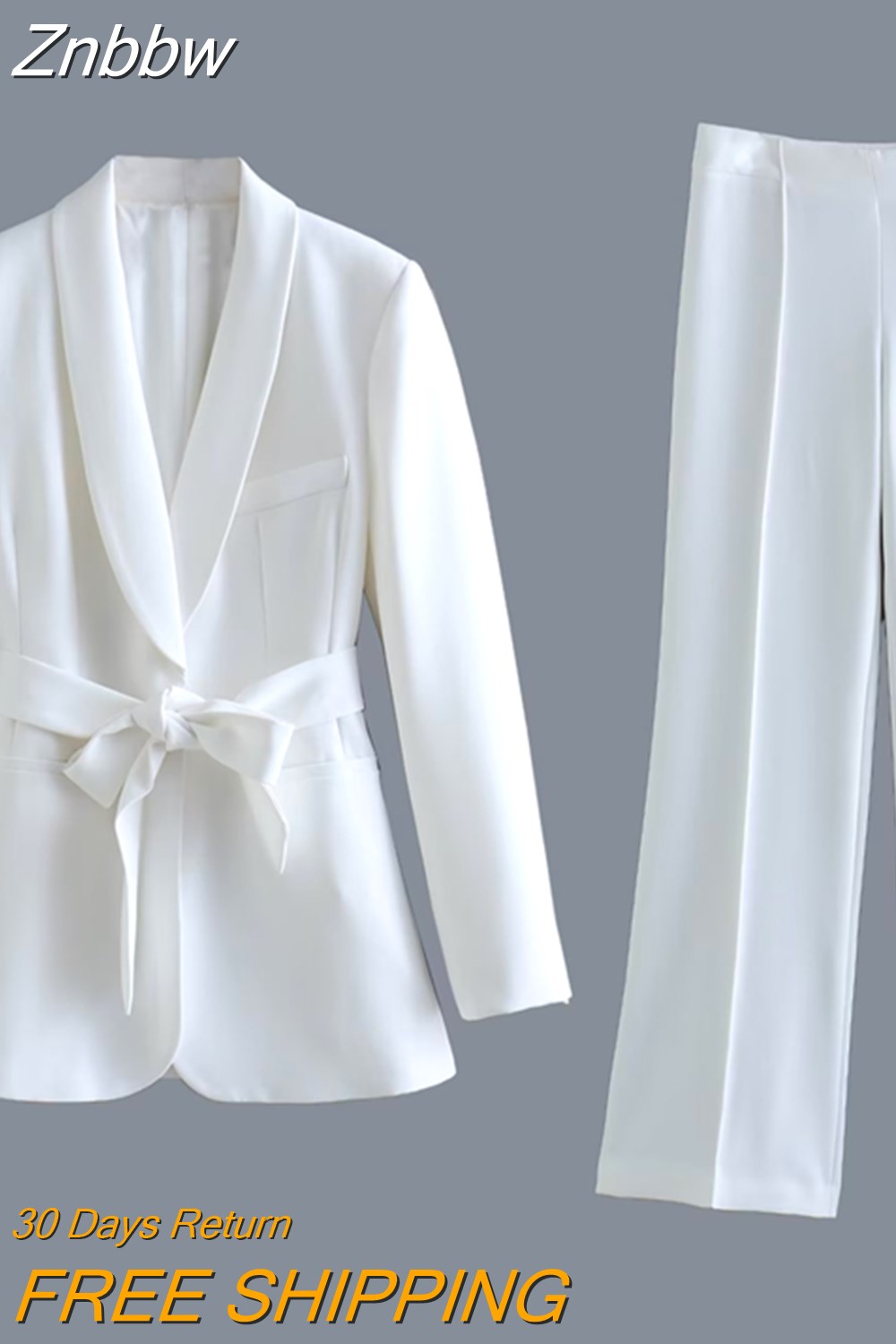 Znbbw Tops With Belt Pant Sets Women Fashion Single Button Jacket Trousers Autumn Winter Office Outfits Outwear