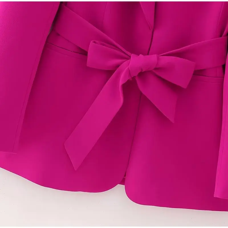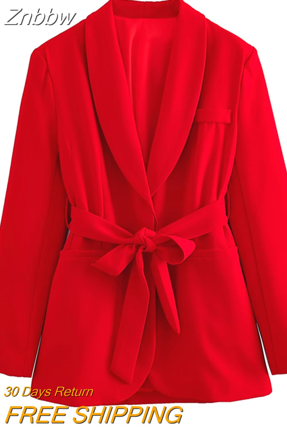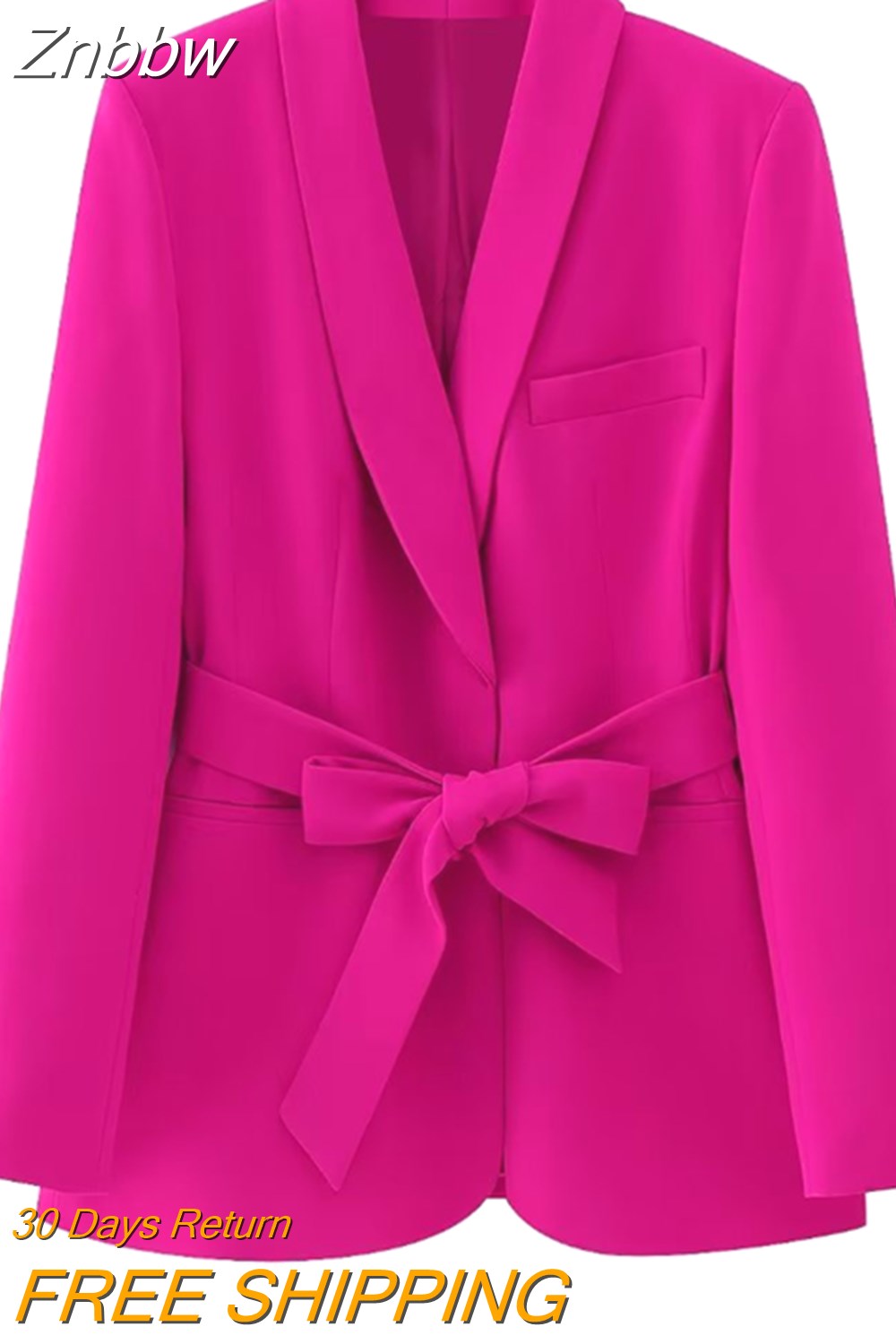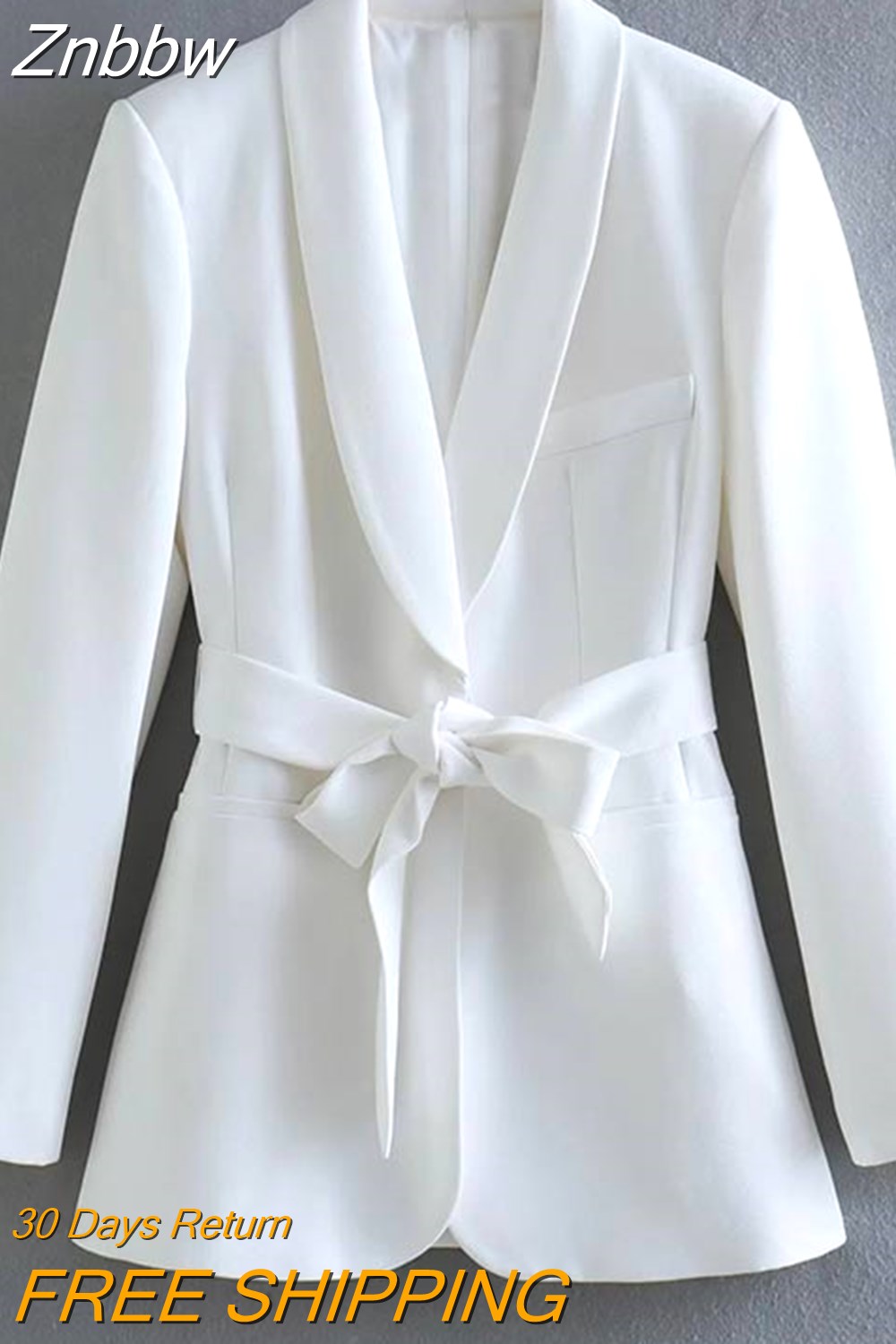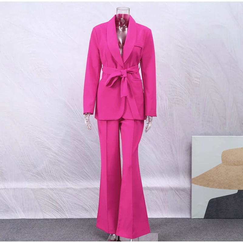 Znbbw Tops With Belt Pant Sets Women Fashion Single Button Jacket Trousers Autumn Winter Office Outfits Outwear
