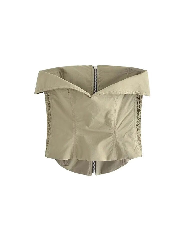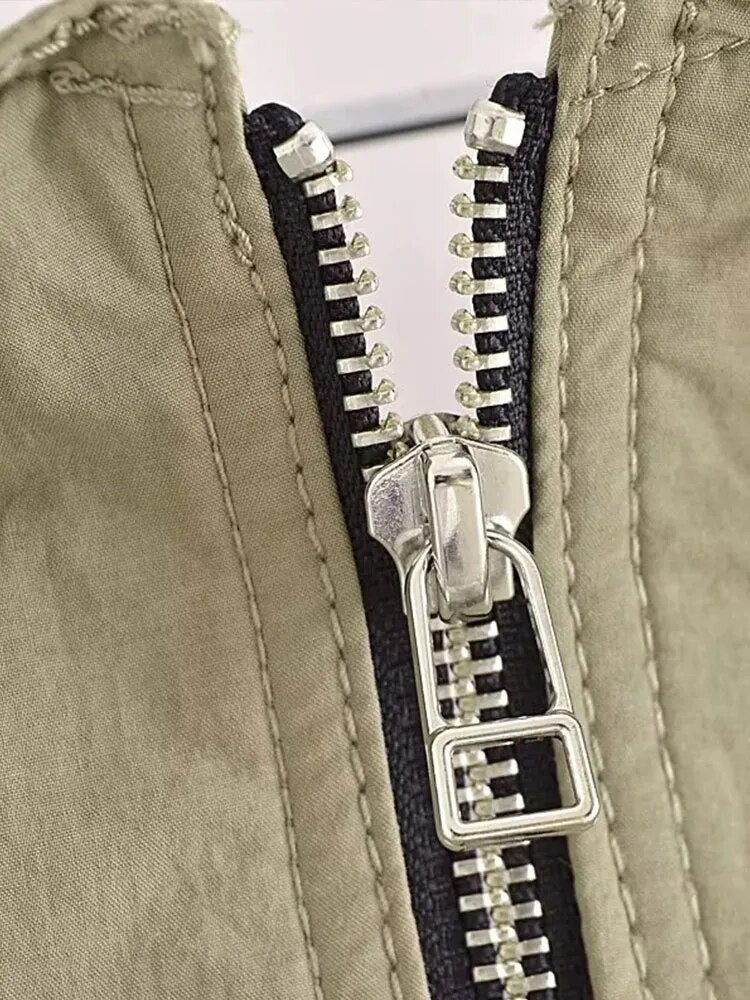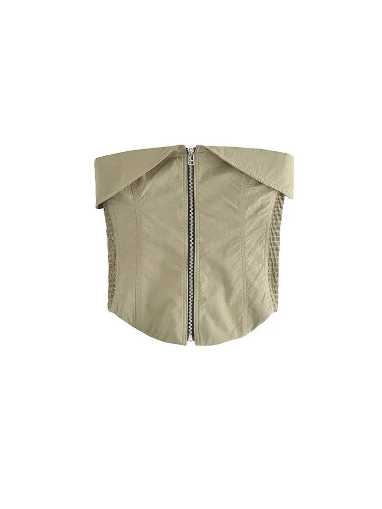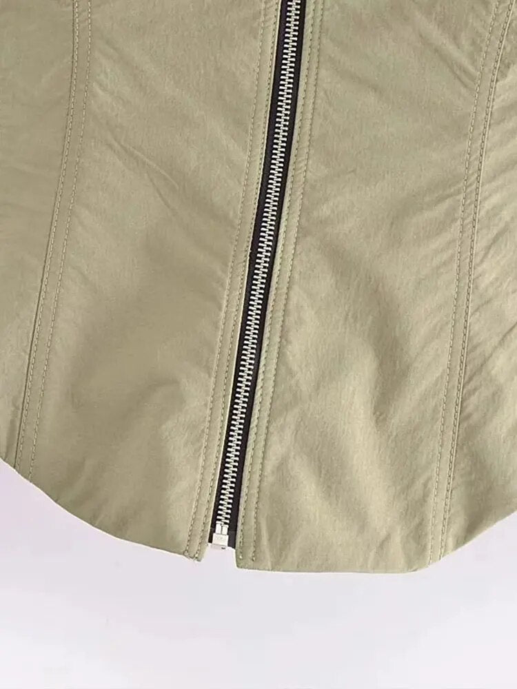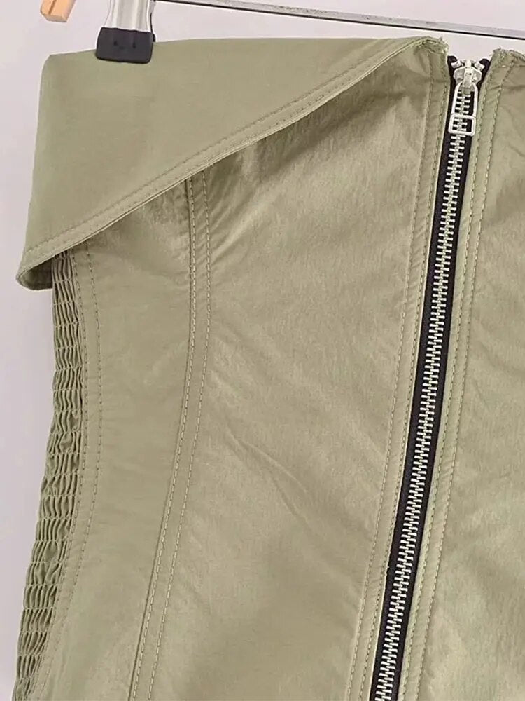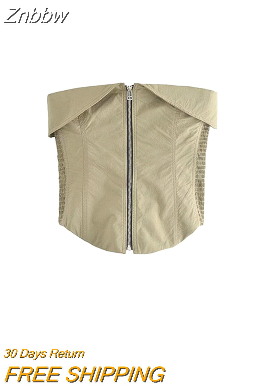 Znbbw TRAF 2023 Woman 2 Piece Set Shirt Suit Zip Tight Bra Top+Thread Catching Decorative Zipper Pants Causal Outfits
