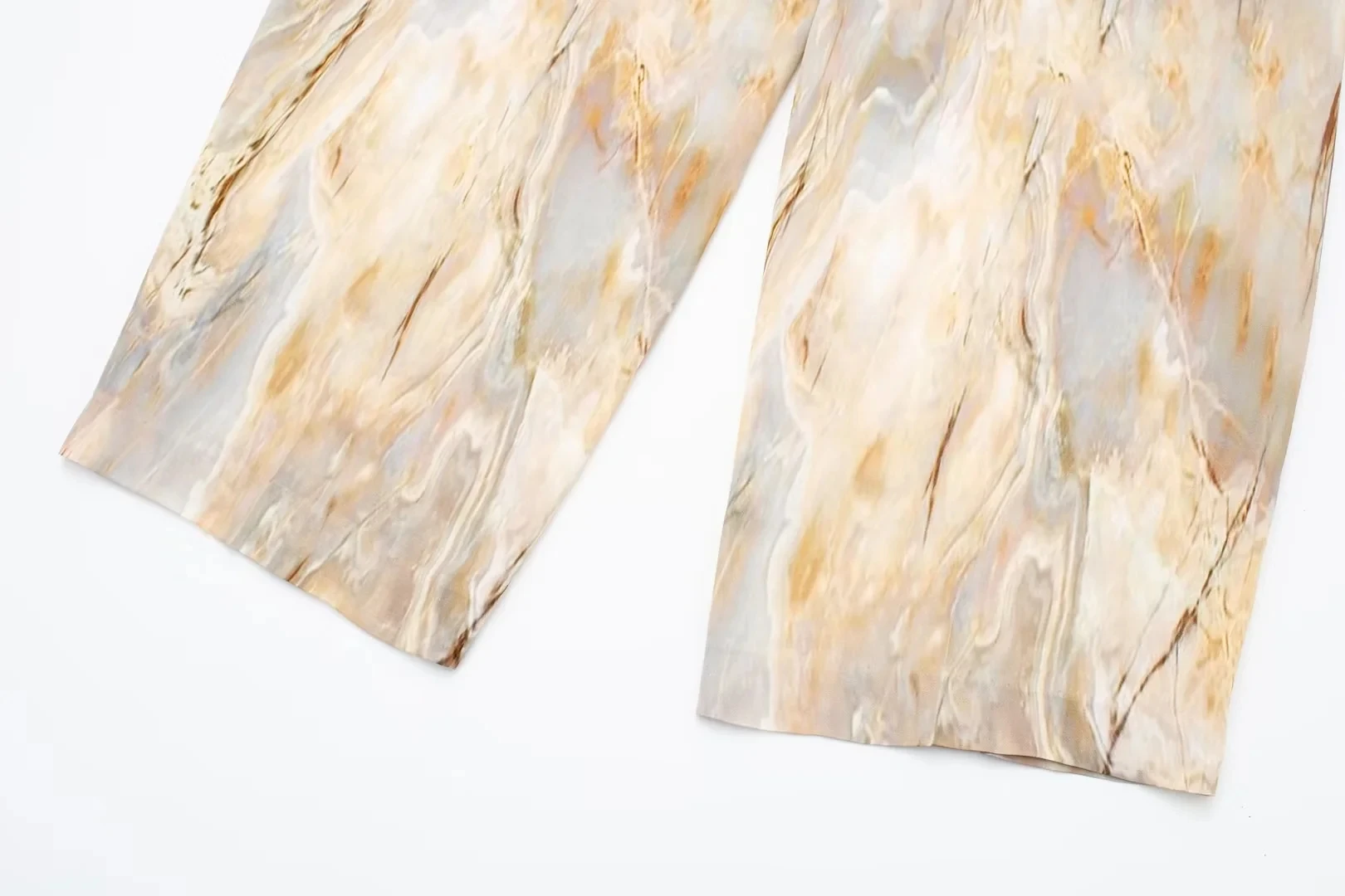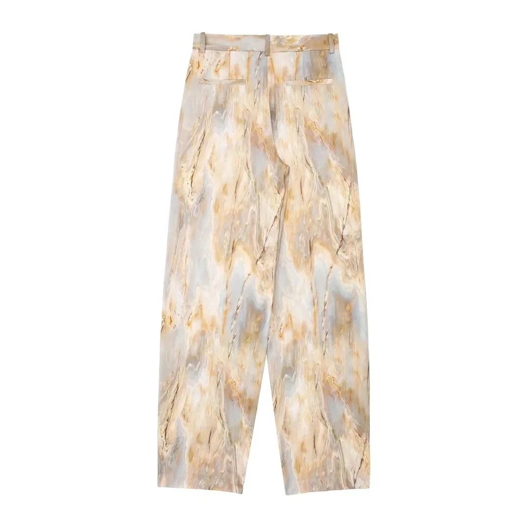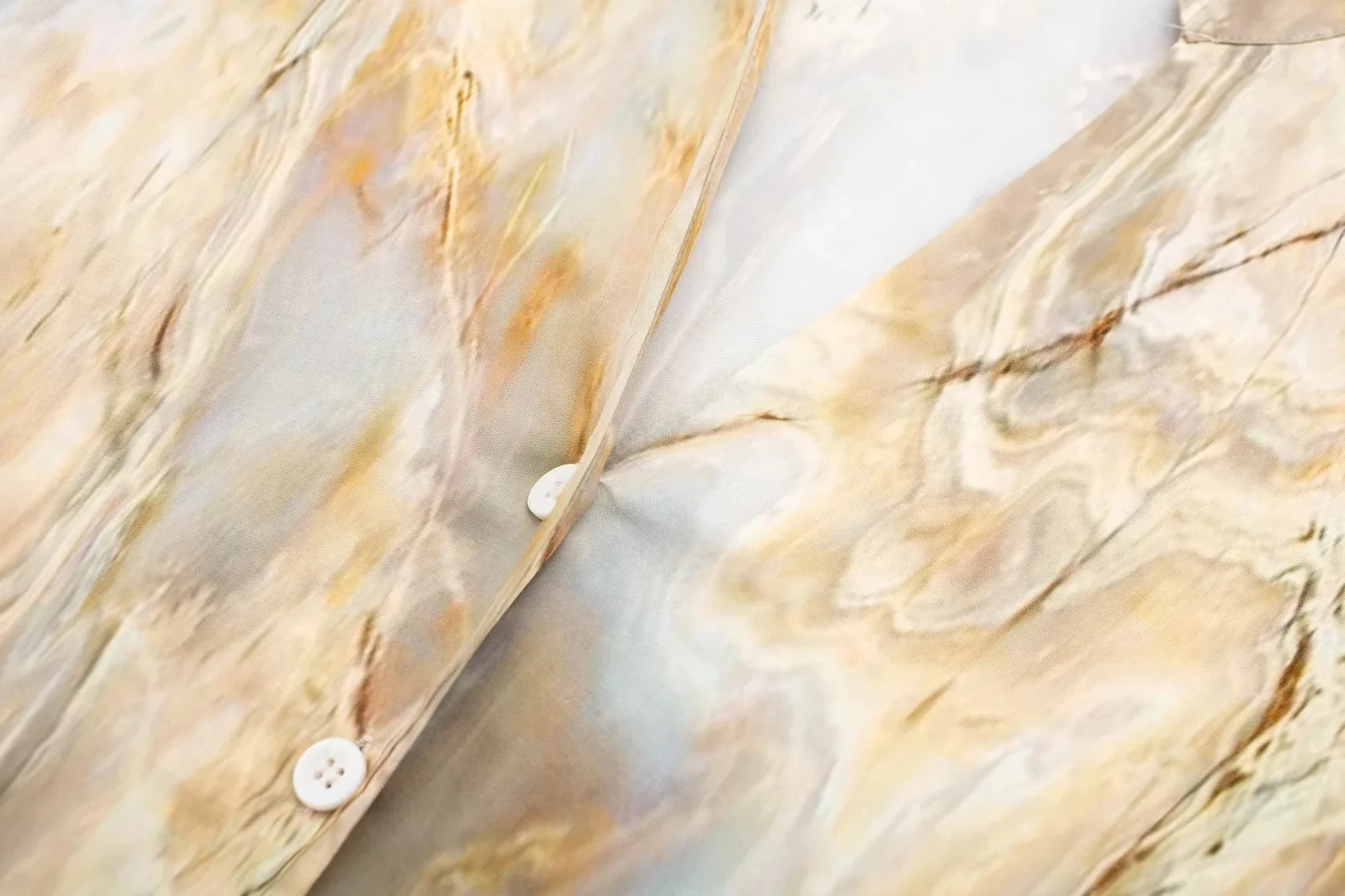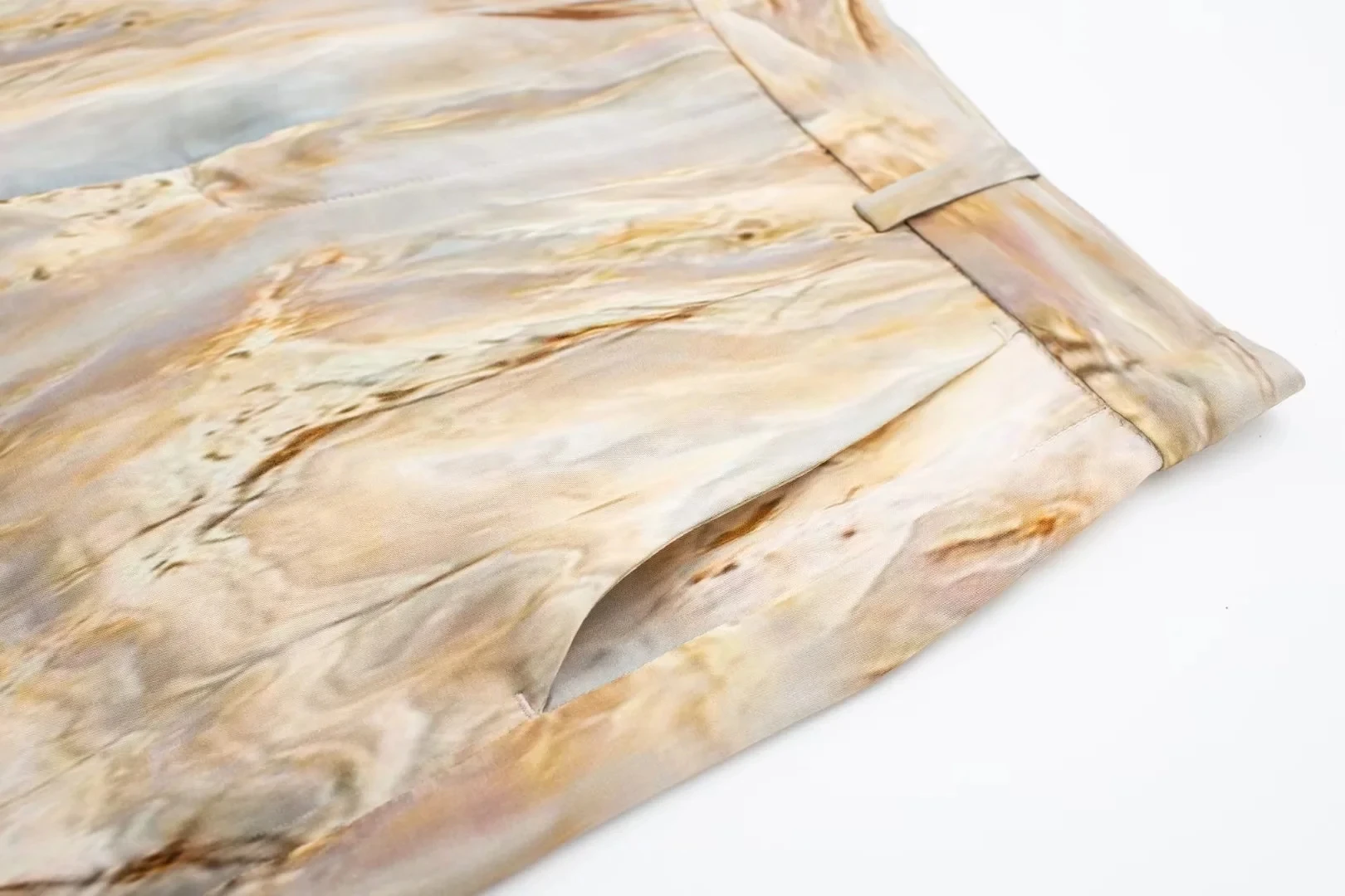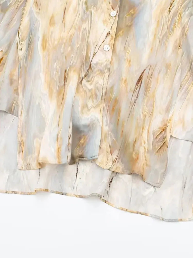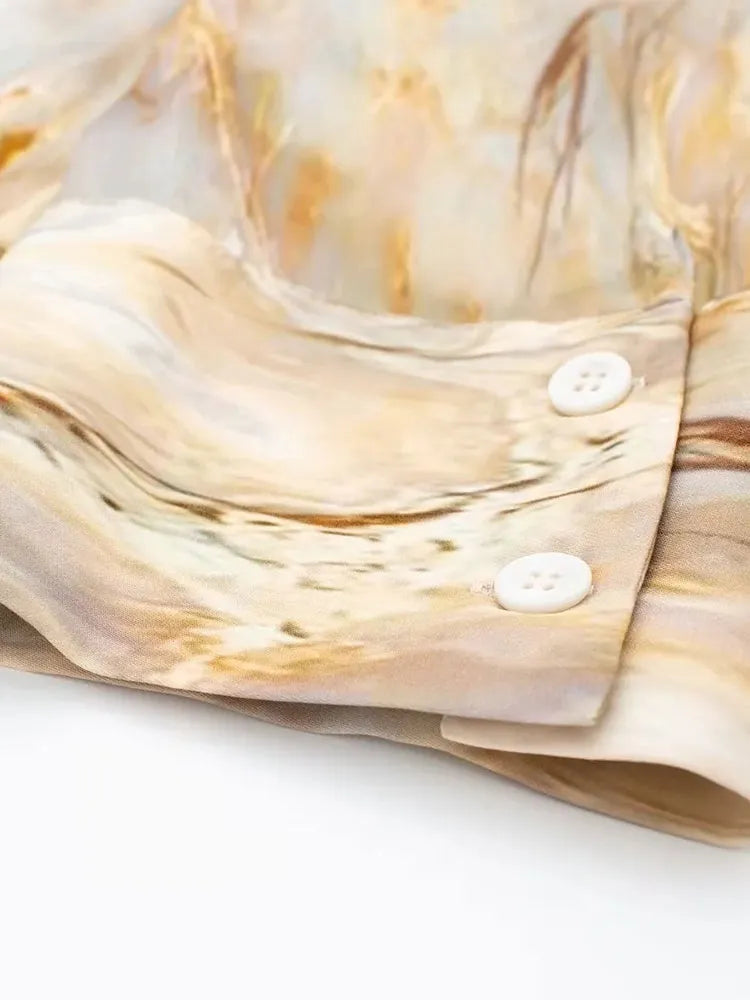 Znbbw TRAF Summer Tie Dye Print Women Casual Blouse V Neck High Low Hem V Neck Long Sleeve Satin Shirt Female Top