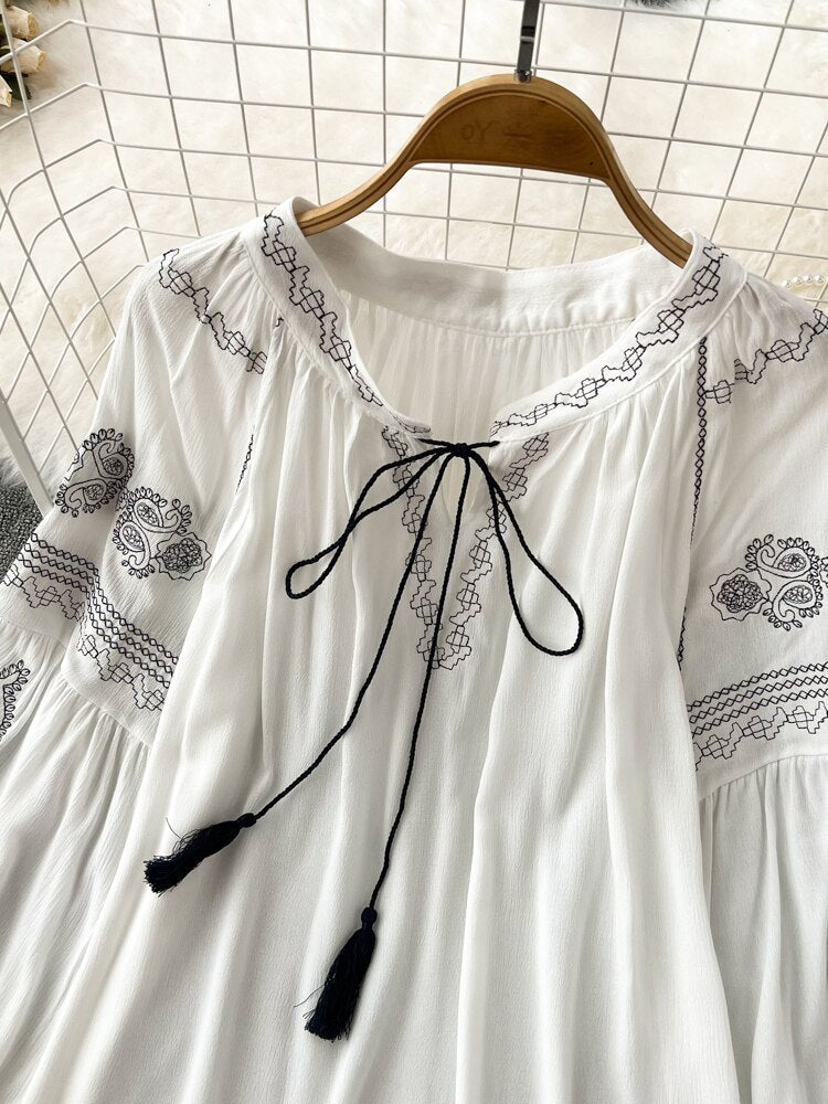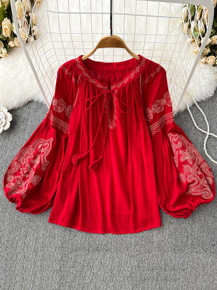 Znbbw Versatile Embroidery Shirt Women's Spring Autumn 2023New V-Neck Long Sleeve Bohemian Loose Blouse Womens Tops G06