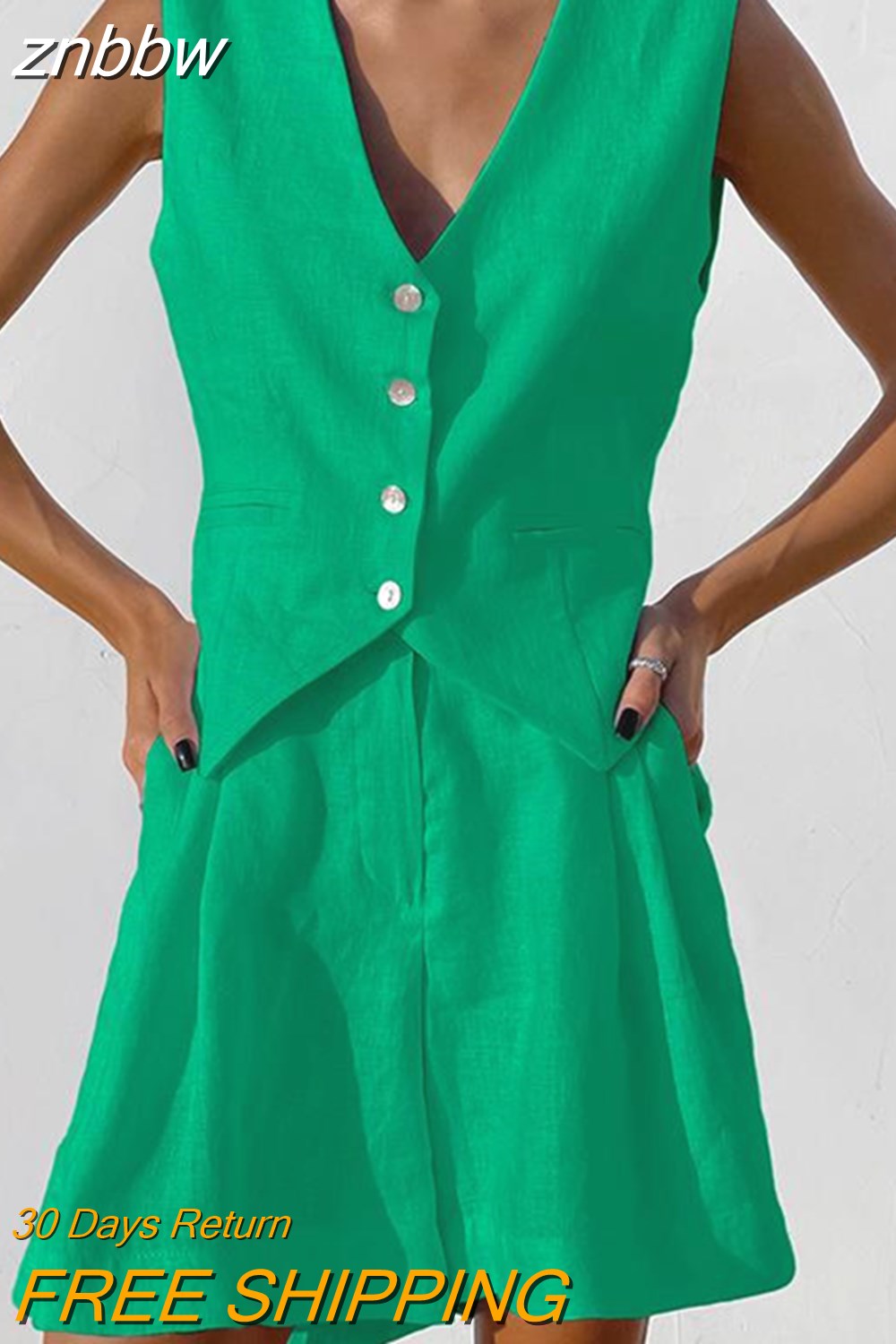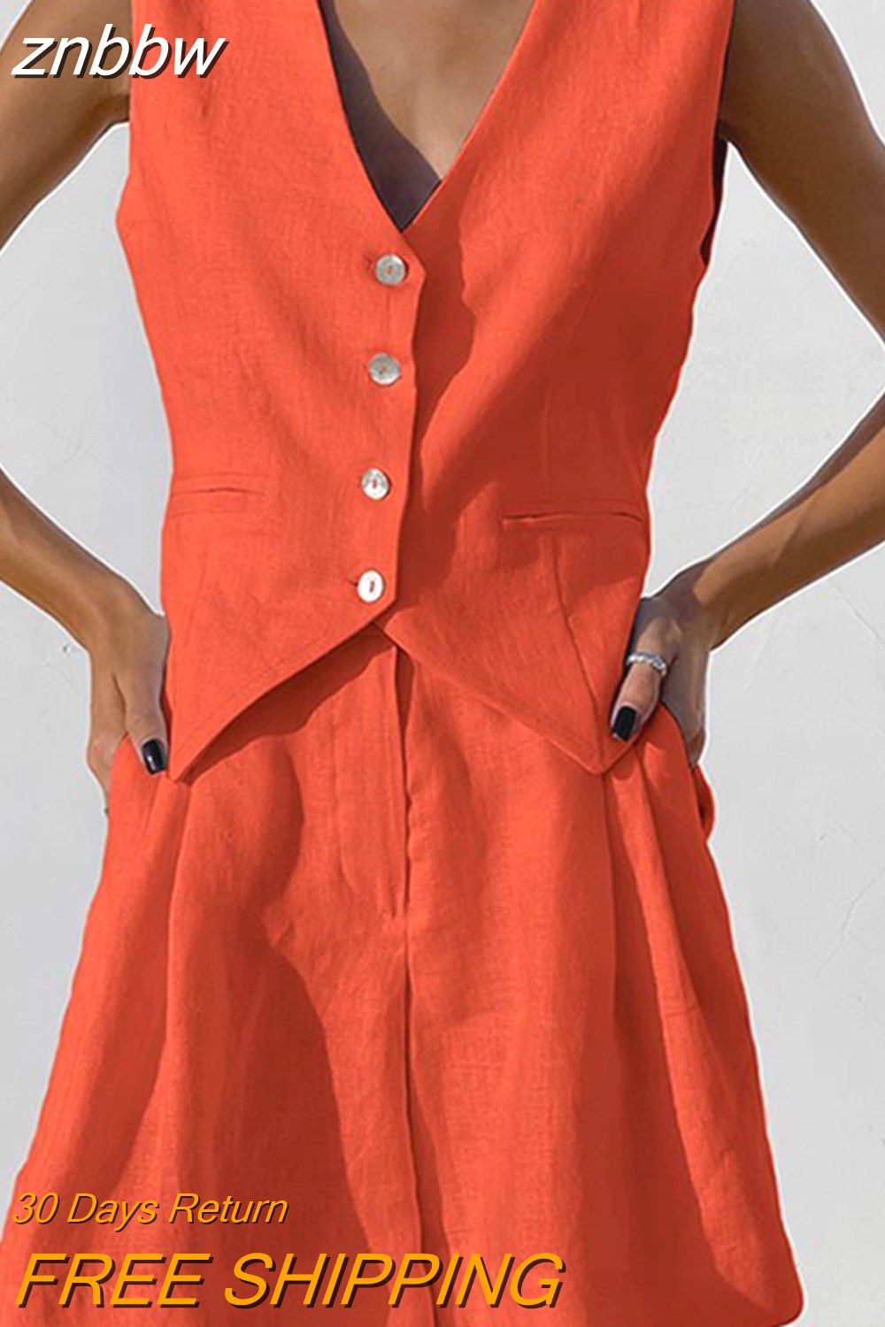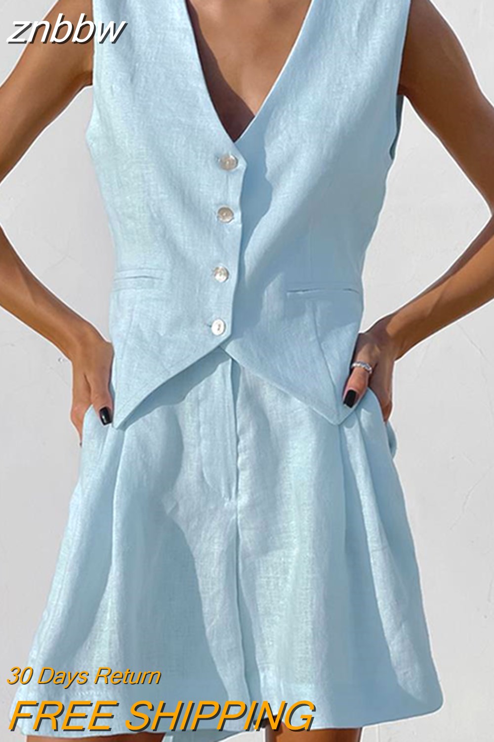 znbbw Waistcoat Shorts Sets Women Elegant Sleeveless Single Breasted Top Two Piece Set Womens 2023 Summer Lady Tank Set Casuals