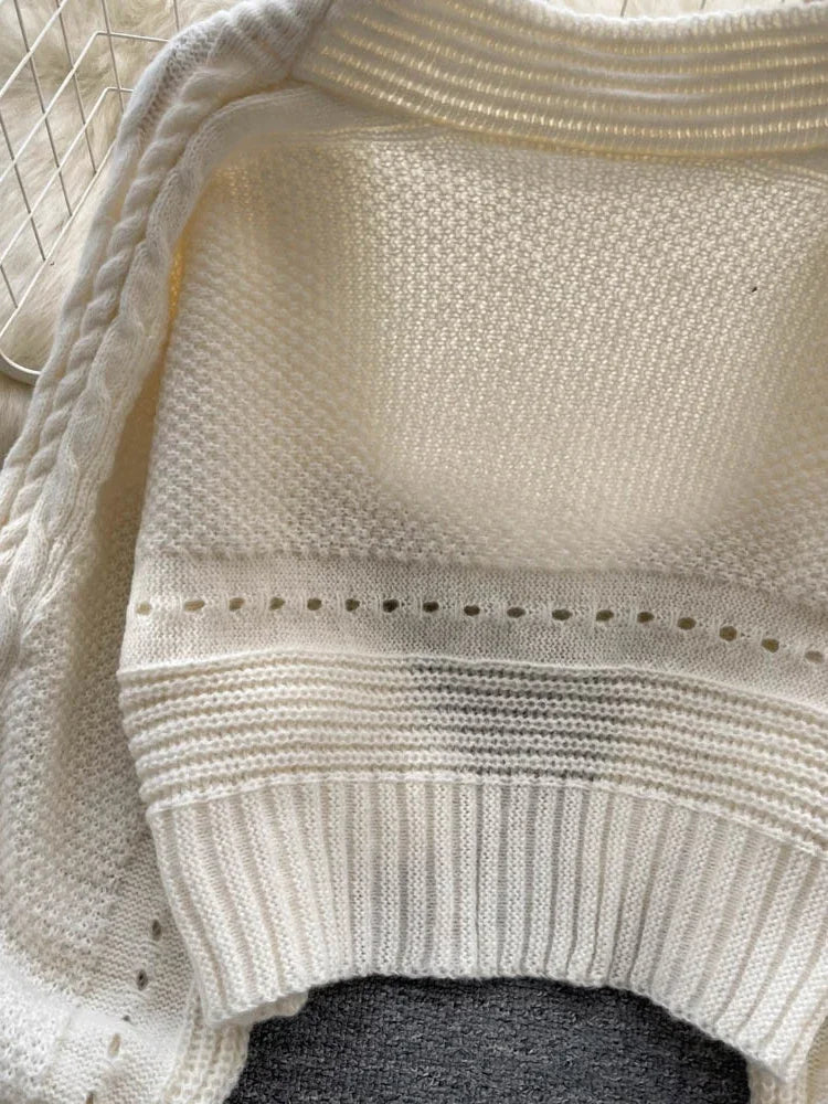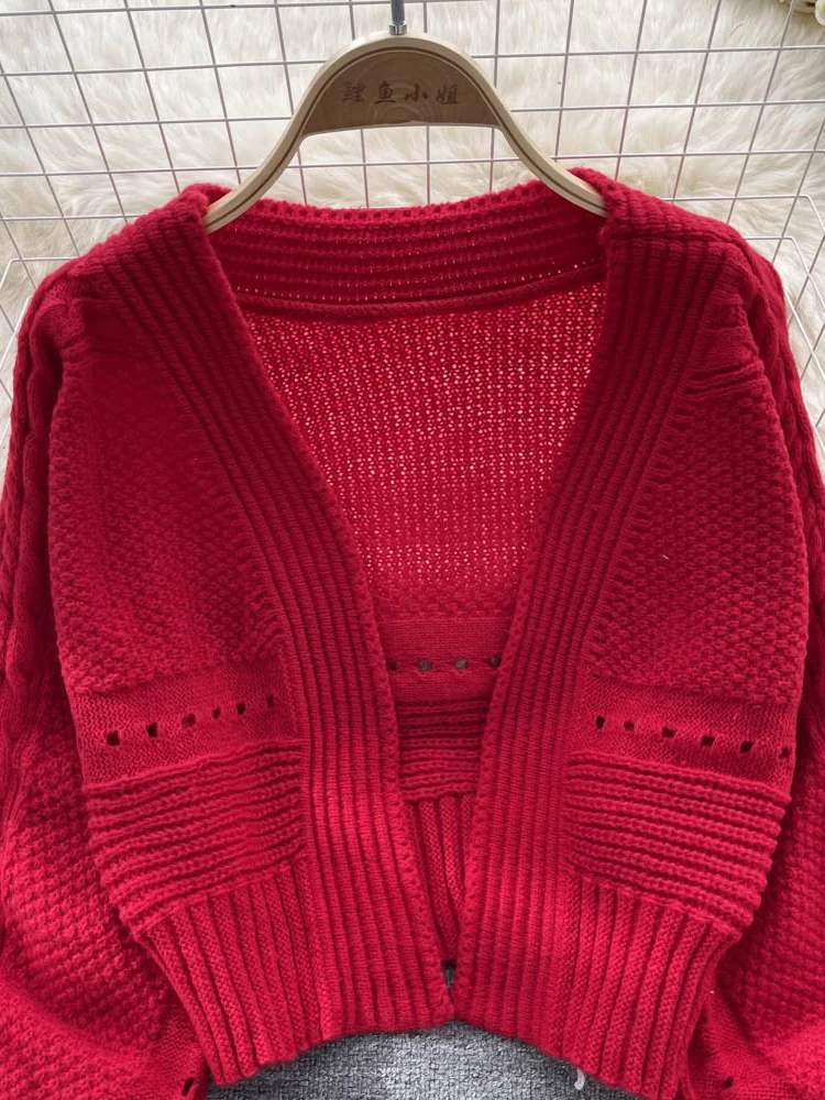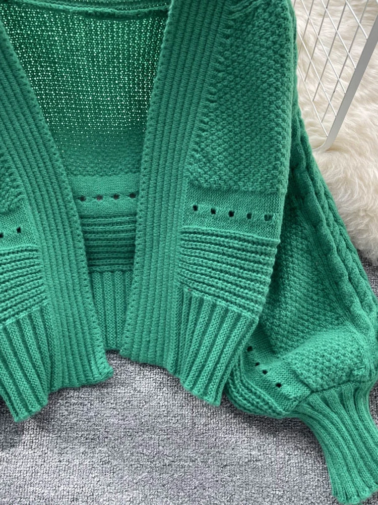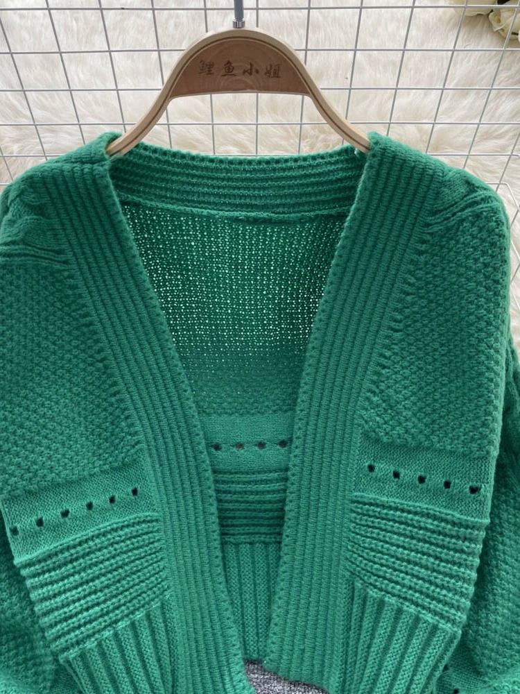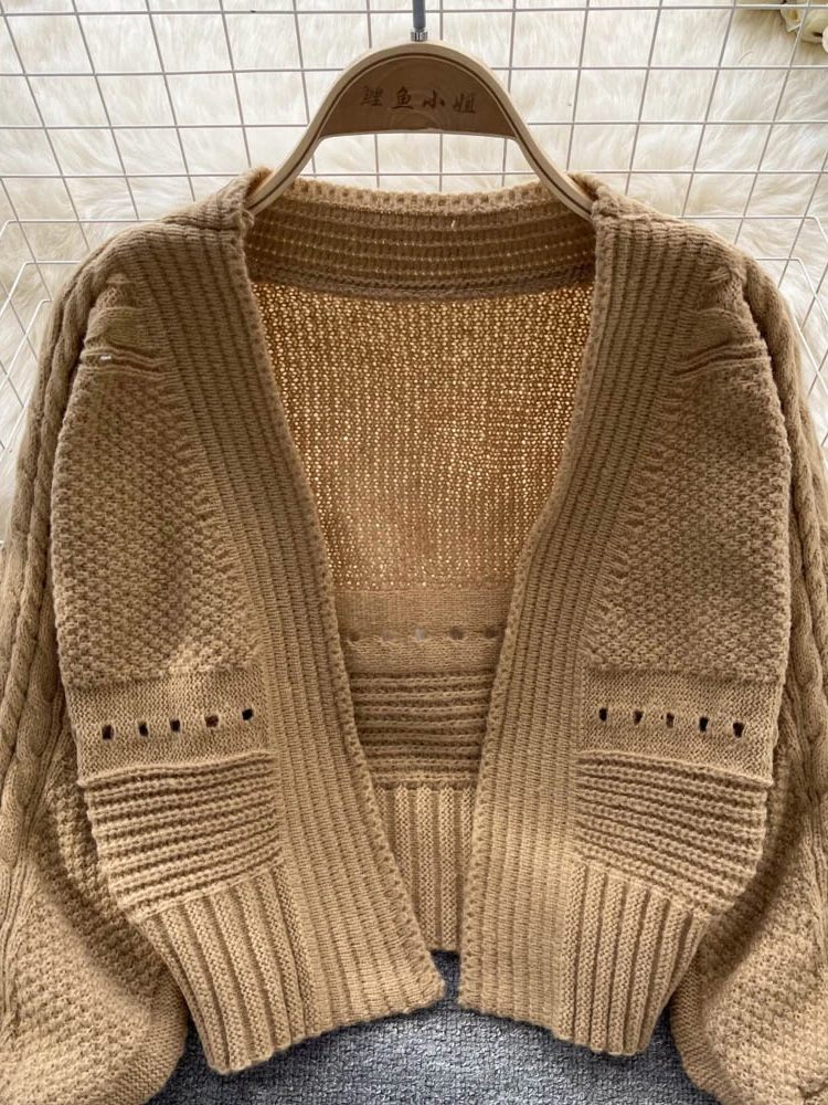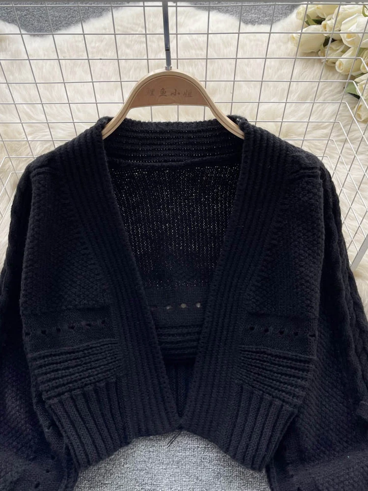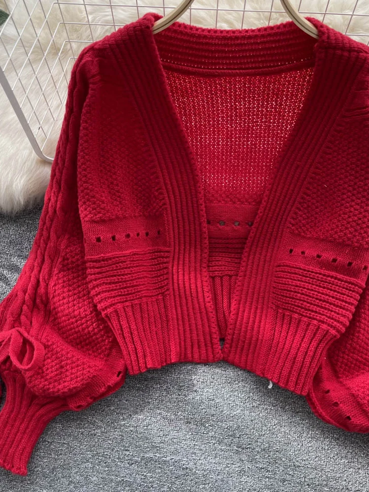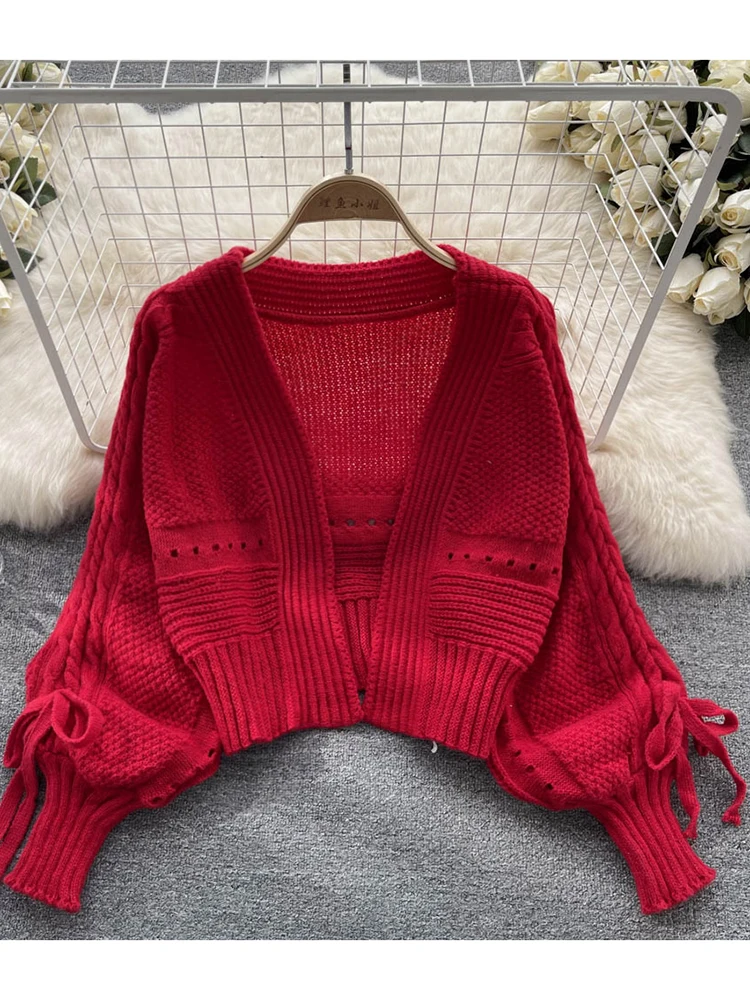Znbbw Women Autumn Winter Cardigan Design Sense Lantern Sleeve Knitted Versatile Knitting Bow Tie Short Long Sleeve Shawl Top D2156