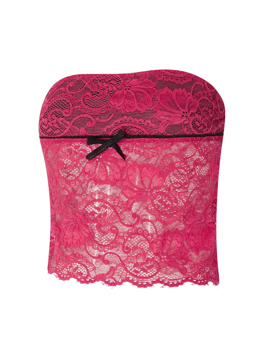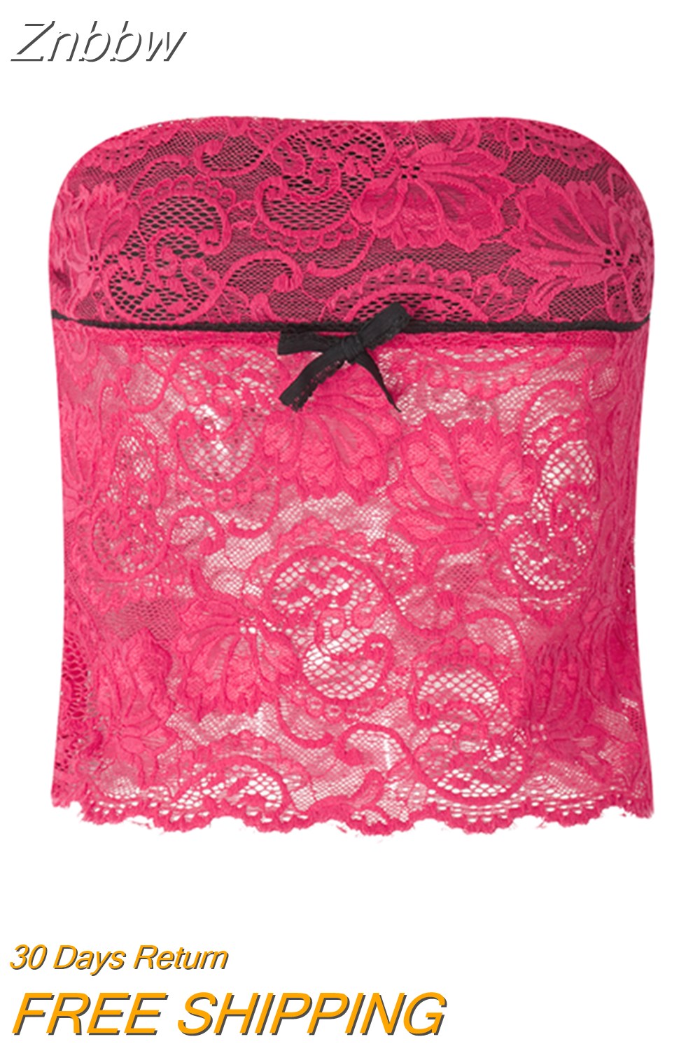 Znbbw Women Bow Lace Mesh Crop Tube Top Spaghetti Strap E-Girl Tank Top Cami Shirts Y2K Fairy Grunge Tee Summer Streetwear