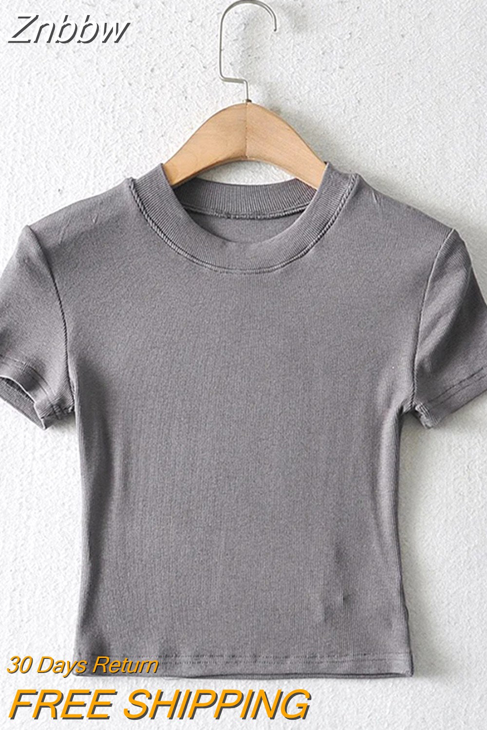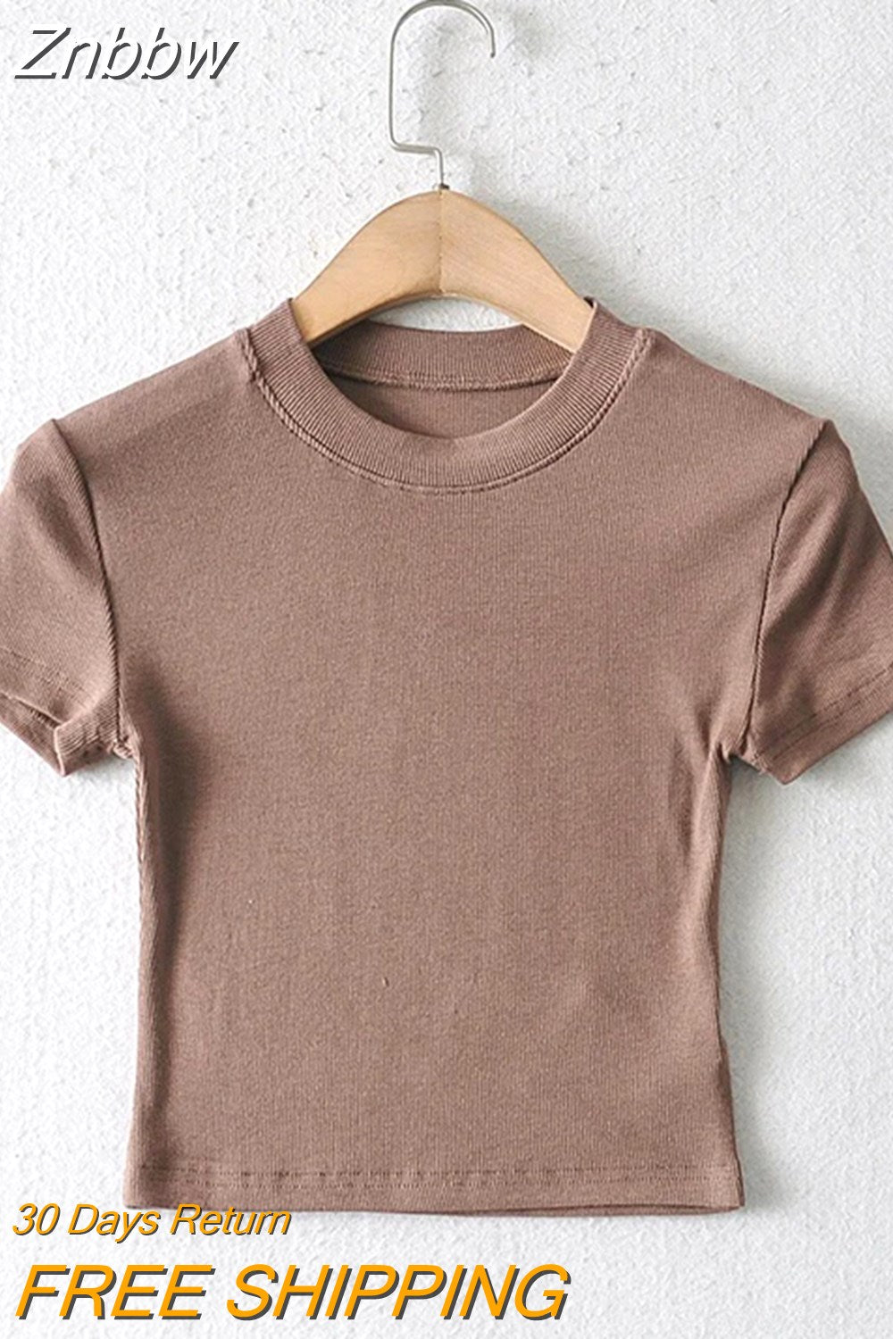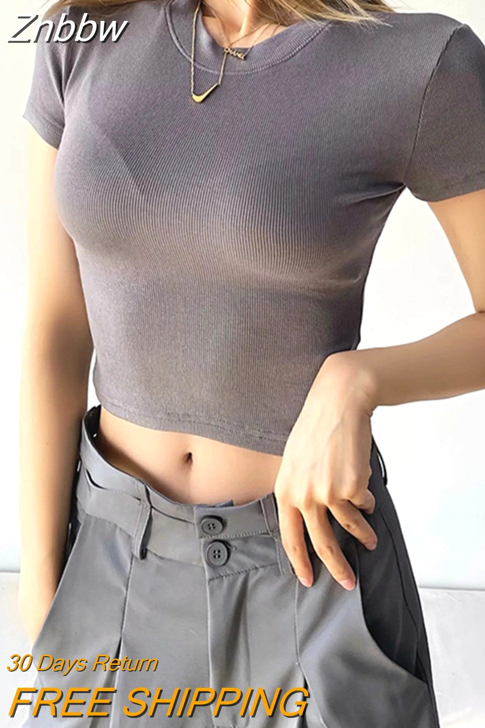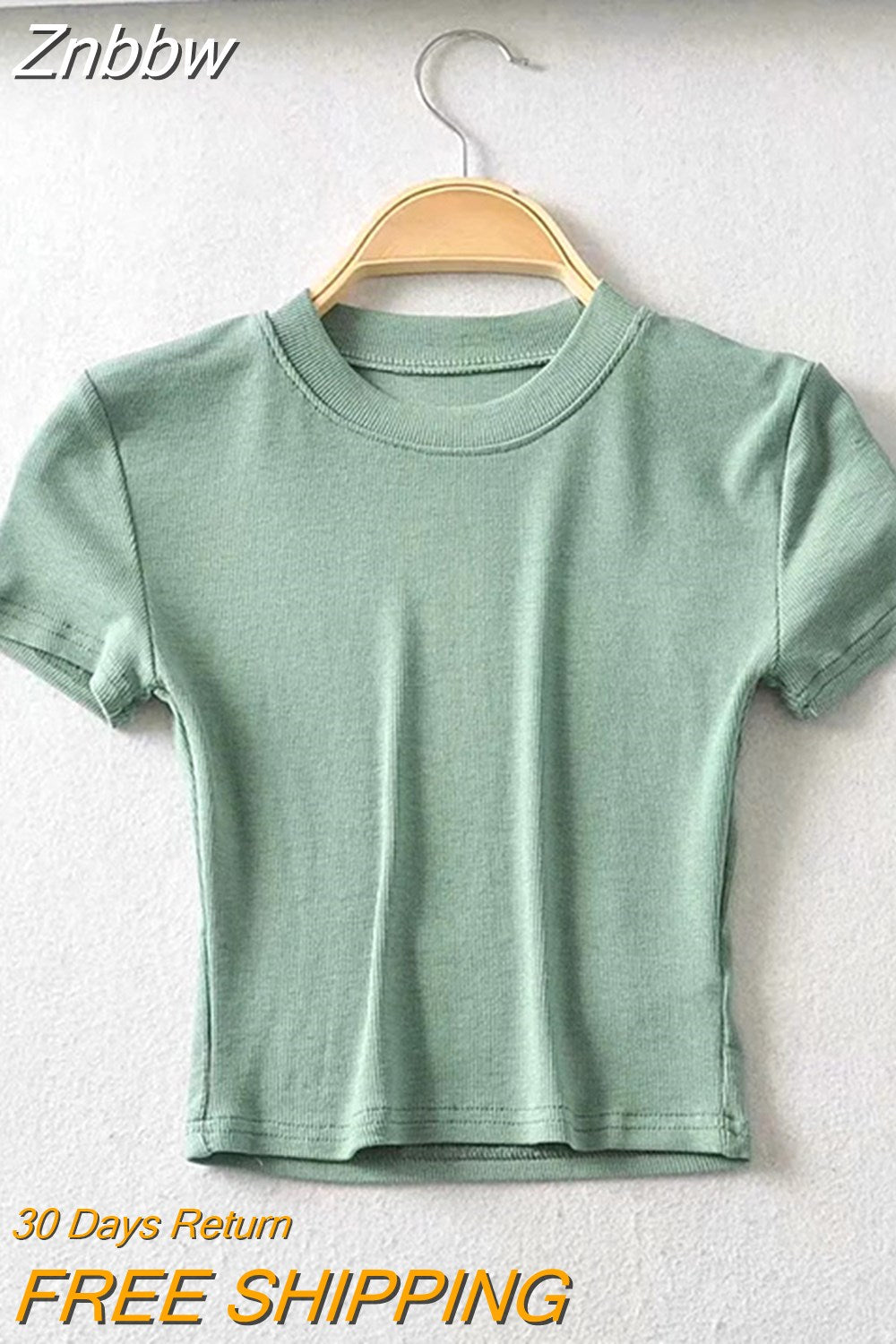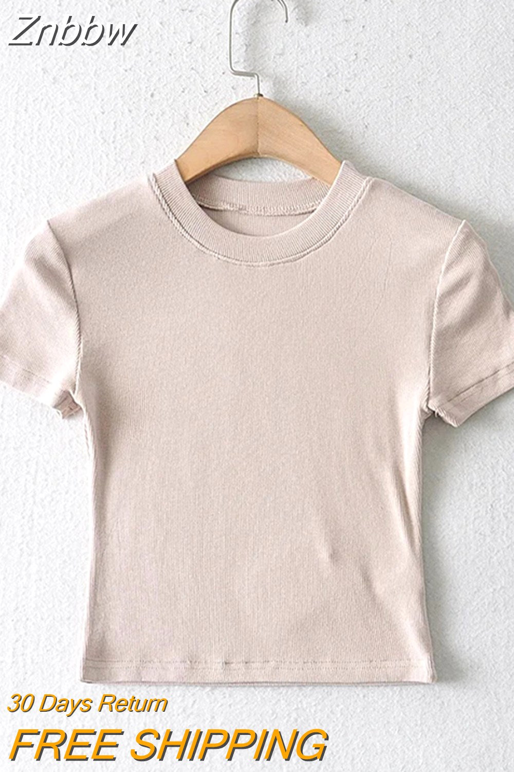 Znbbw Women Crew Neck Crop Fitted T-shirt Short Sleeve Ribbed Crop Top