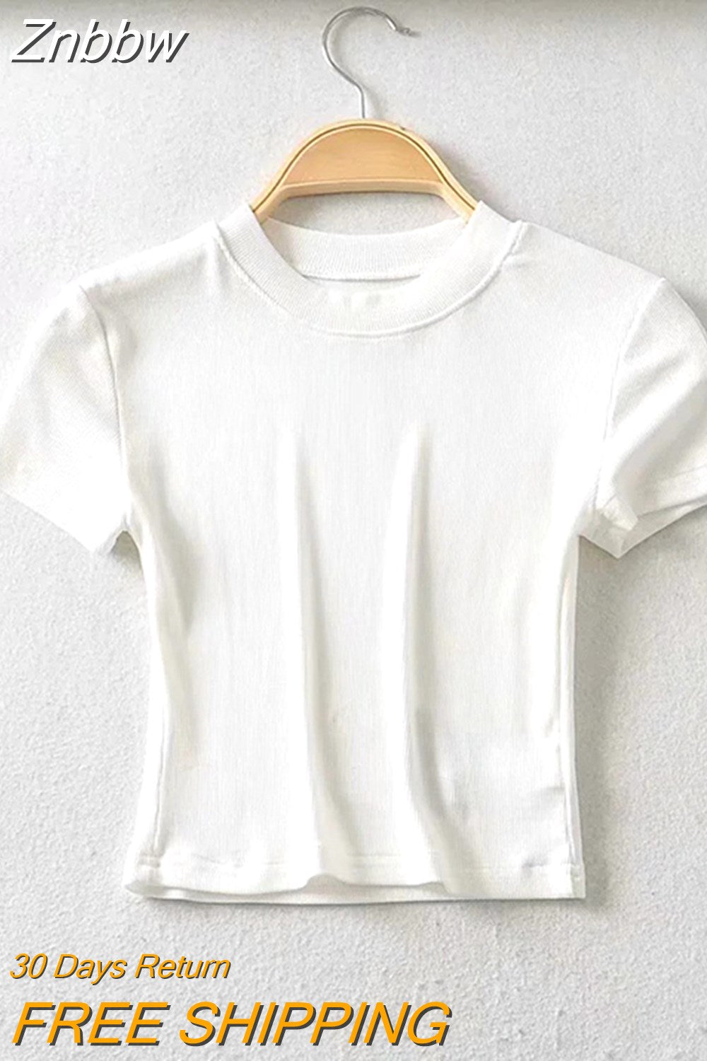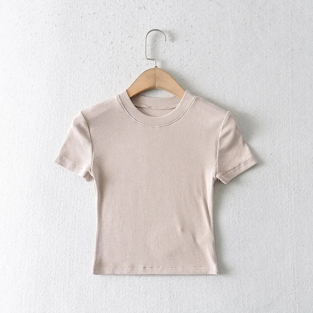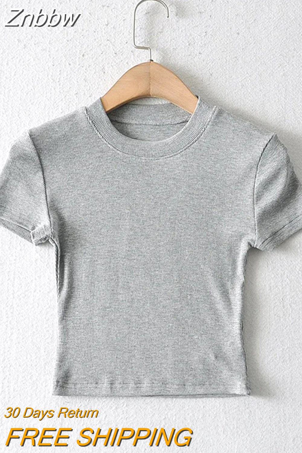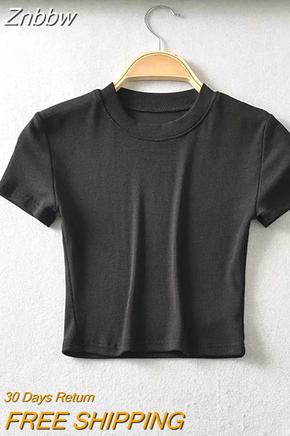 Znbbw Women Crew Neck Crop Fitted T-shirt Short Sleeve Ribbed Crop Top