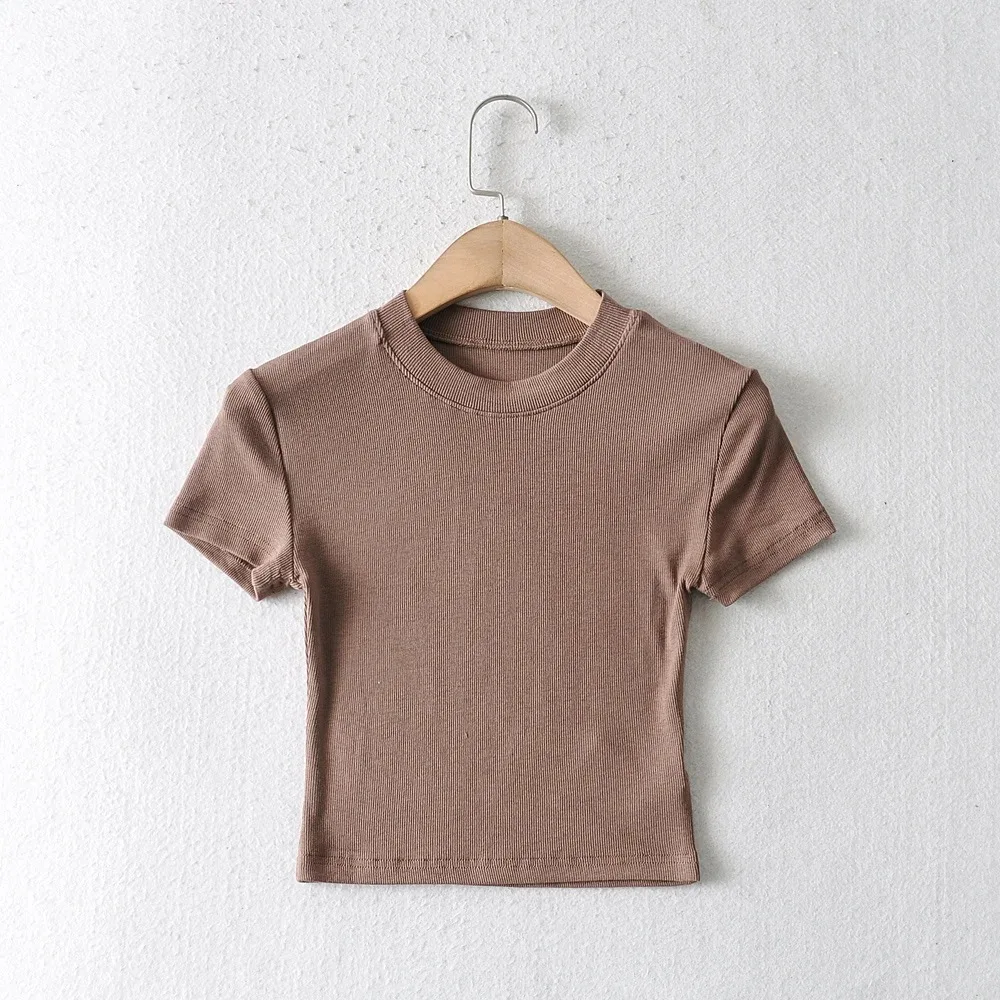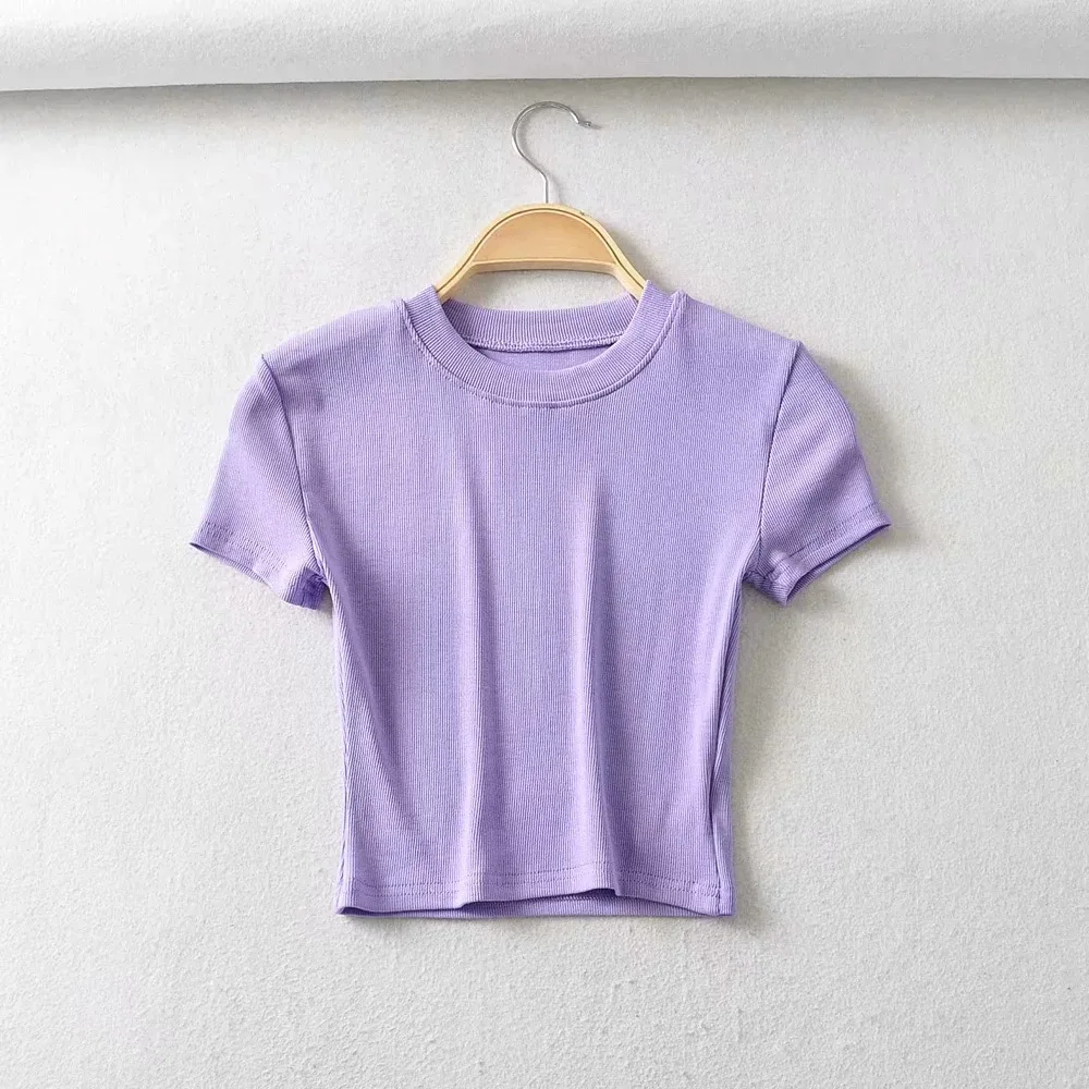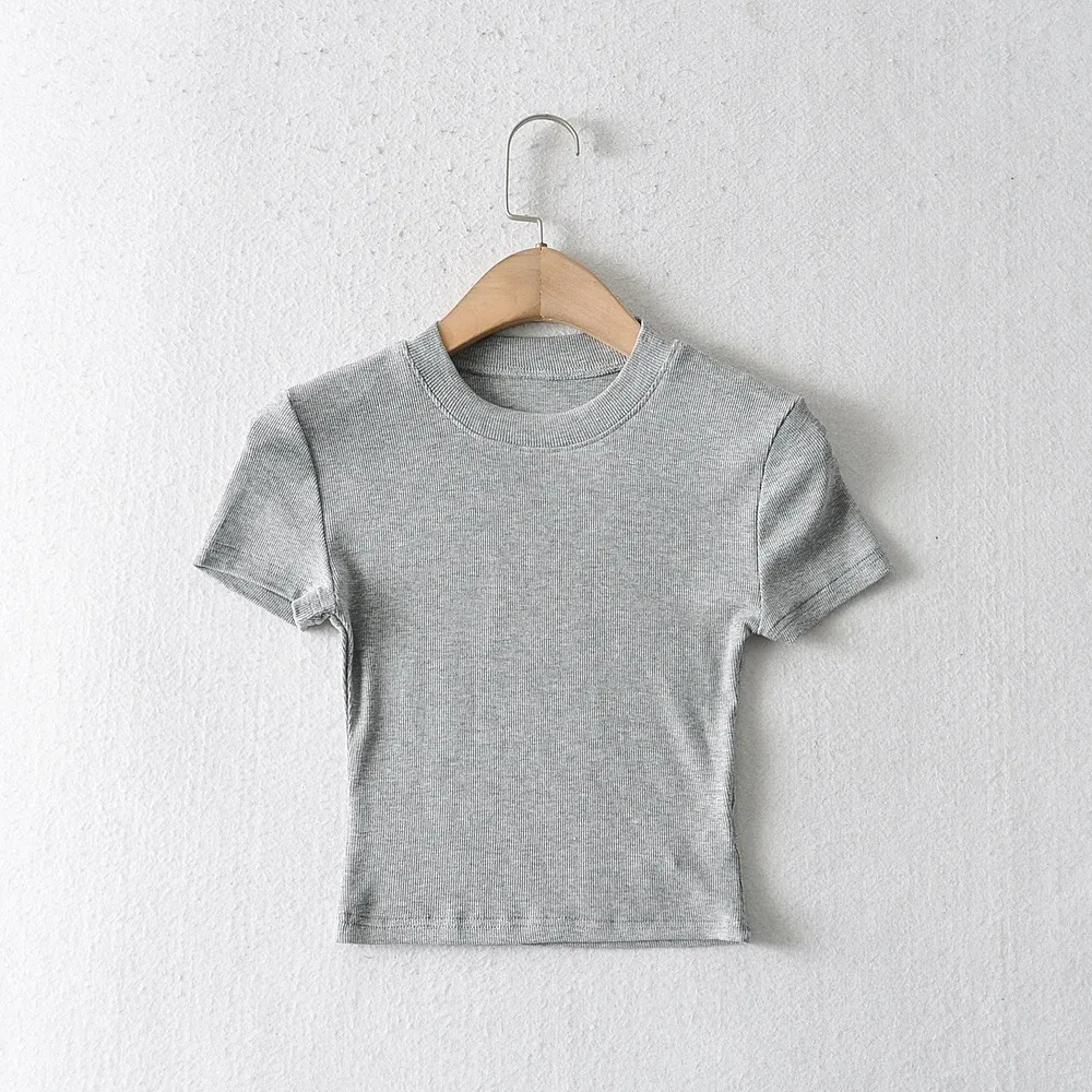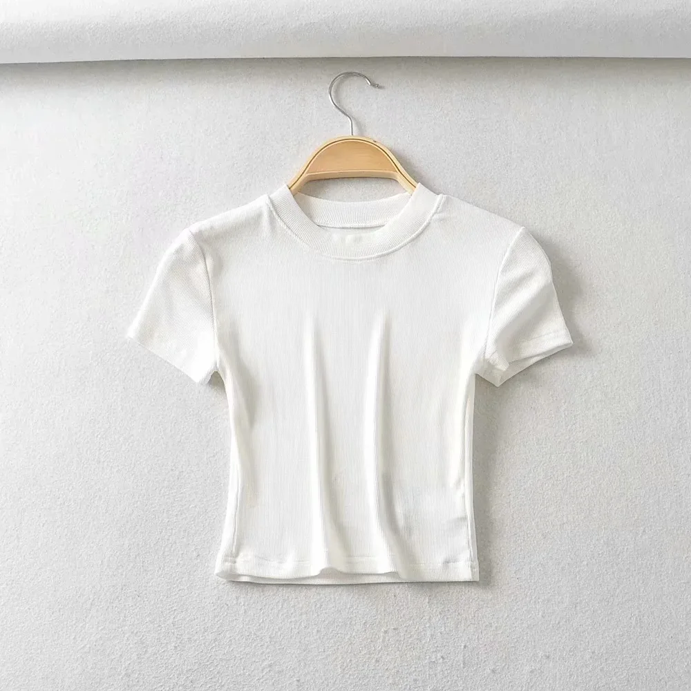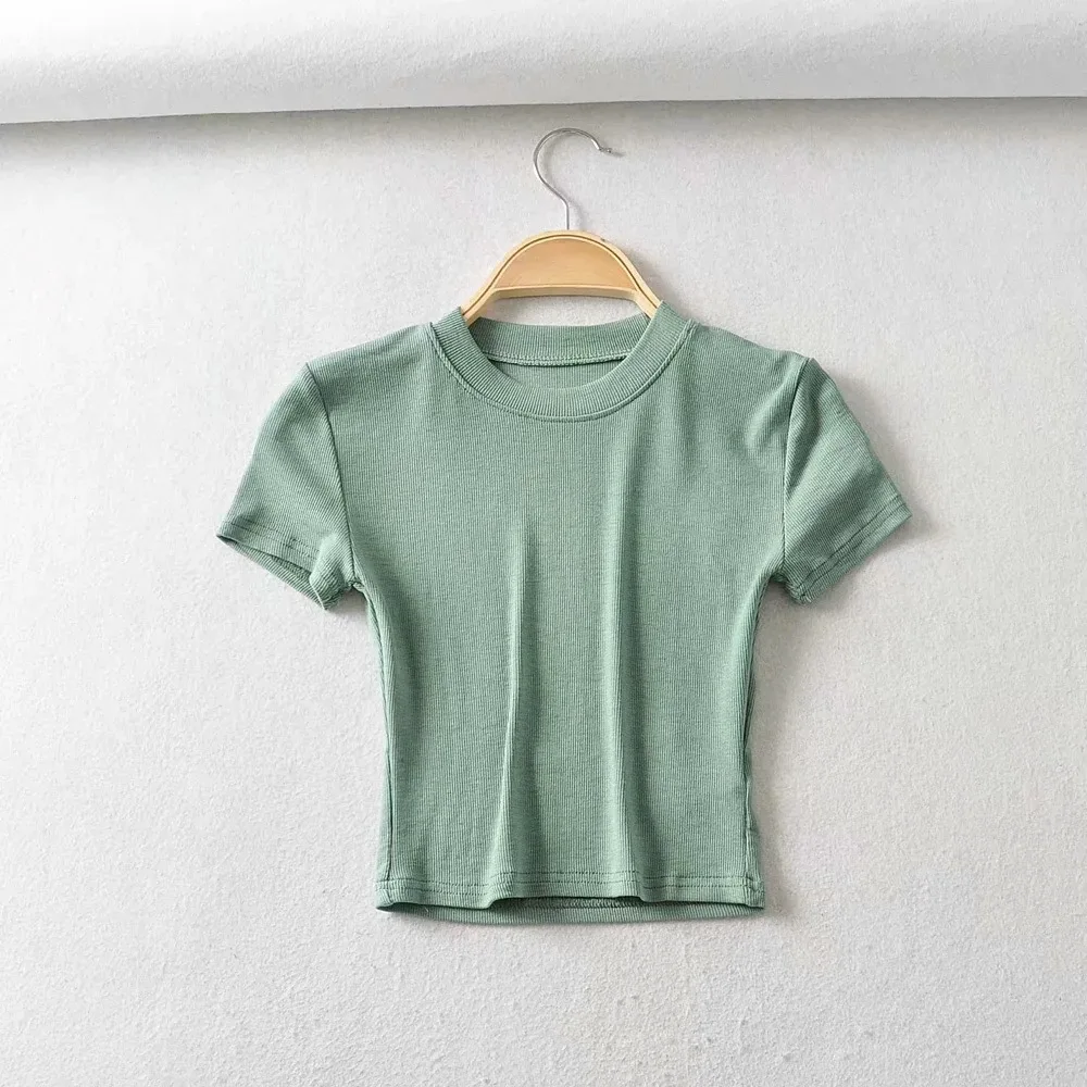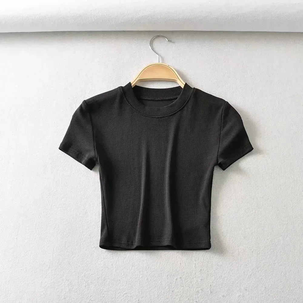 Znbbw Women Crew Neck Crop Fitted T-shirt Short Sleeve Ribbed Crop Top