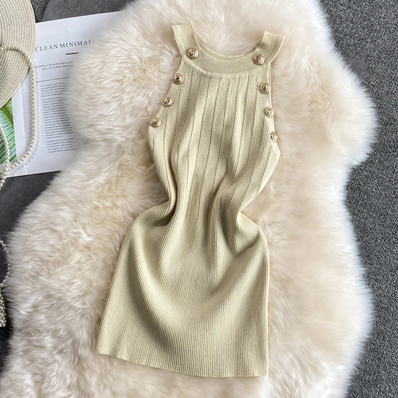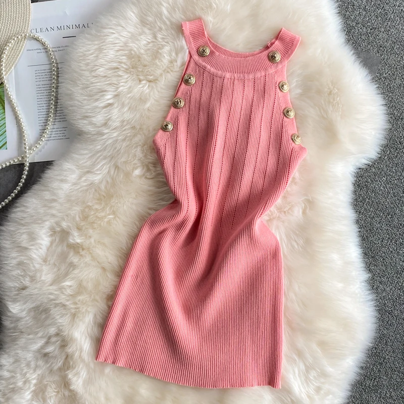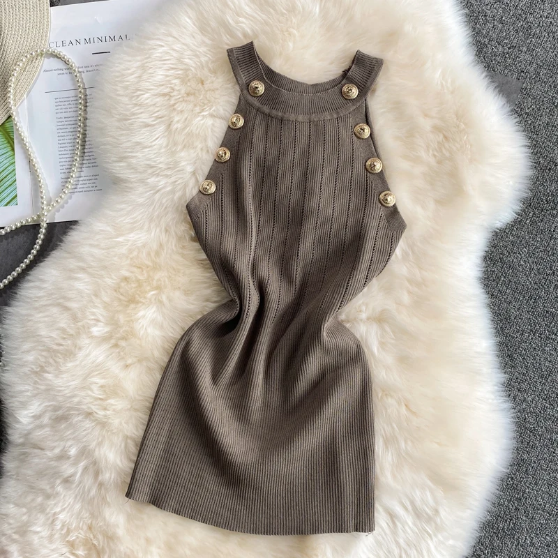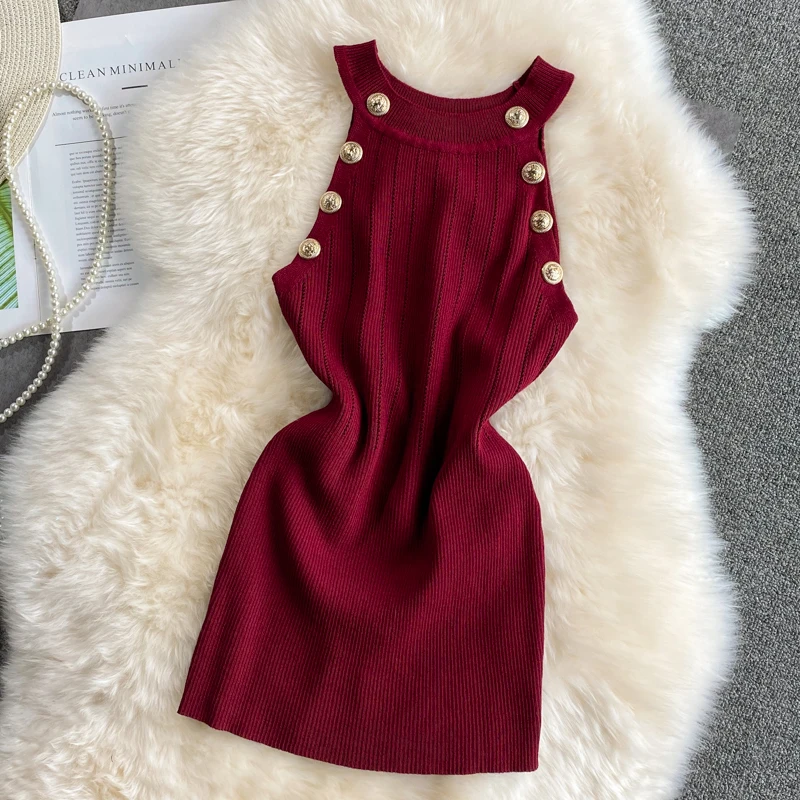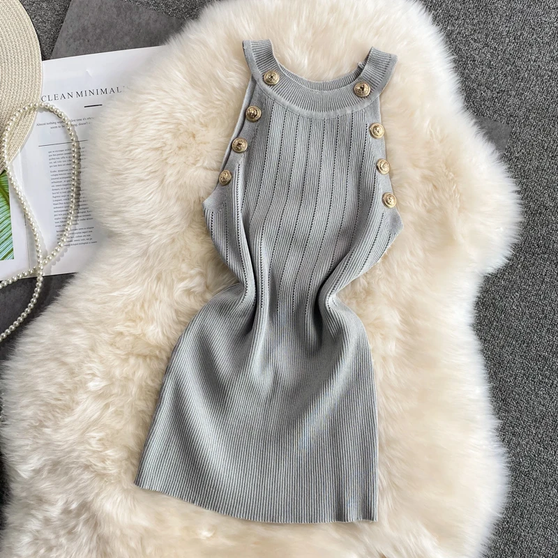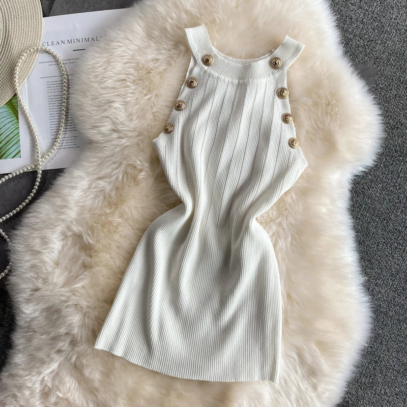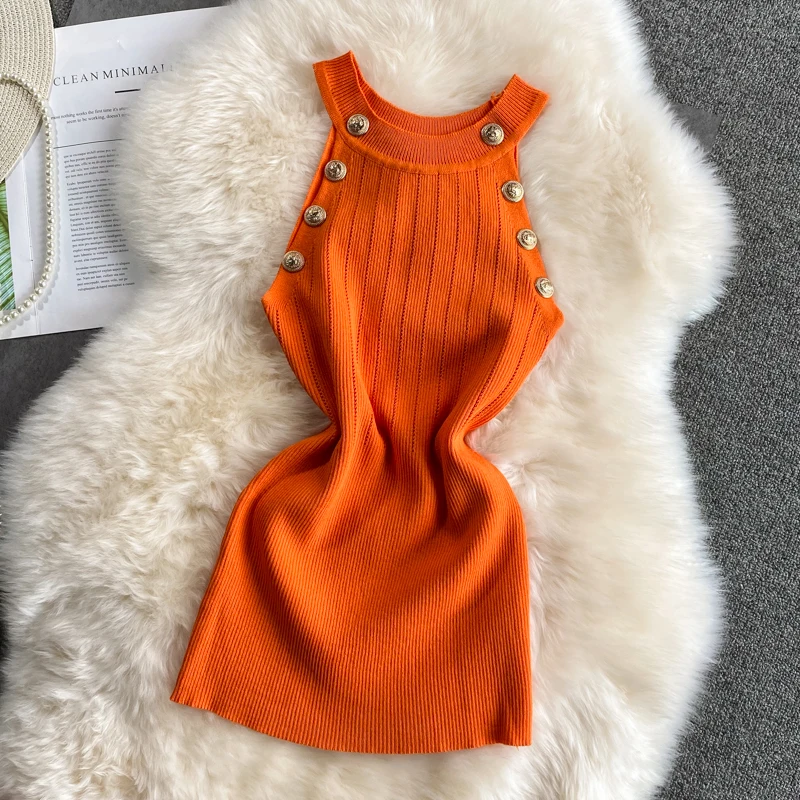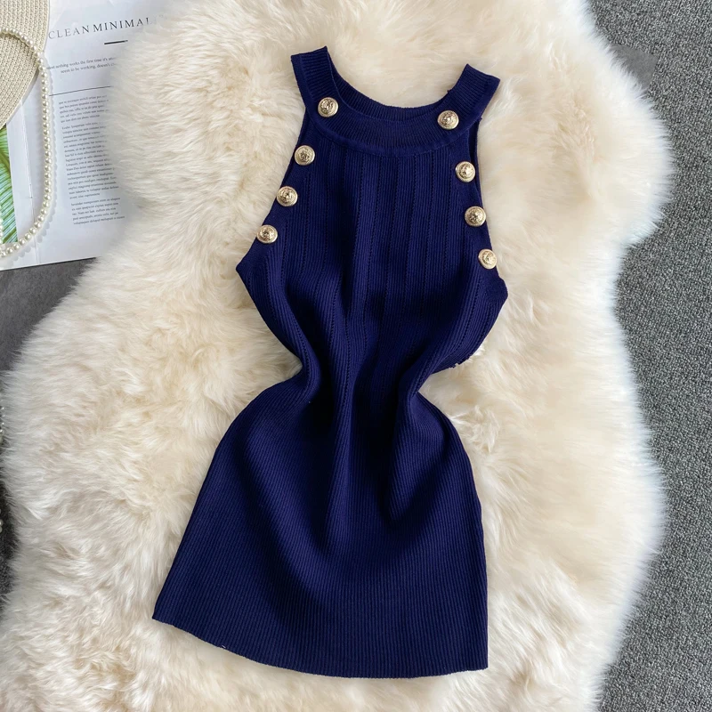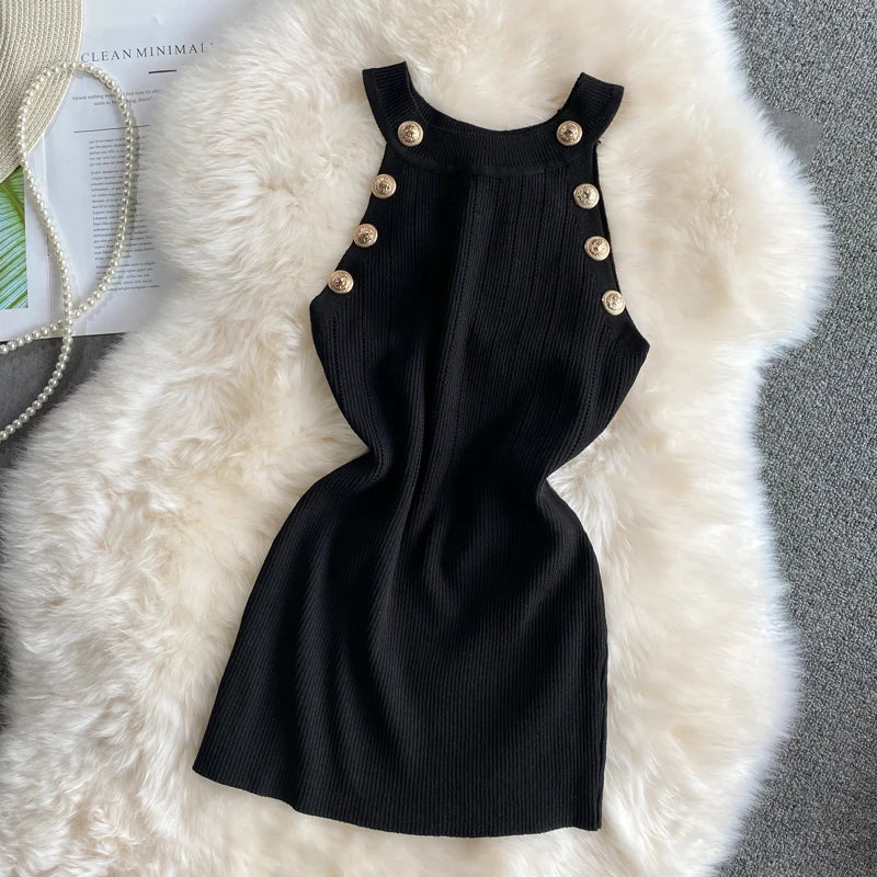 Znbbw Women Gold Buttons Halter Collar Tank Tops Female Stretchable Thin Hollow Out Camisole Sleeveless Short T-shirts Tees