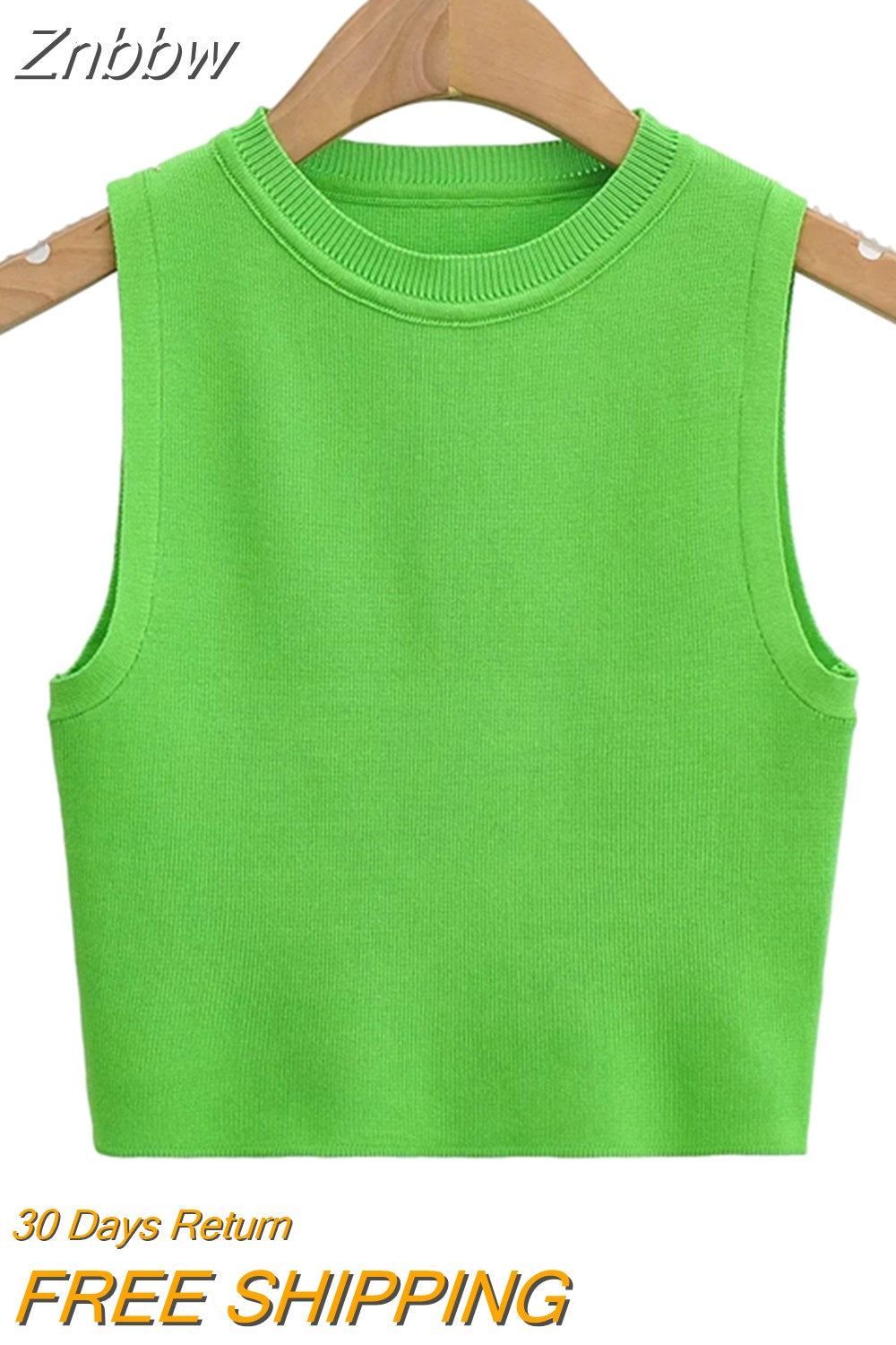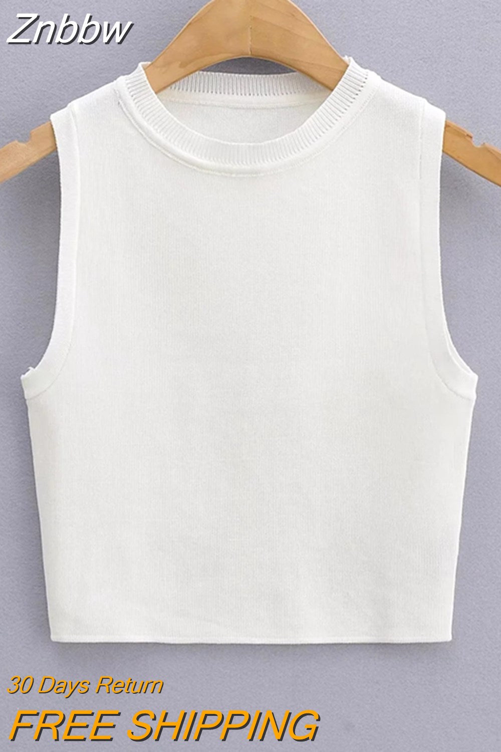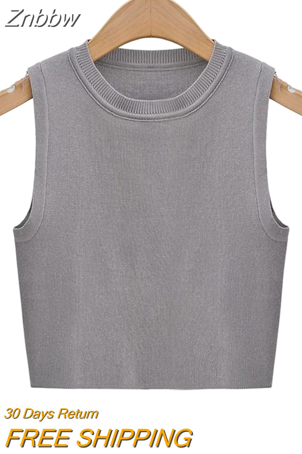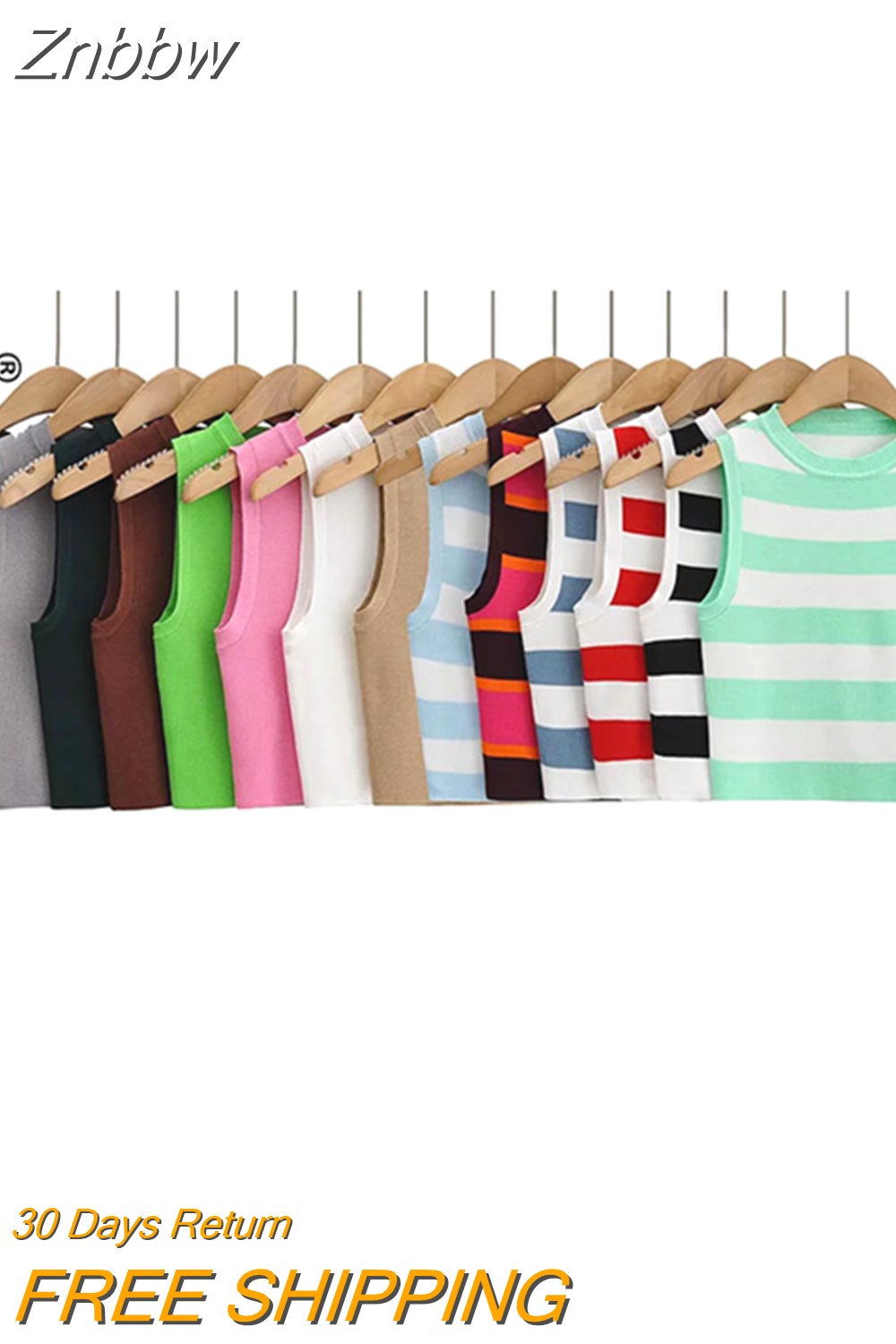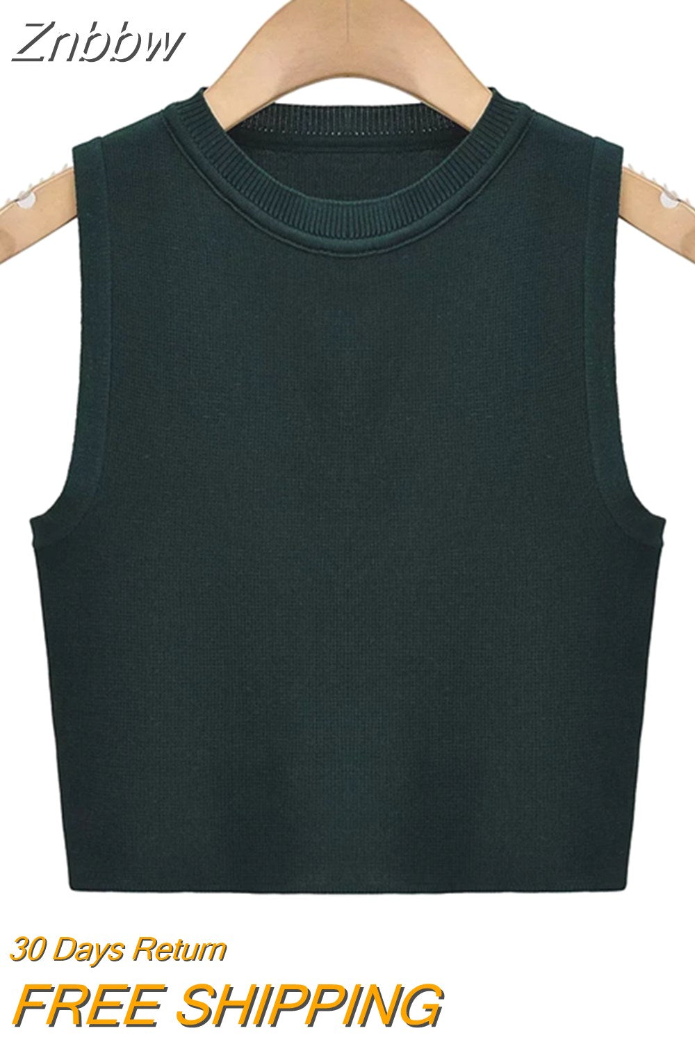 Znbbw Women Off Shoulder Tank Top Summer Knit Ribbed O Neck Sleeveless Skinny Vests 2023 Sexy Solid Basic Tops 202304