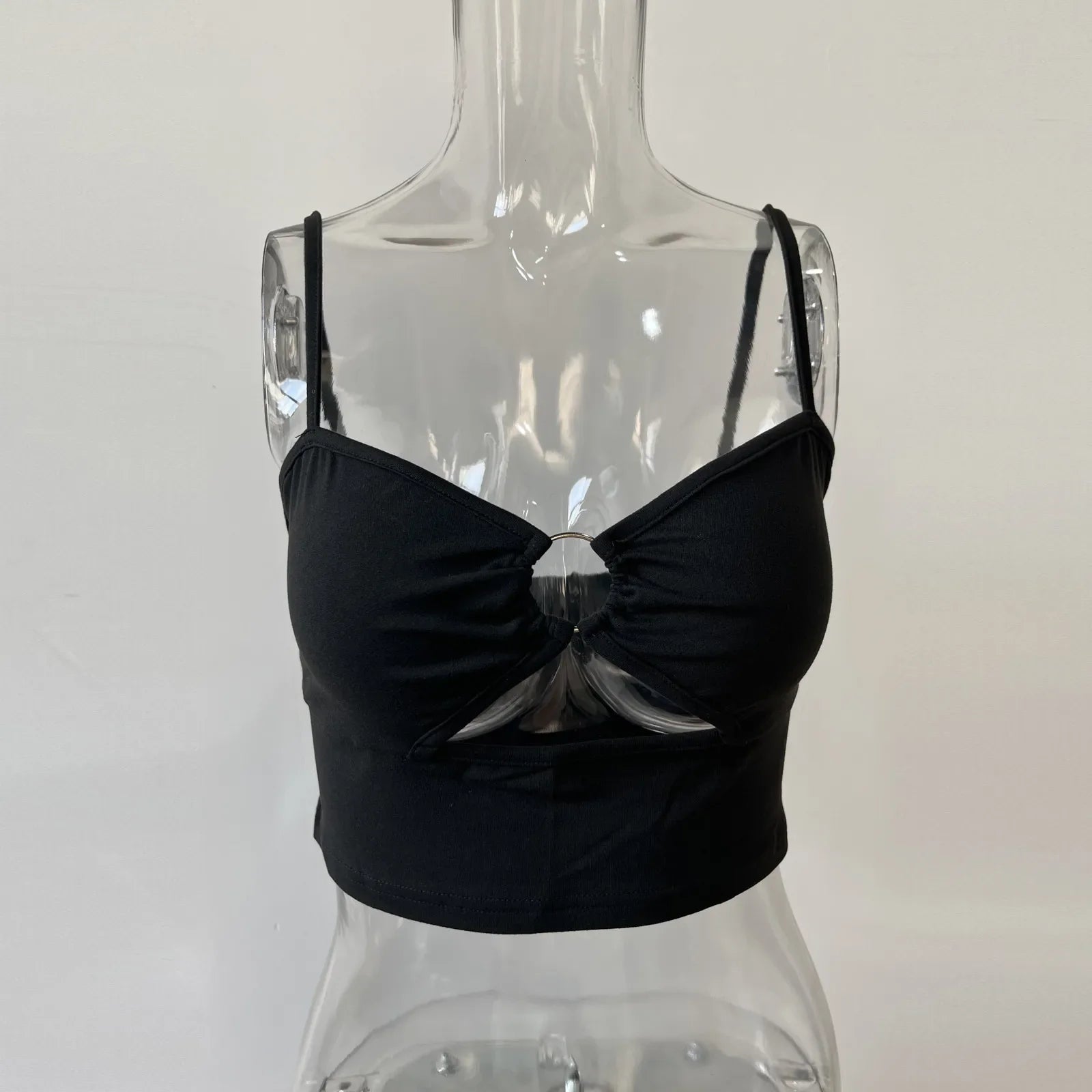 Znbbw Women Sexy Camisole Fashion Black Spaghetti Strap Cami Ring Linked Streetwear Sleeveless Tops Female Skinny Clubwear Slim Vest