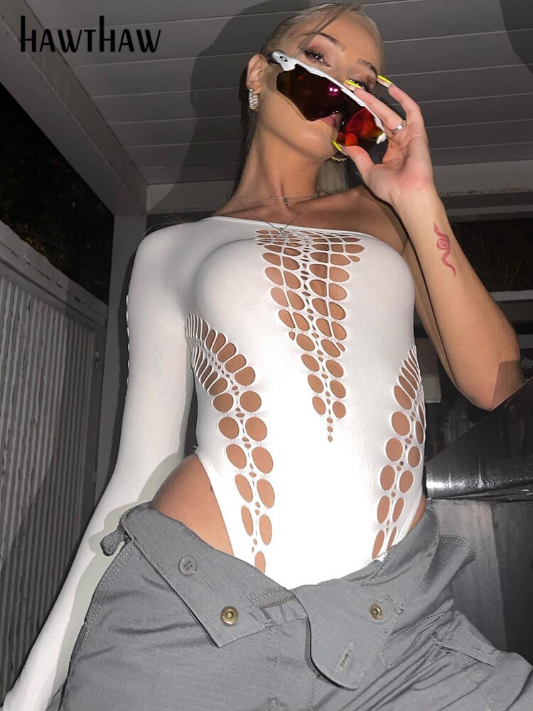 Znbbw Women Sexy Long Sleeve Hollow Out Bodycon T Shirt Tops Lingerie Bodysuit 2023 Fall Clothes Wholesale Items For Business