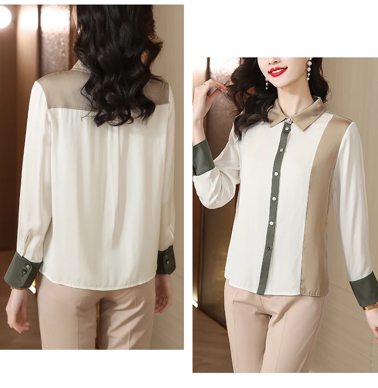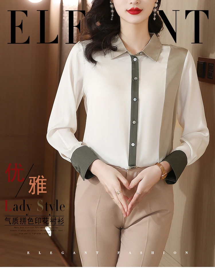 Znbbw Women Shirts and Blouses 2023 Long Sleeve Casual Turn-down Collar OL Style Women Satin Blouses Female Simplicity Tops