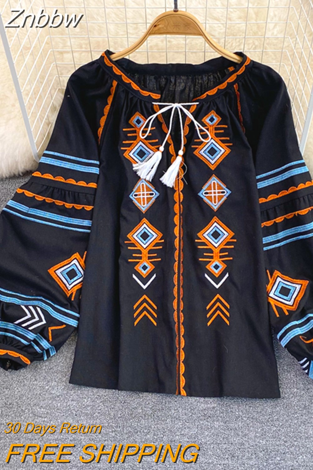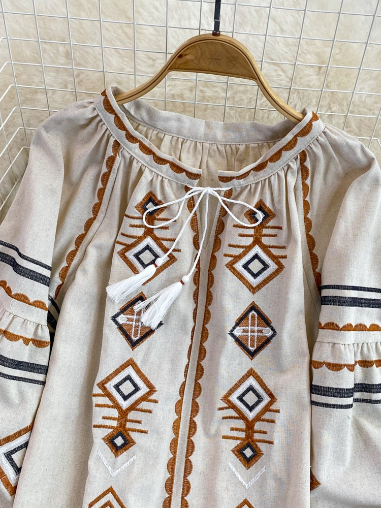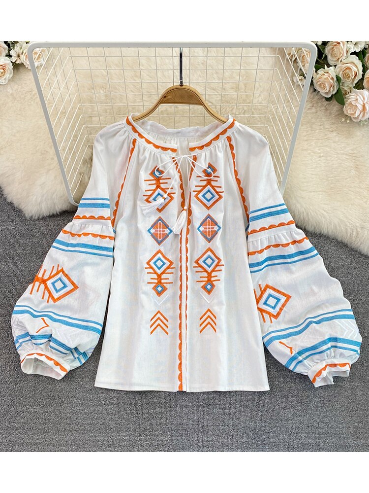 Znbbw Women Spring Autumn Blous Retro Loose Ethnic Style Embroidery Thin Lantern Sleeve Doll Top Female Pullover Shirt D3061