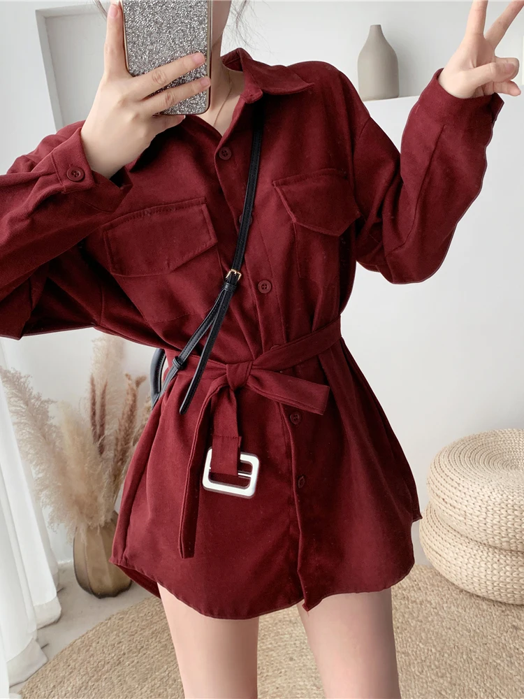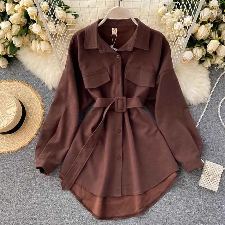 Znbbw Women Spring Autumn Shirts Retro Cargo Style Pockets Long-Sleeved Shirt Puff Sleeve Bandage Nipped Waist Tops Female PL438