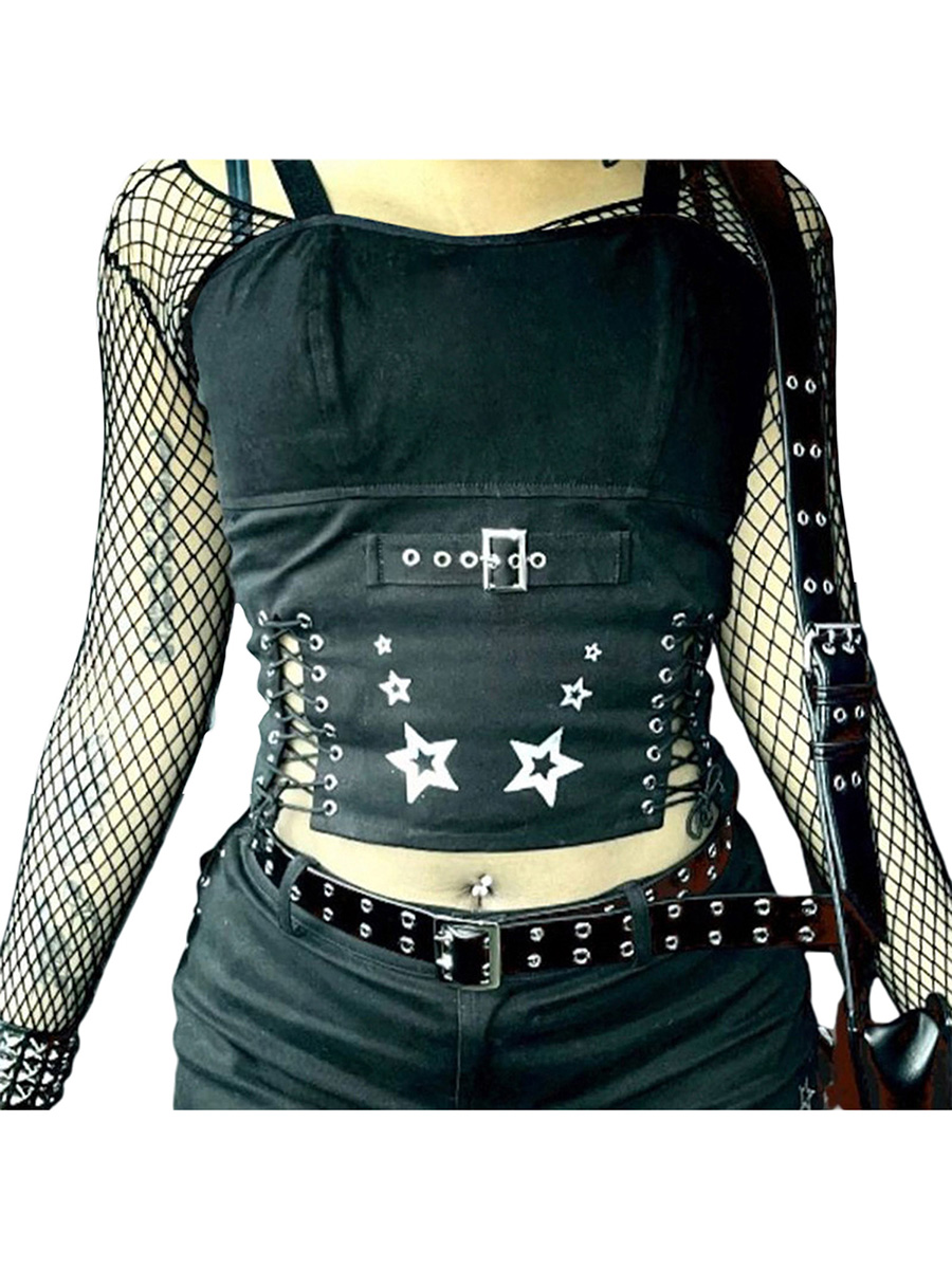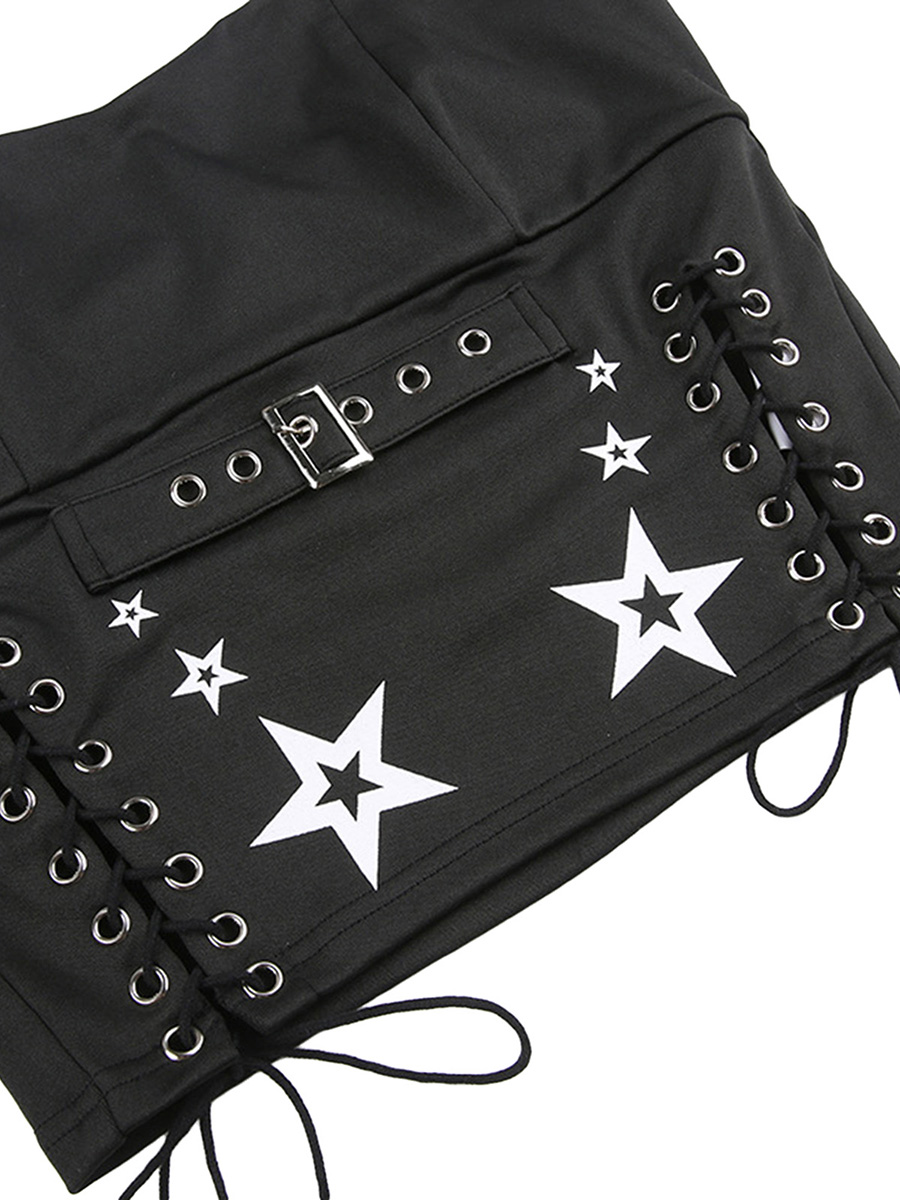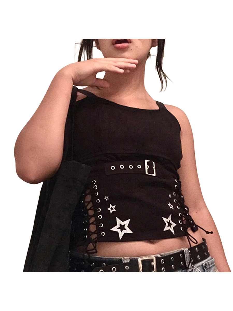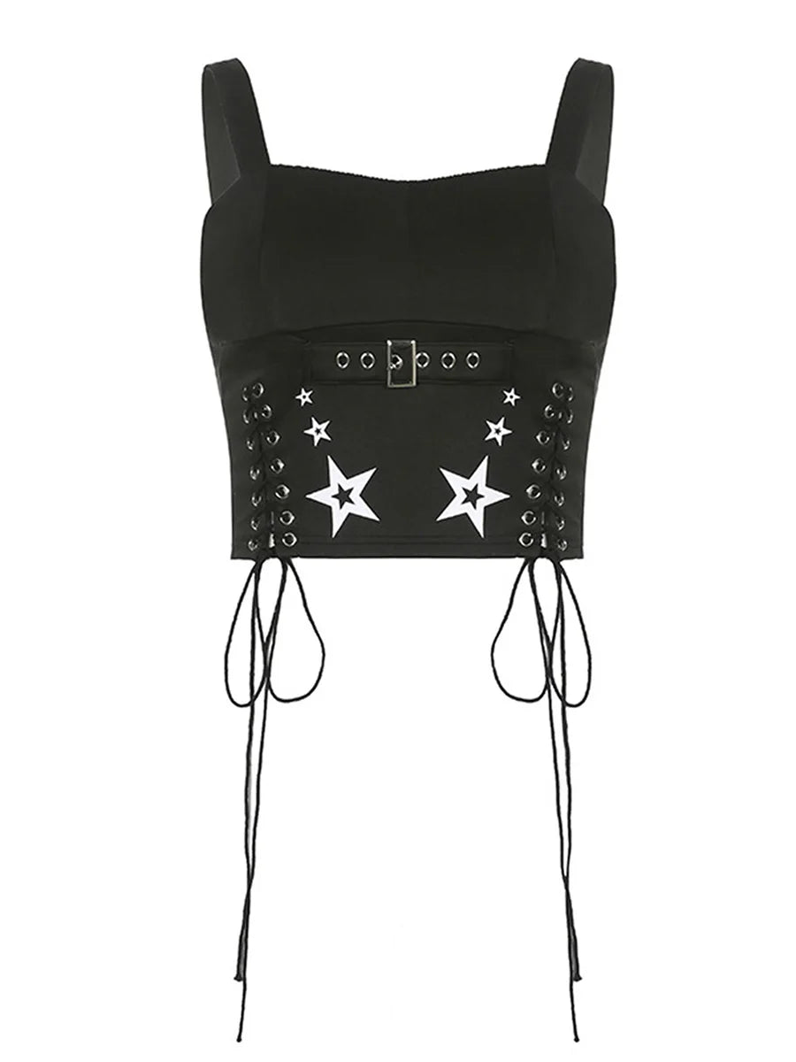Znbbw Women Tank Tops Summer Gothic Punk Style Casual Star Print Bandage Crop Tops for Streetwear Club Wear