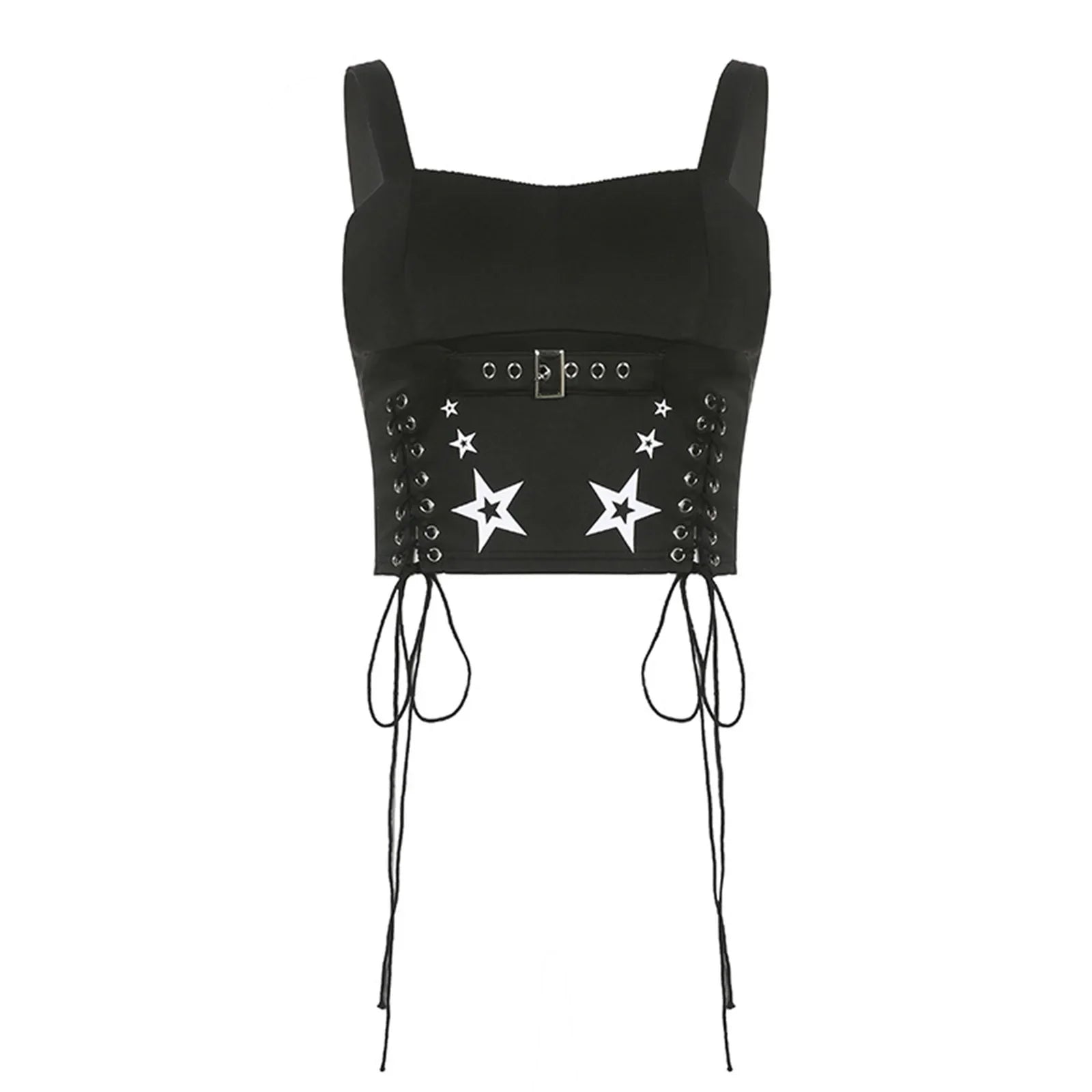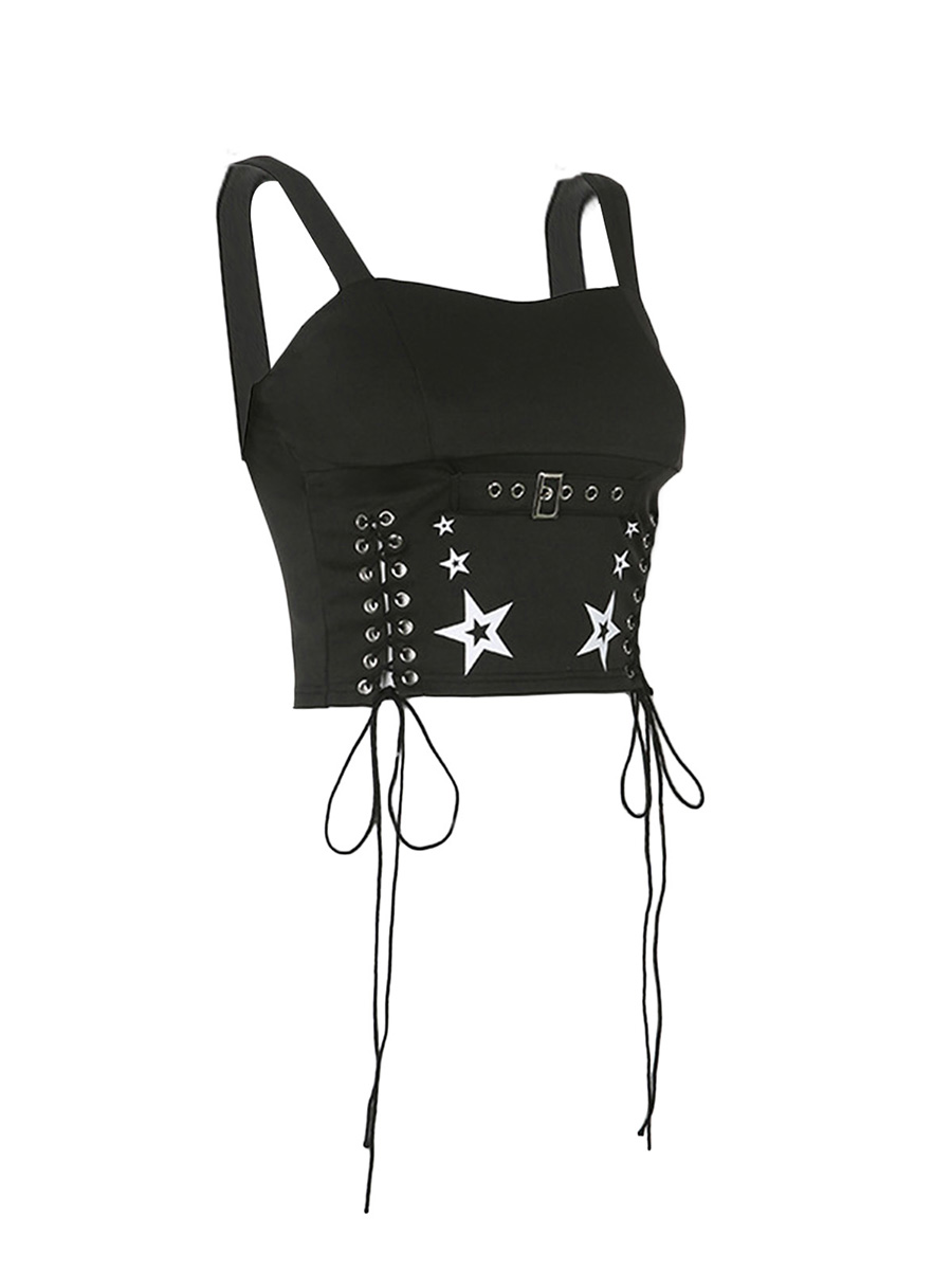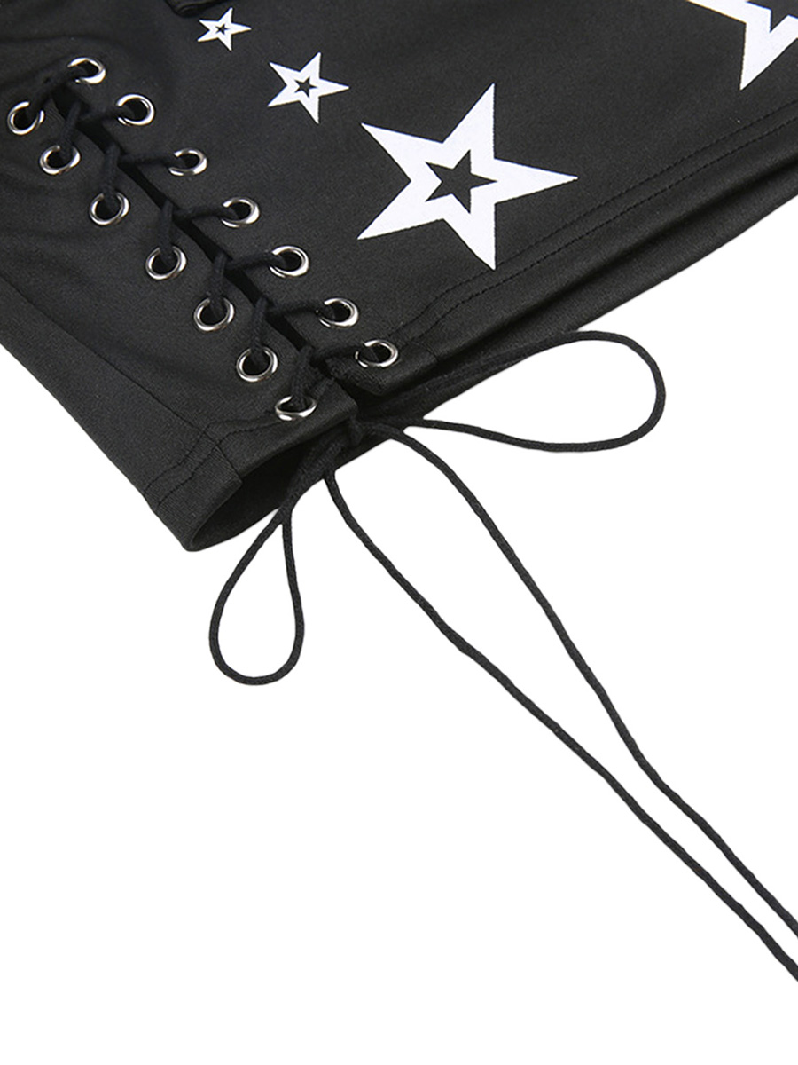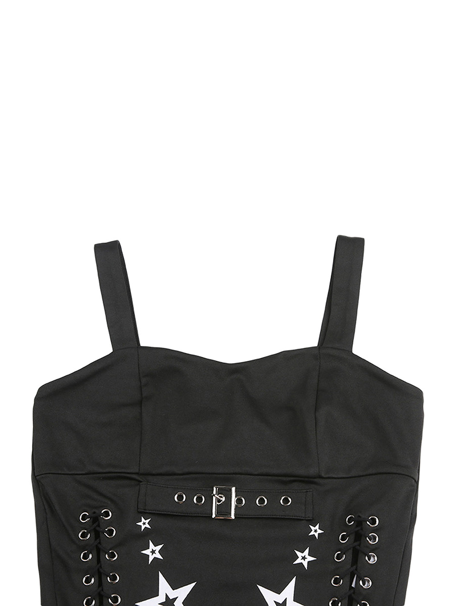 Znbbw Women Tank Tops Summer Gothic Punk Style Casual Star Print Bandage Crop Tops for Streetwear Club Wear