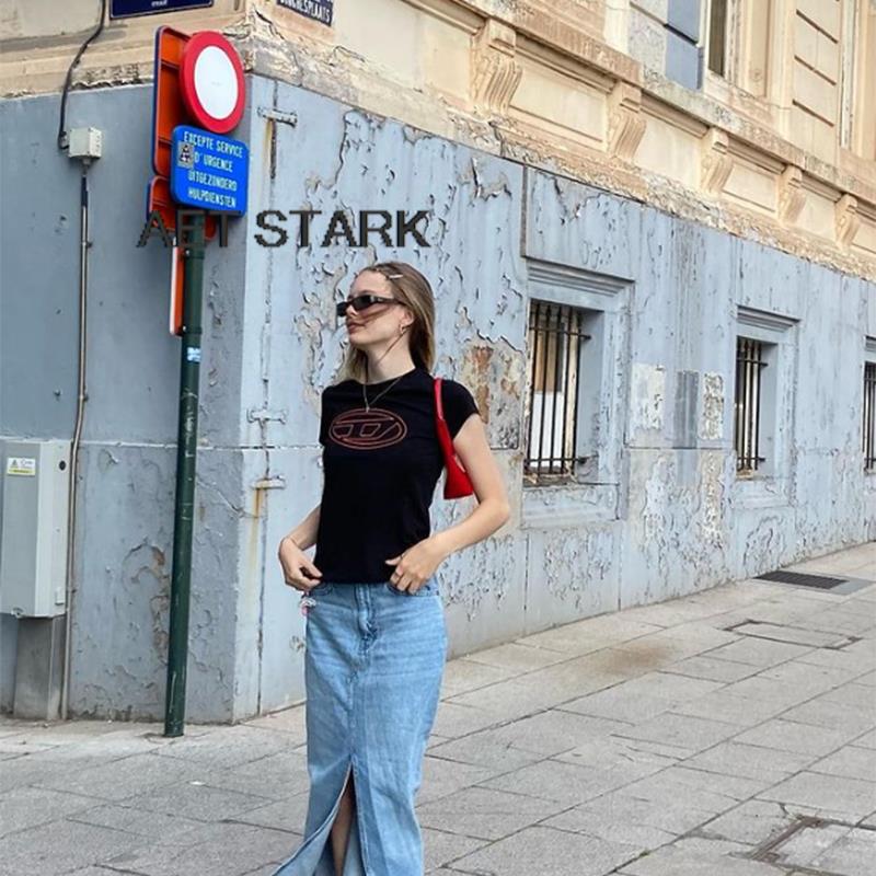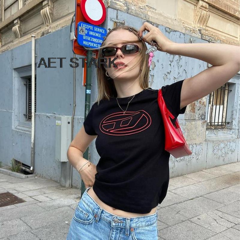 Znbbw Women Vintage Goth Crop Top Punk Streetwear Slim Aesthetic Print Graphic Grunge Crop T-Shirt Emo Girls Baby Tee Y2k Clothes