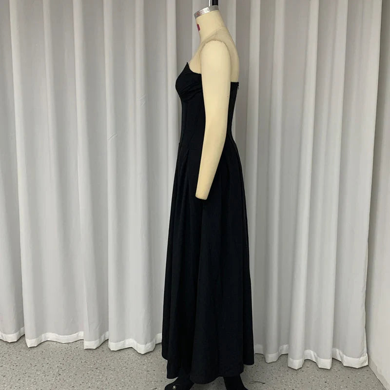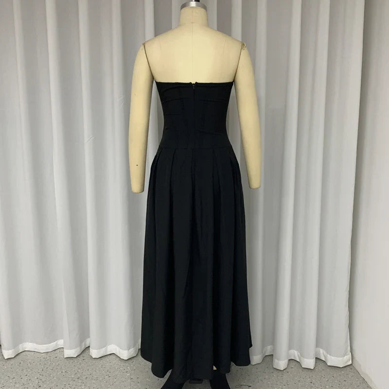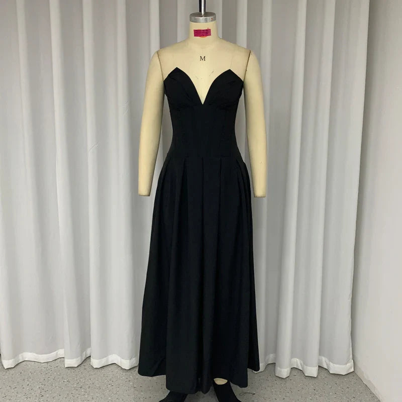 Znbbw Women's Dress Summer Strapless Sleeveless Backless Solid Color Fishbone Tube Top Pleated Long Gown Elegant Party Dresses