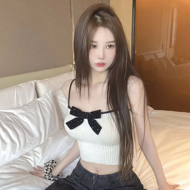 Znbbw Women's Korean version Slim fitting, Sexy and Sweet Knitted Tank Top Bow Strap